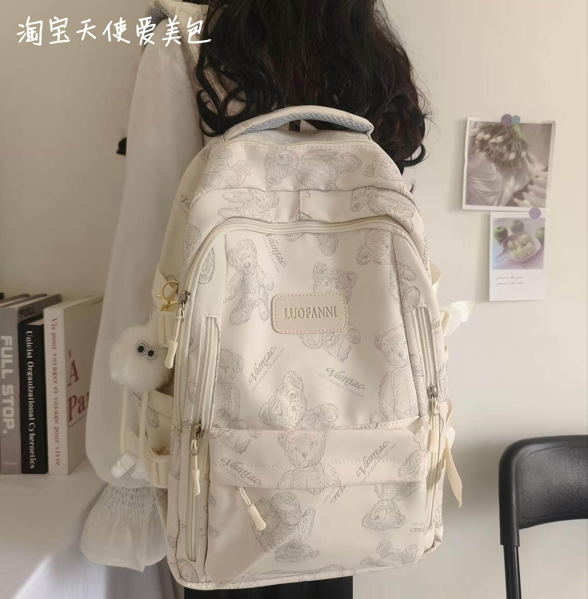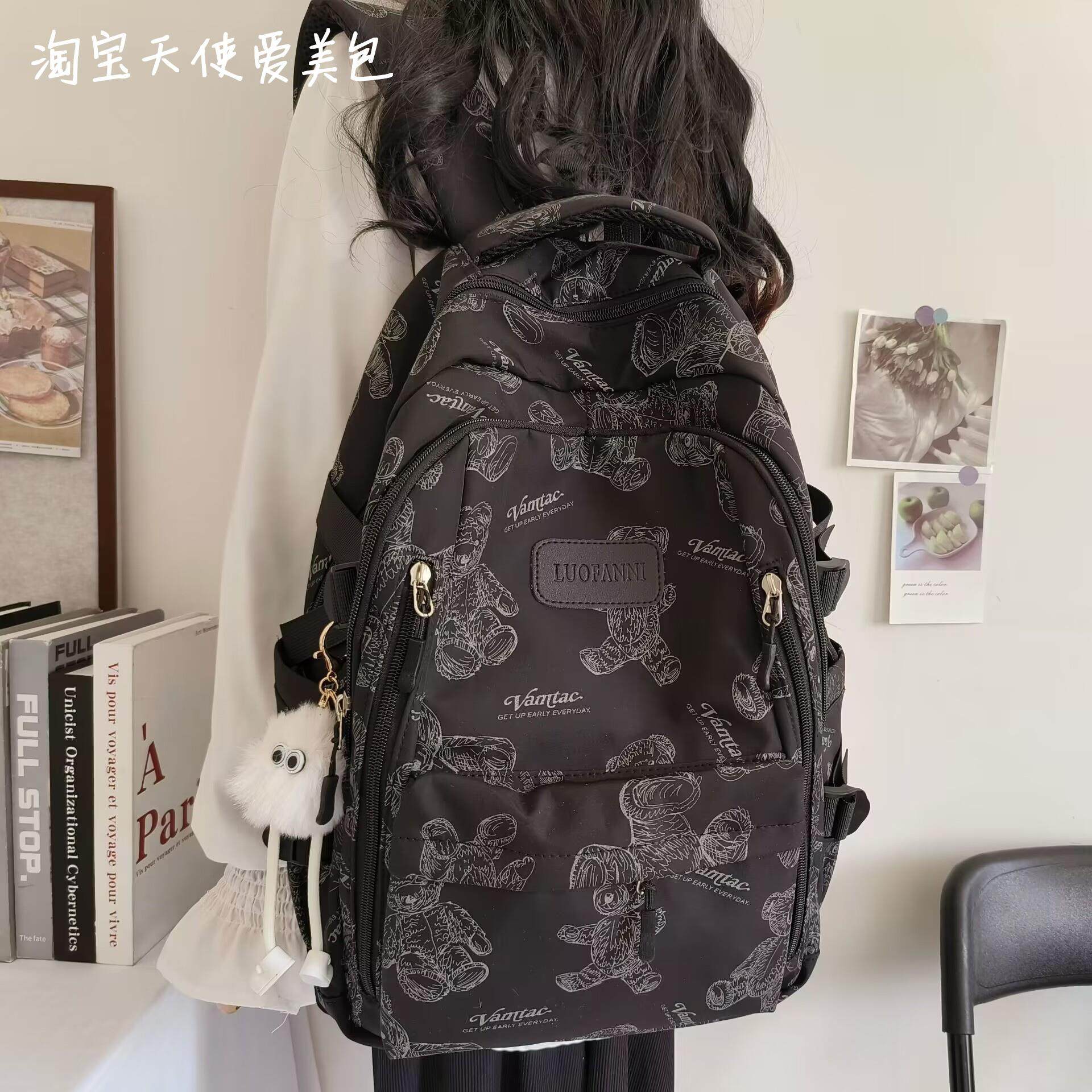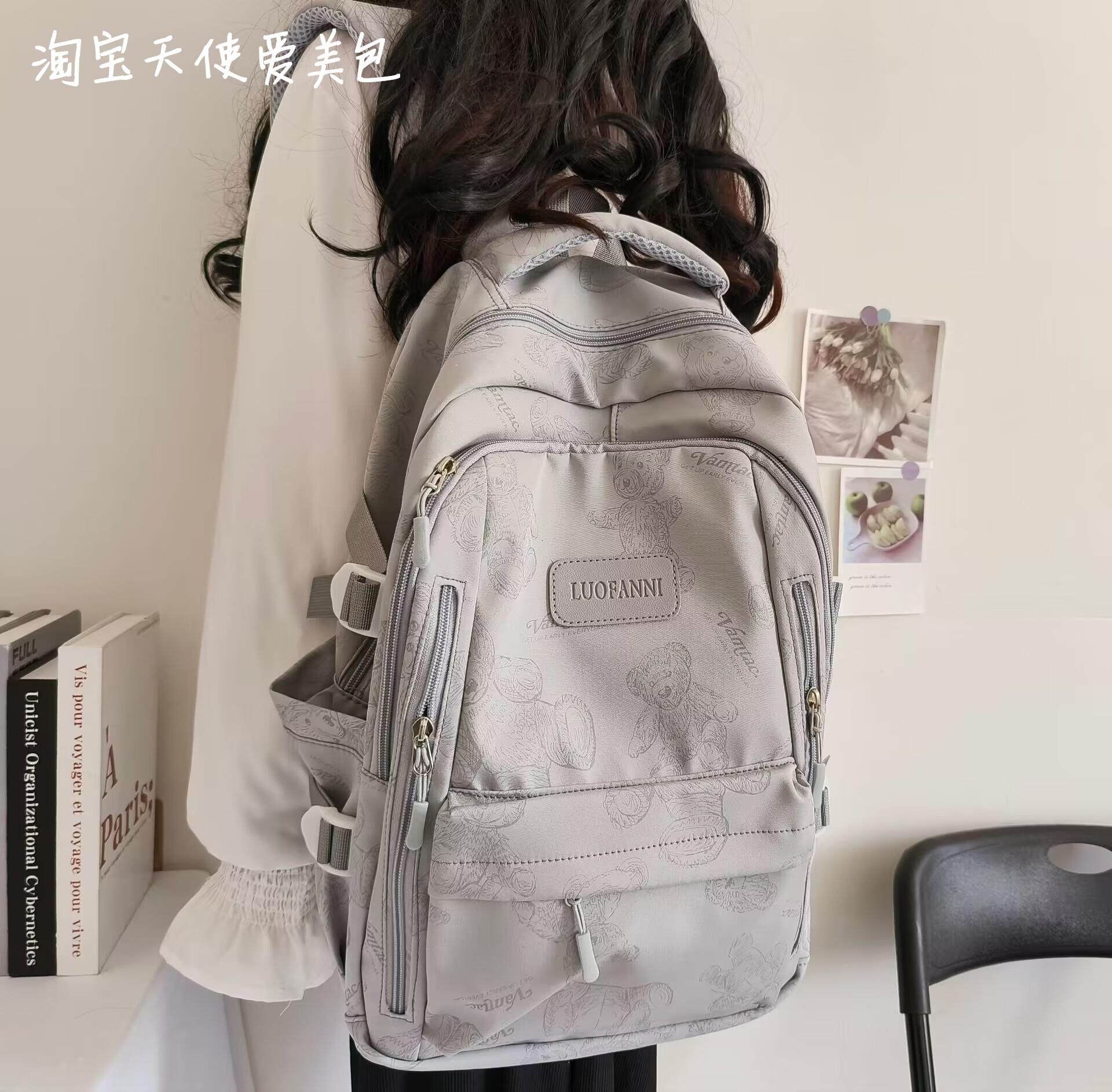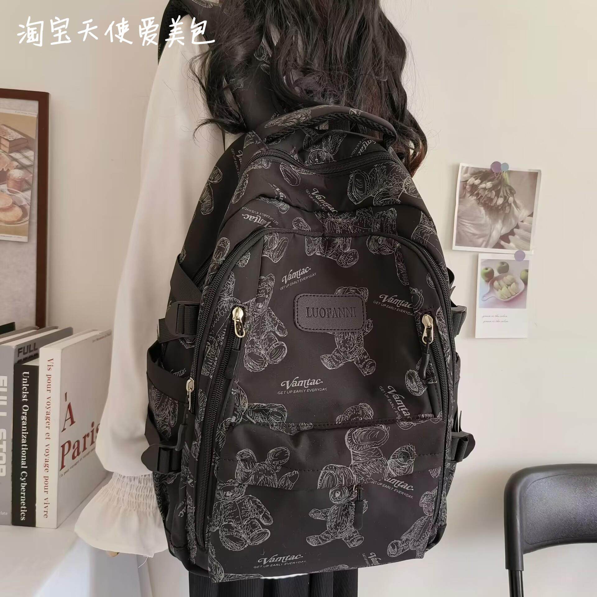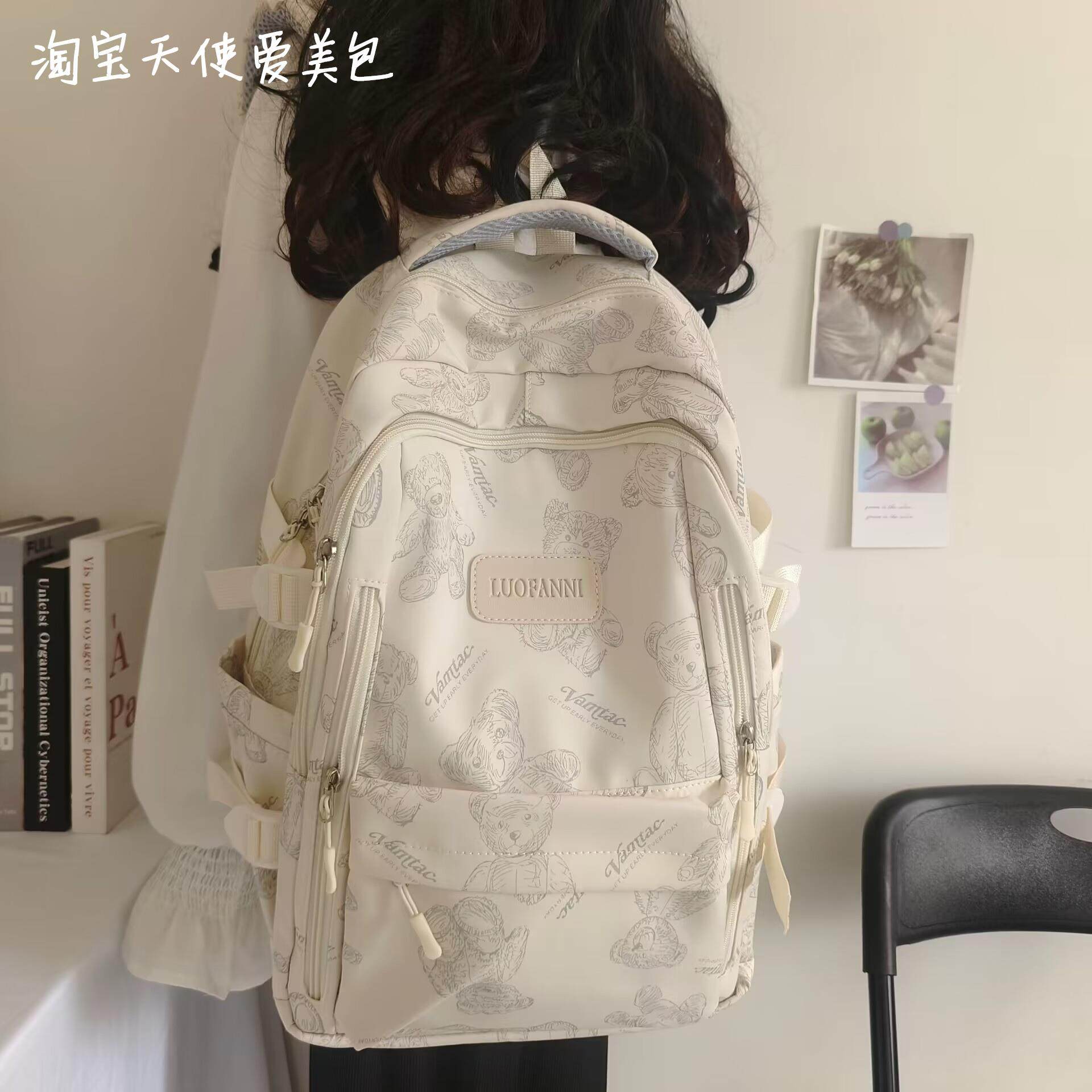 2026新款書包女初中生簡約百搭印花小熊小衆設計大學生電腦後後背包潮