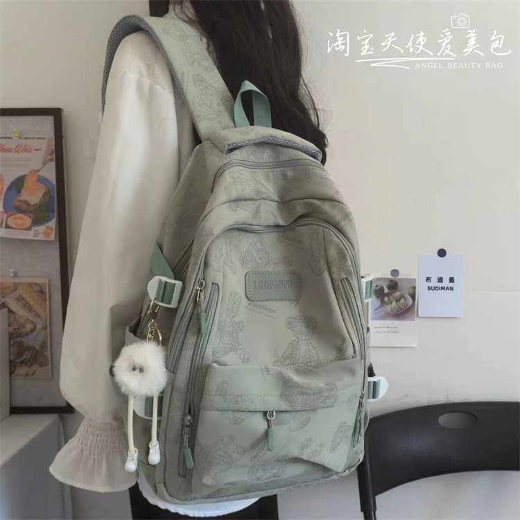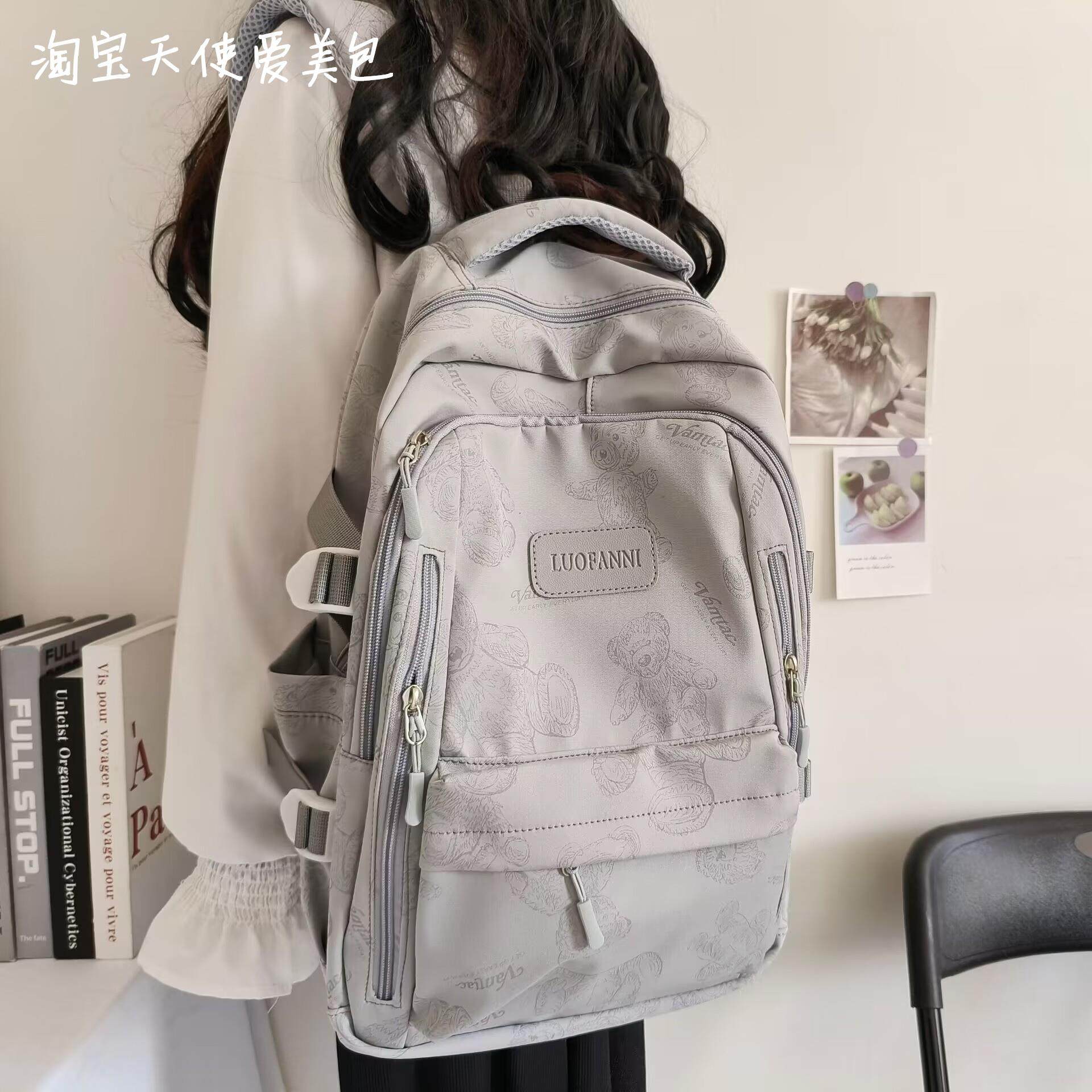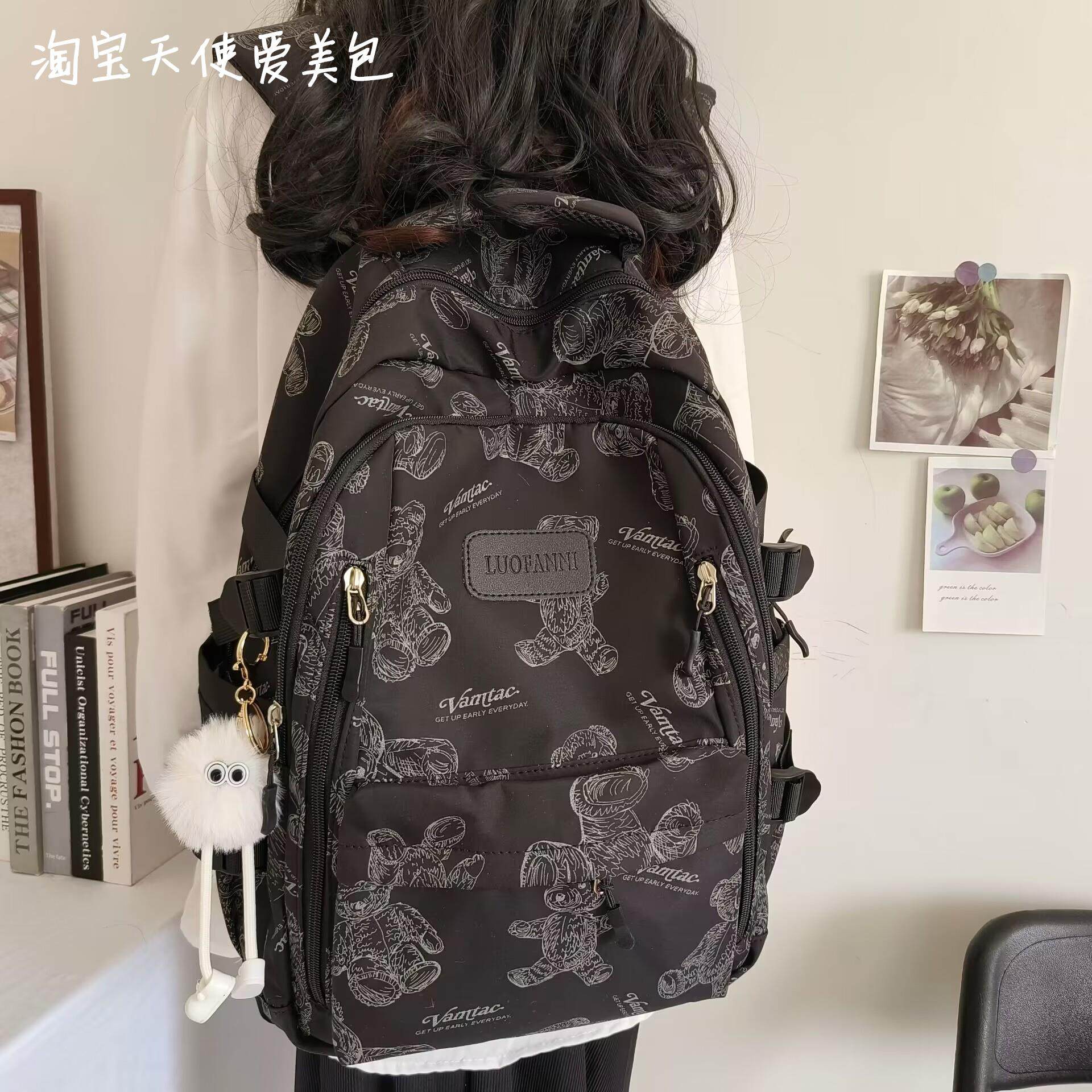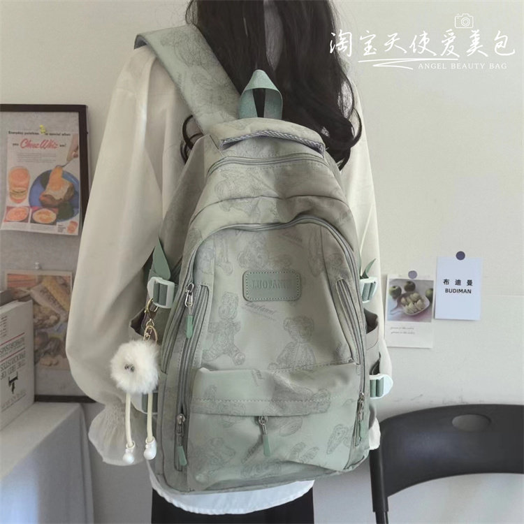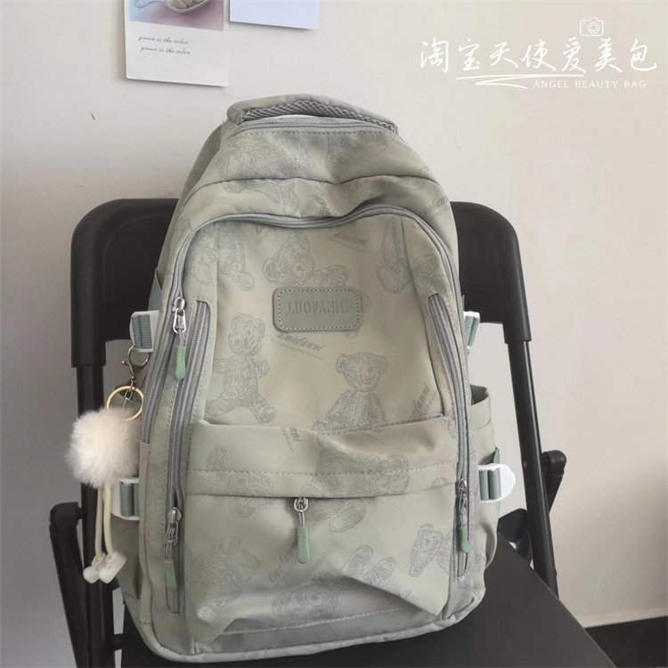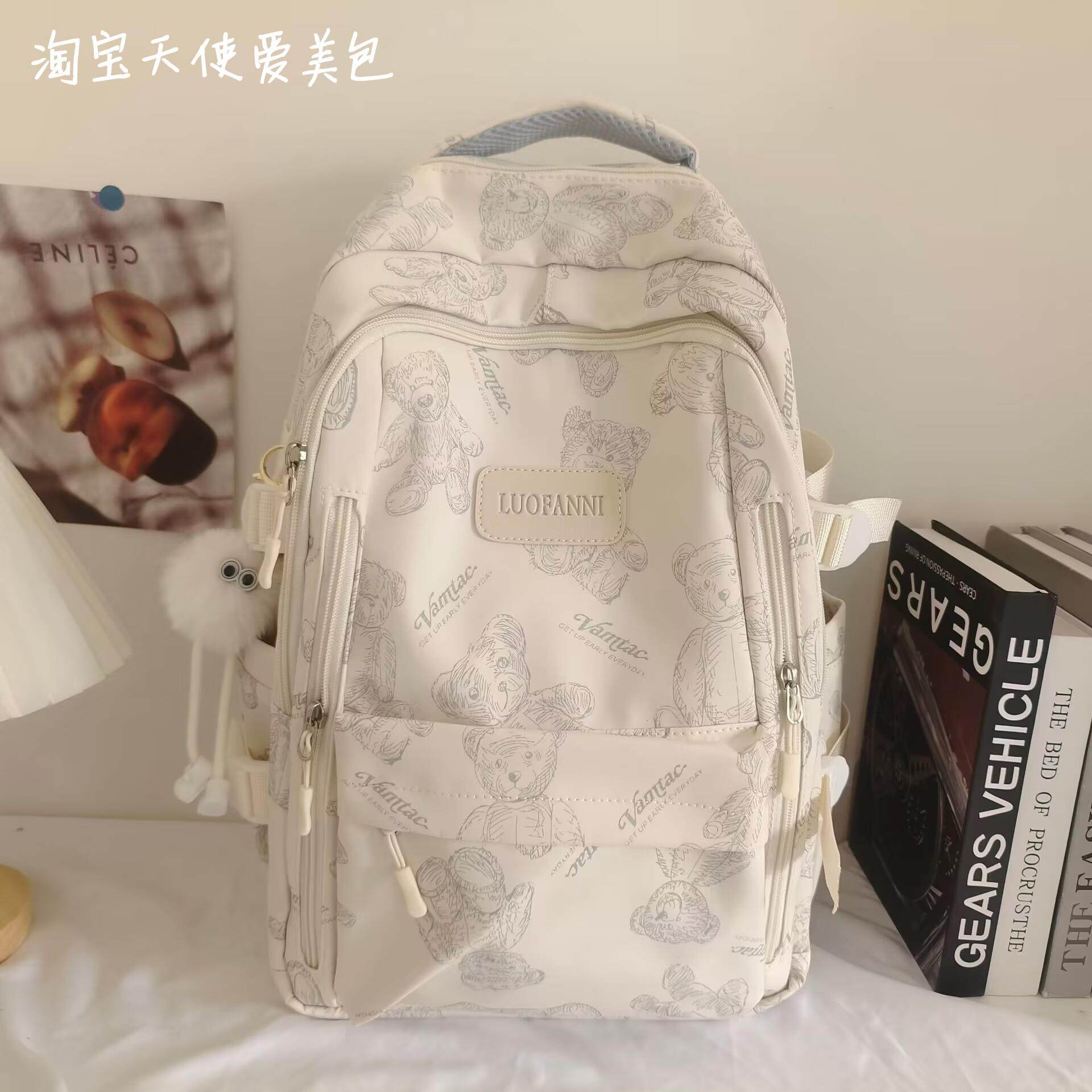 2026新款書包女初中生簡約百搭印花小熊小衆設計大學生電腦後後背包潮