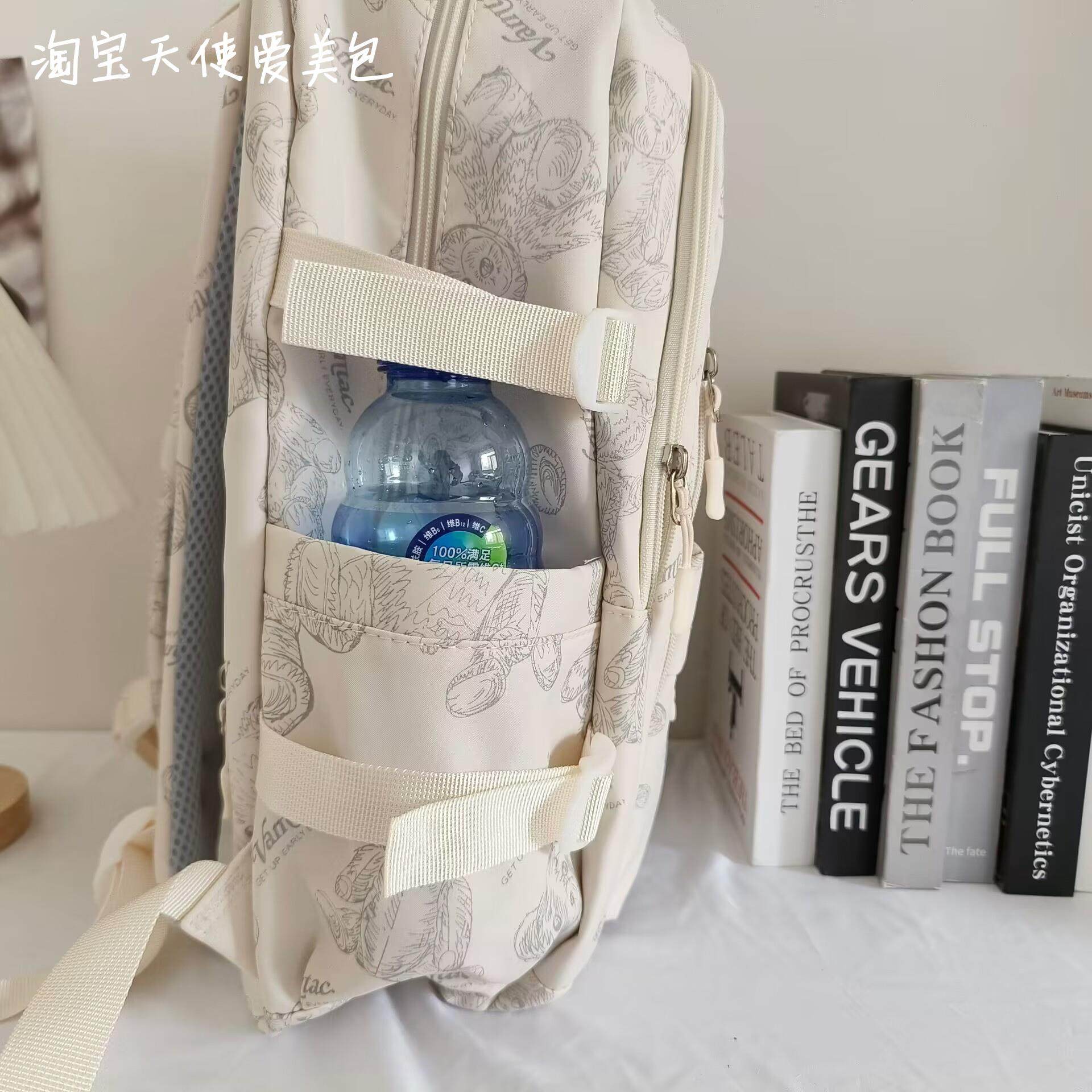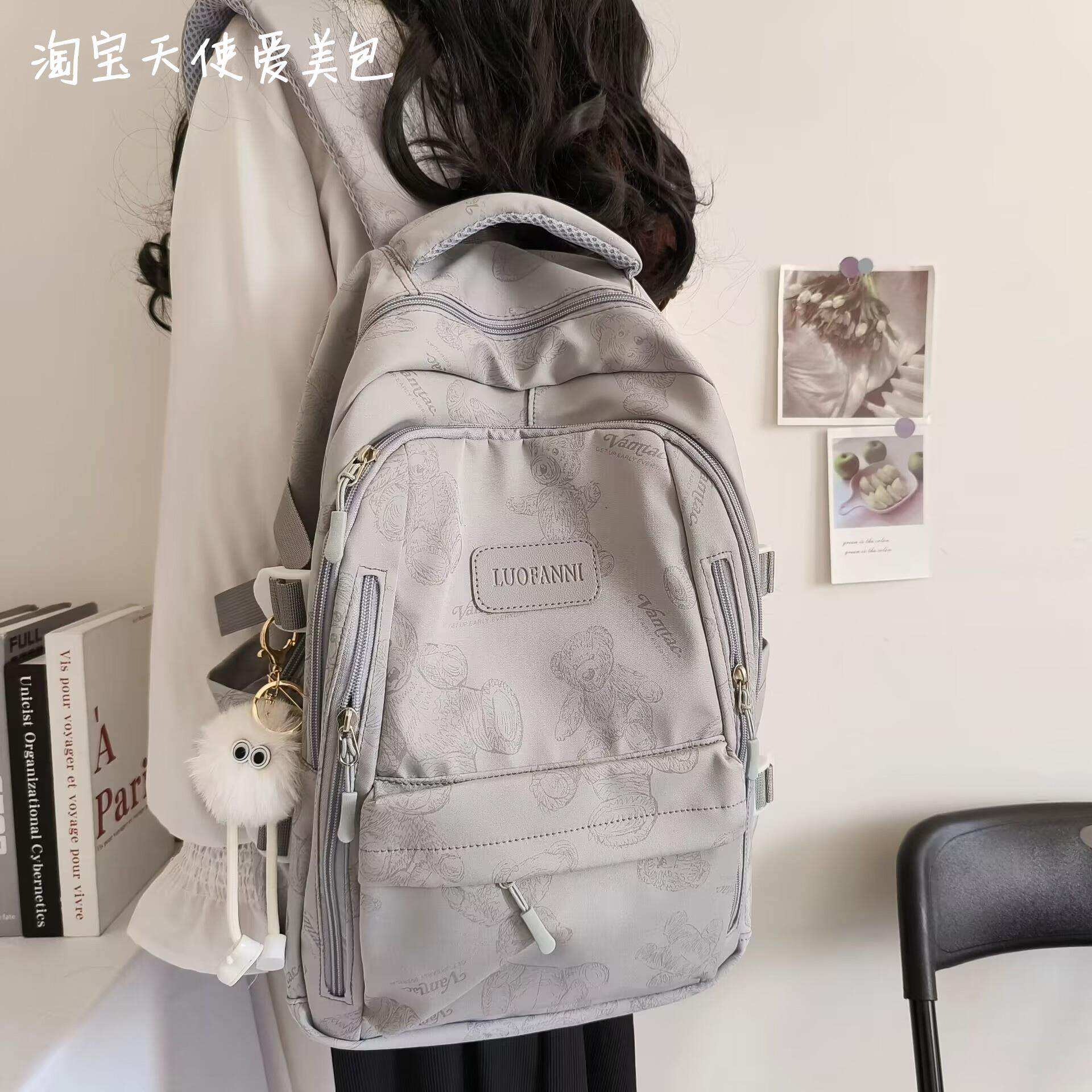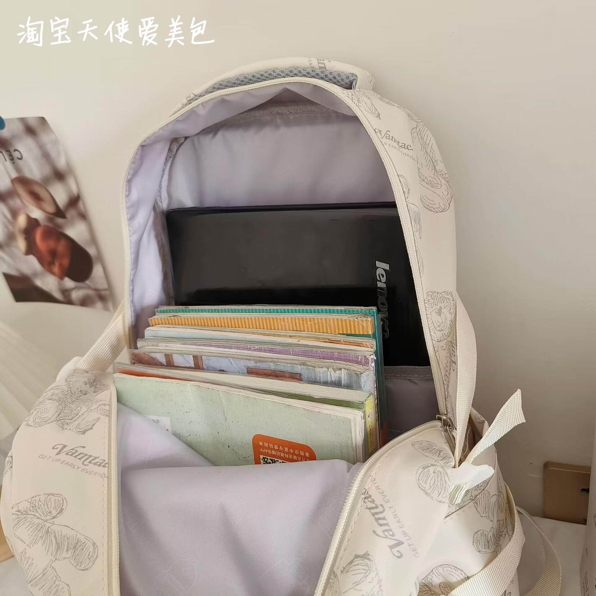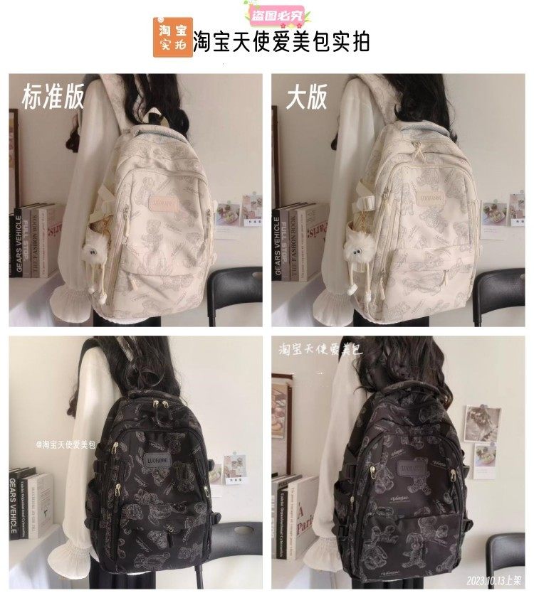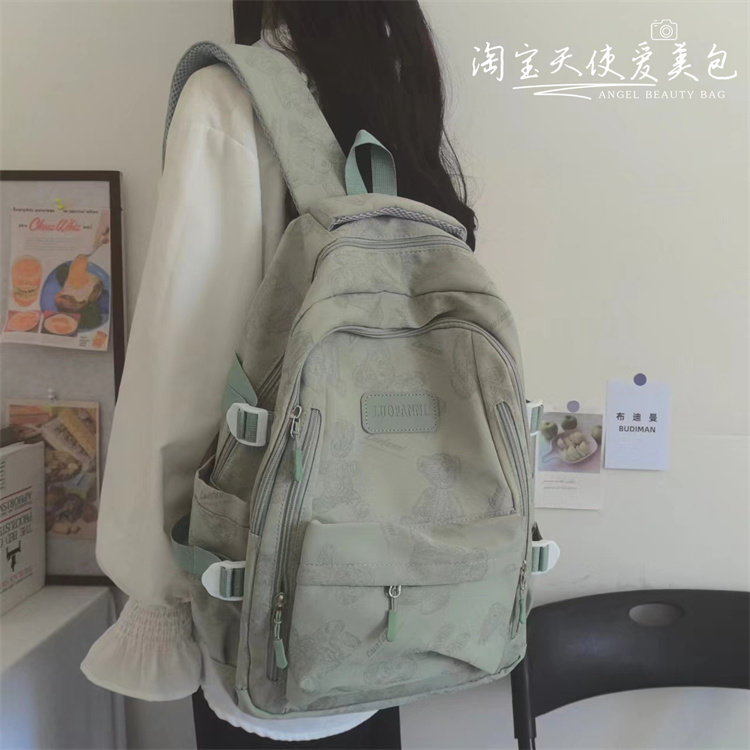 2026新款書包女初中生簡約百搭印花小熊小衆設計大學生電腦後後背包潮