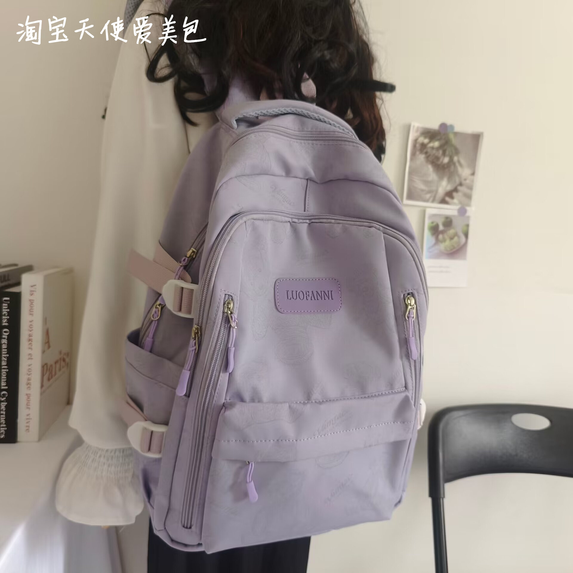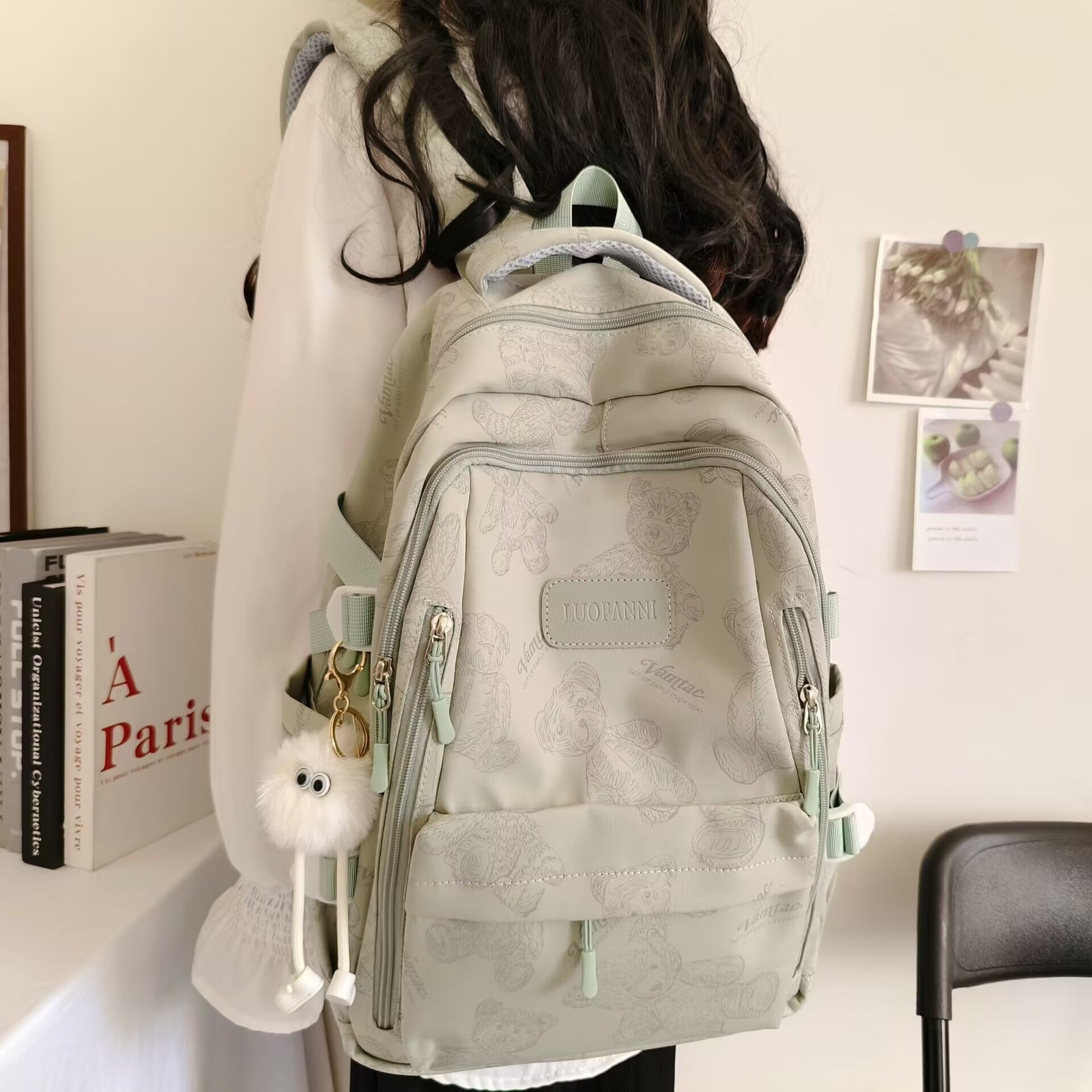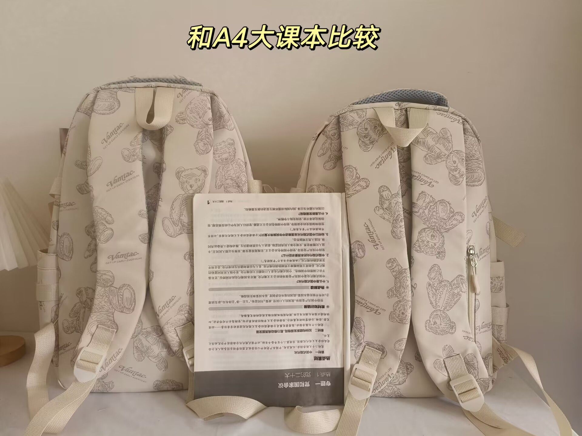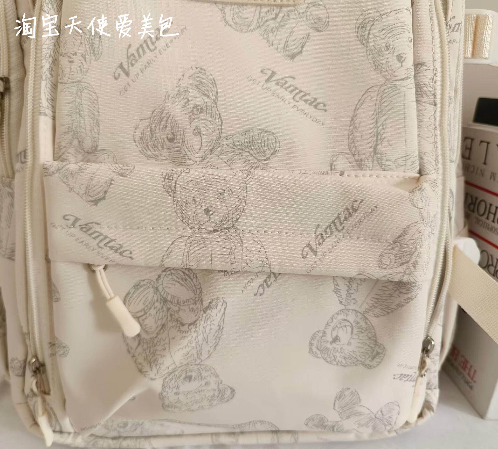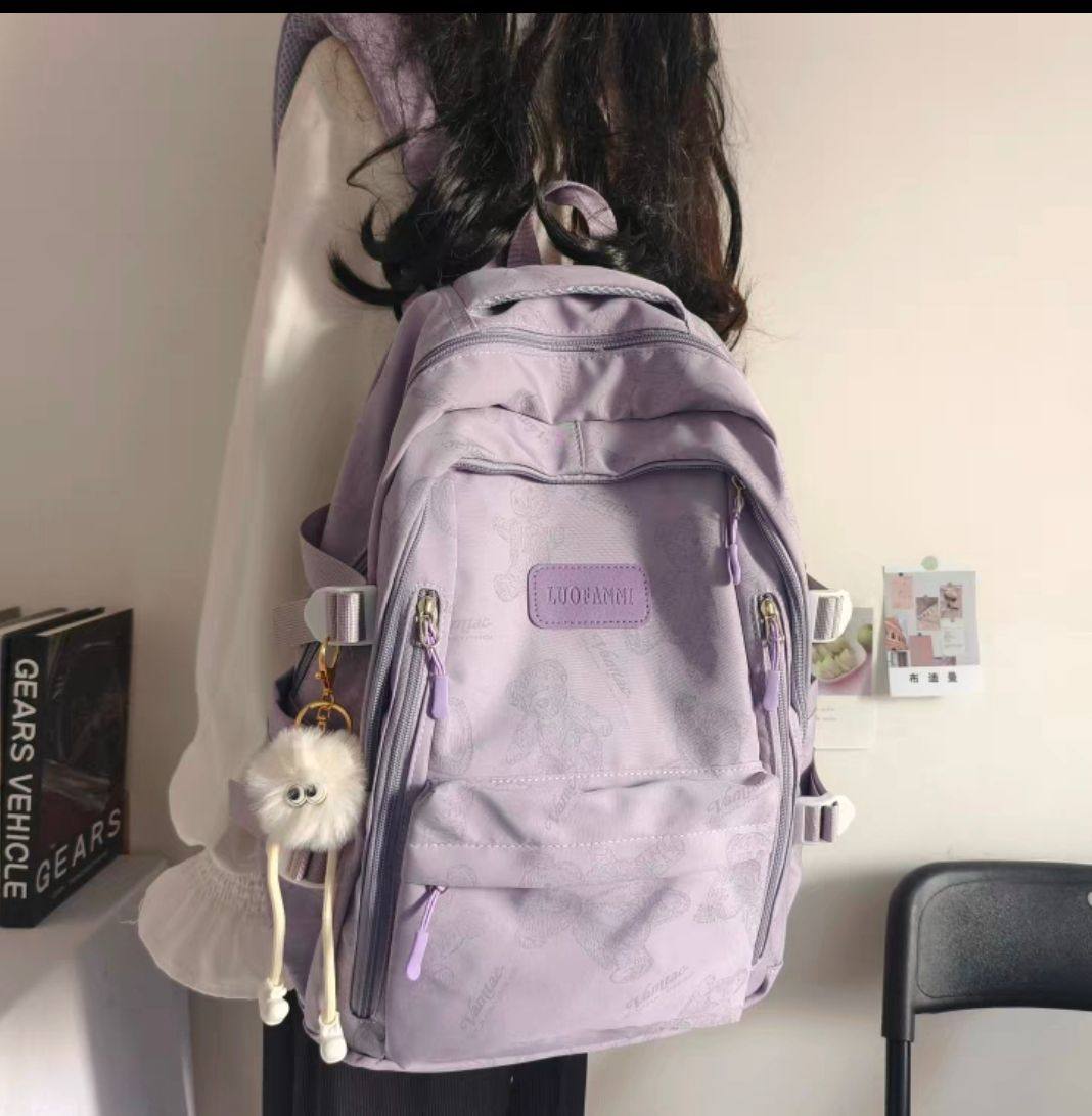 2026新款書包女初中生簡約百搭印花小熊小衆設計大學生電腦後後背包潮