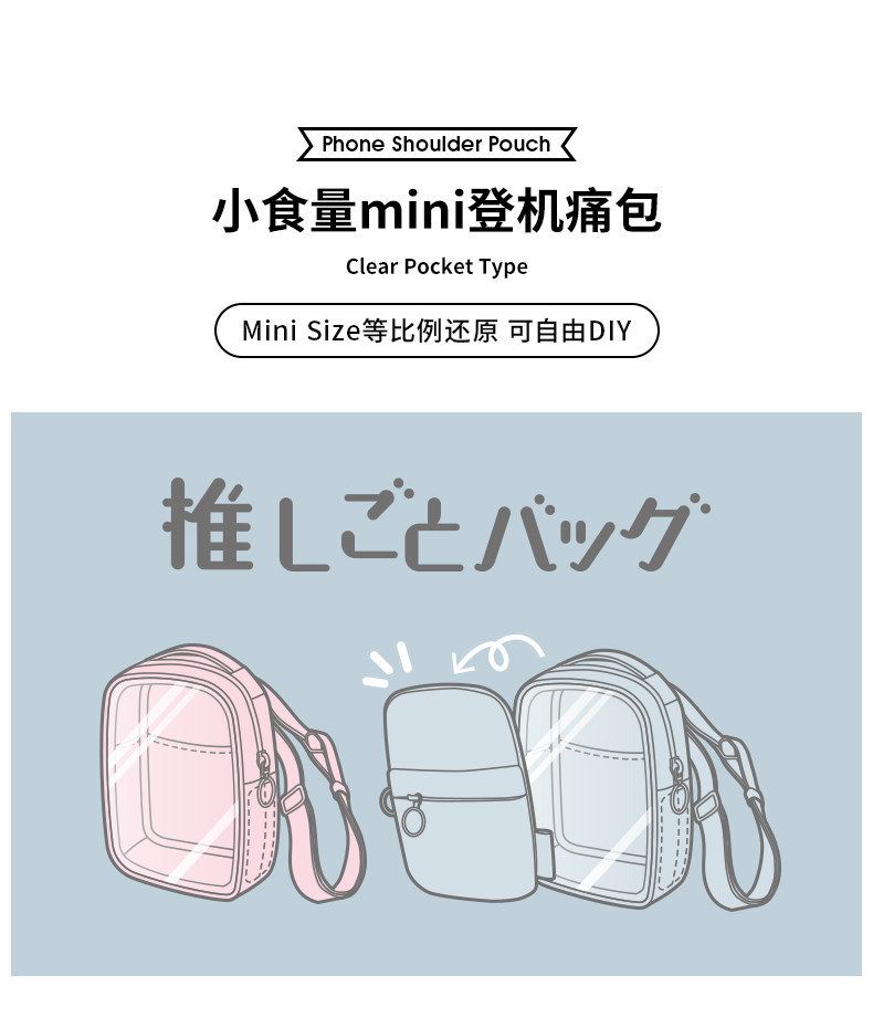 ELECOM迷你痛包小食量mini透明單肩包DIY手機包休閒斜後後背包登機包
