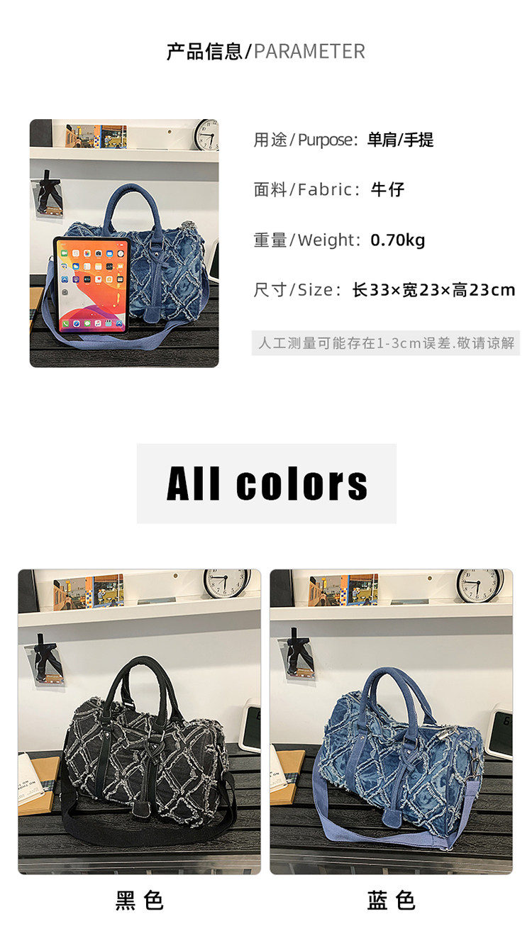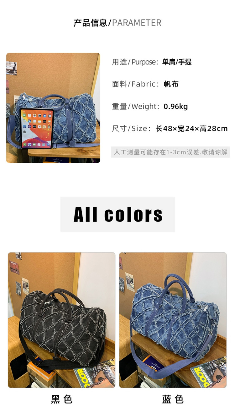 旅行包行李袋男女休閒帆布大容量短途包水洗牛仔布斜背手提健身包