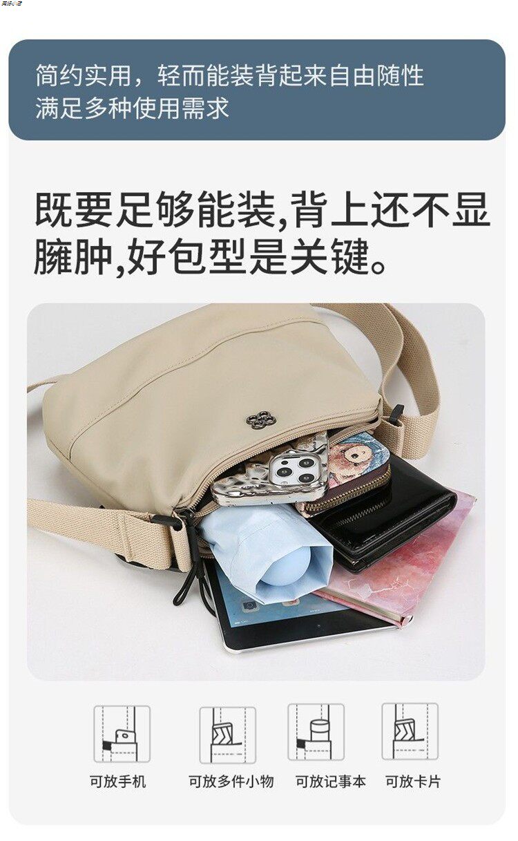 多層2024新款輕便多功能休閒百搭防水可攜式時尚單肩斜後後背包布包
