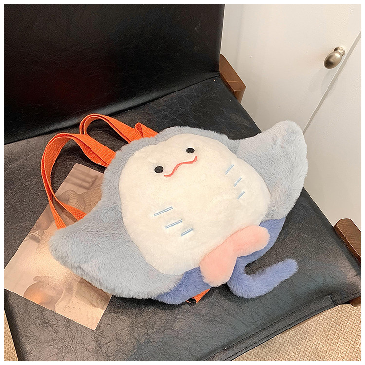 魔鬼魚雙肩包可愛卡通毛絨玩具包少女後後背包動物玩偶包女孩生日禮物