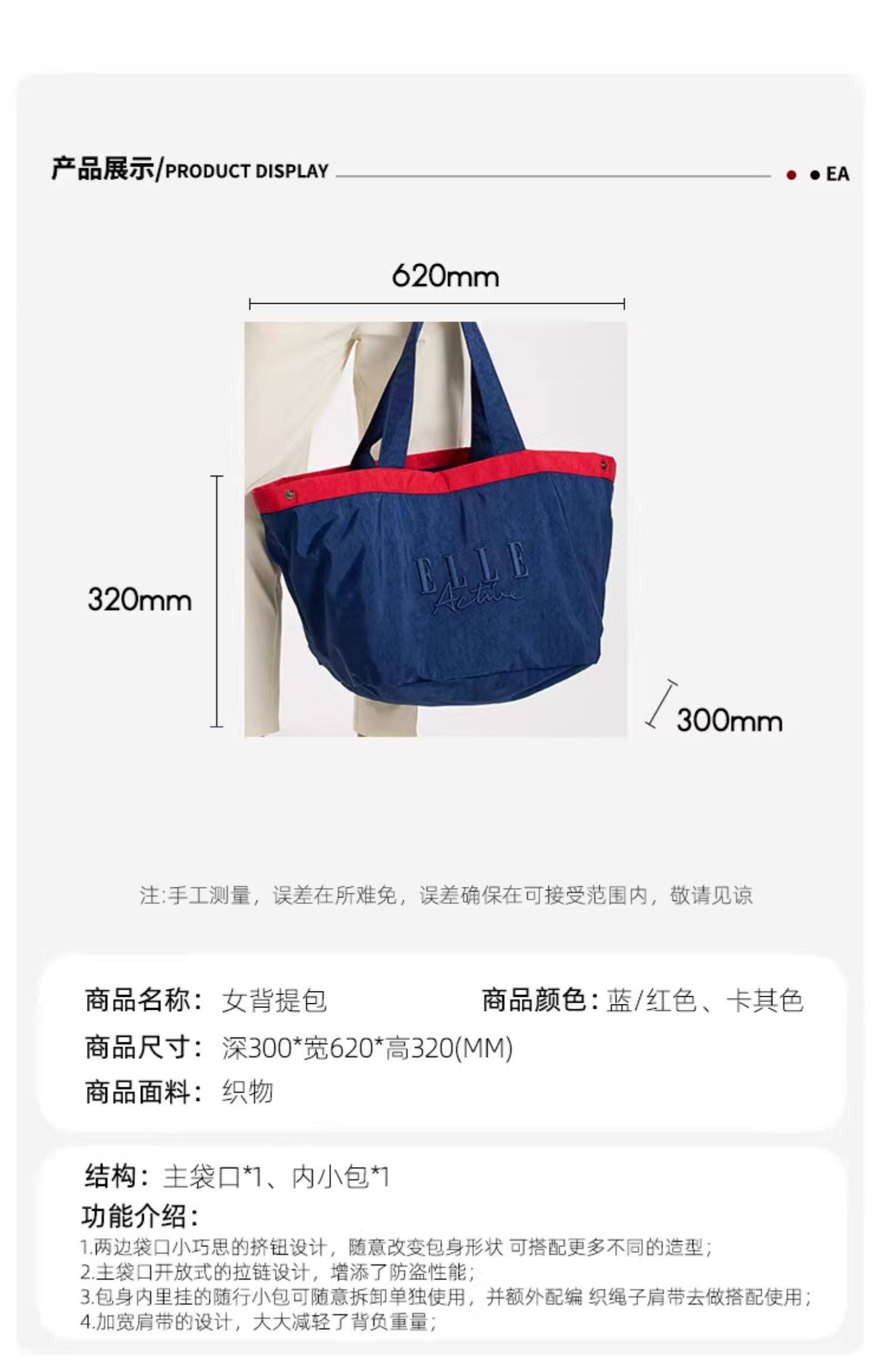 ELLE Active時尚輕便托特包大容量單肩包戶外運動旅行休閒女包
