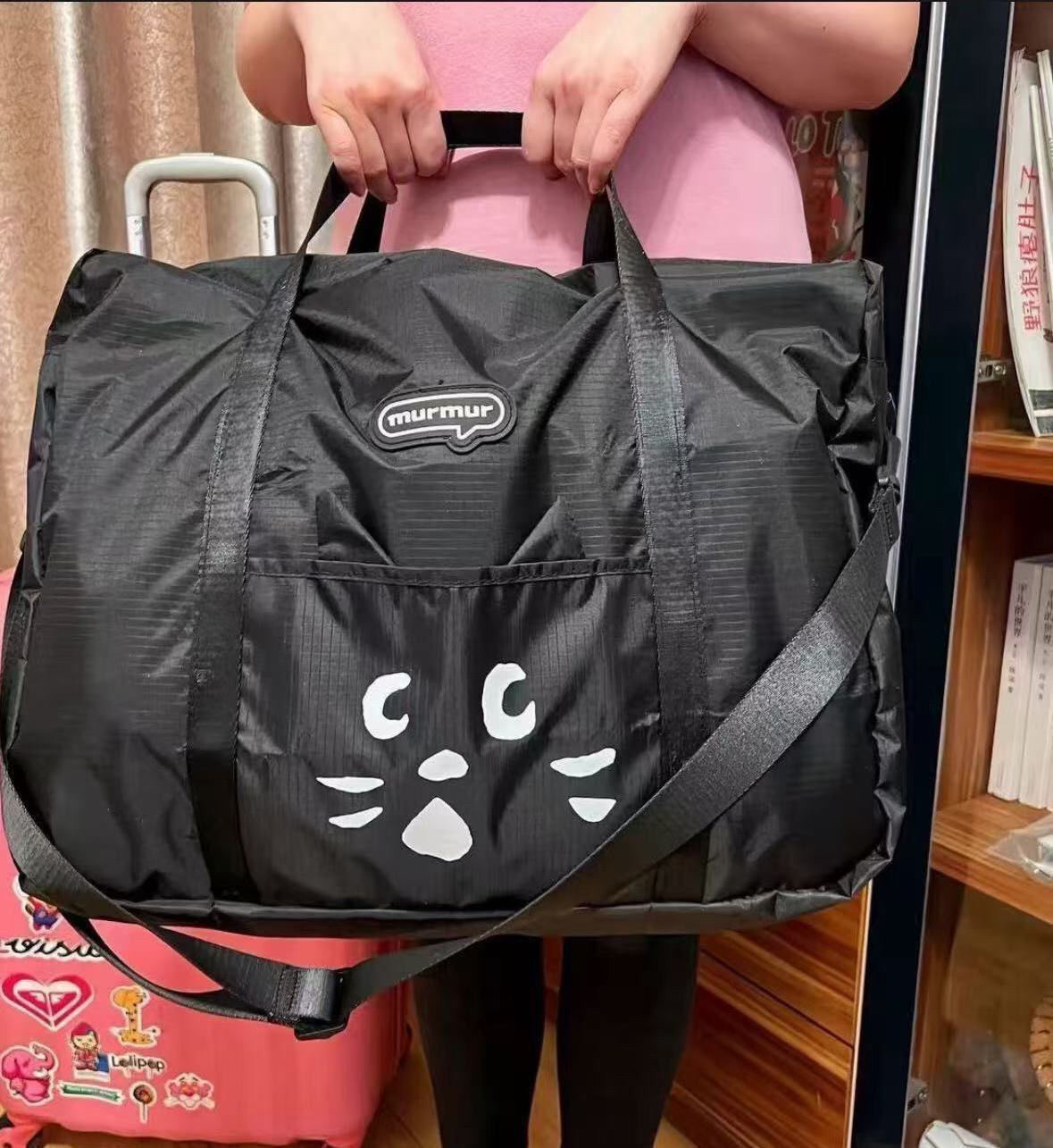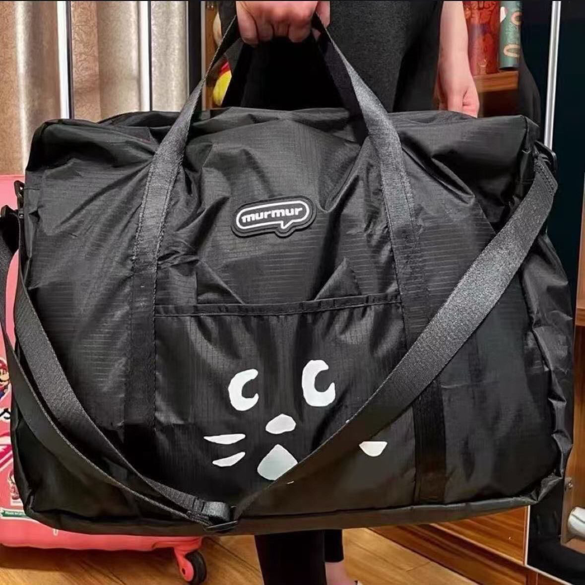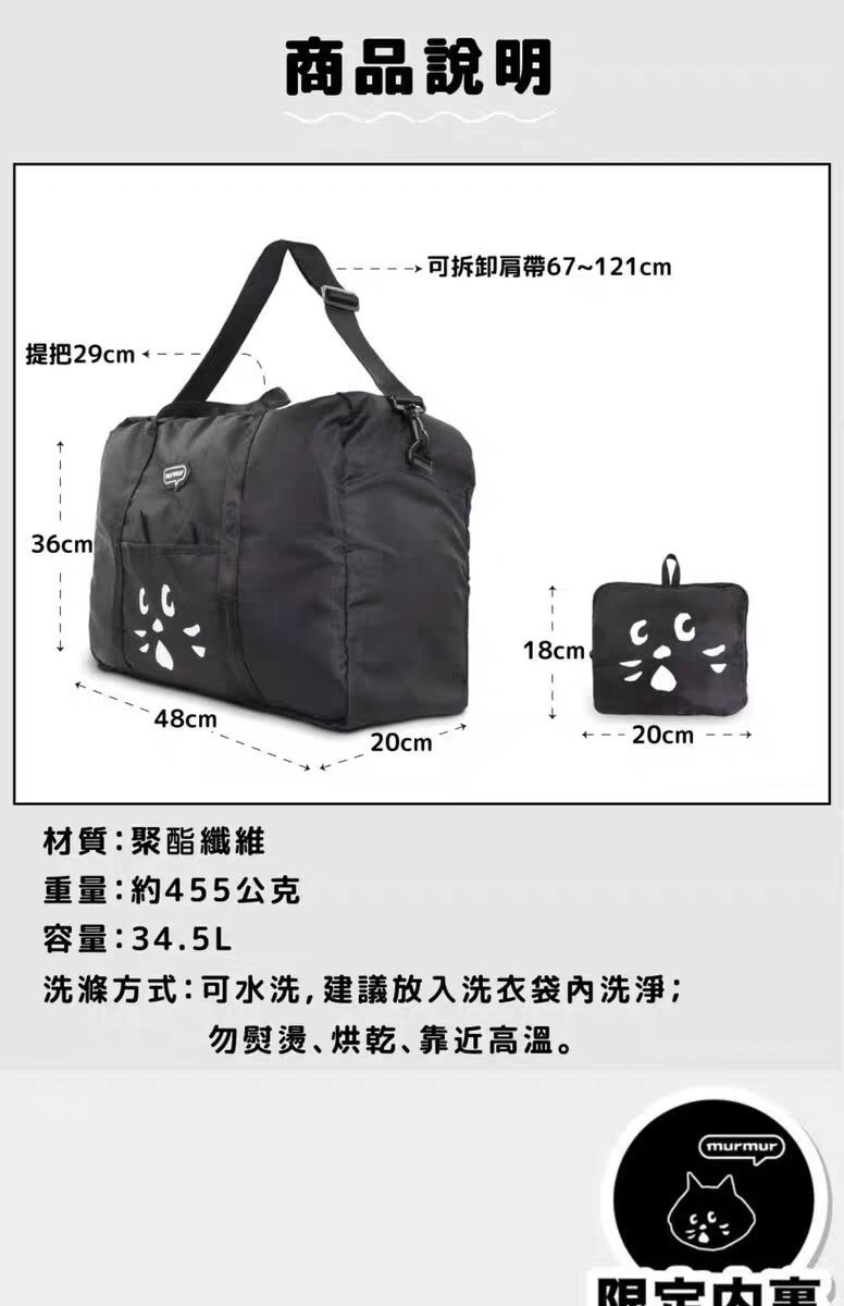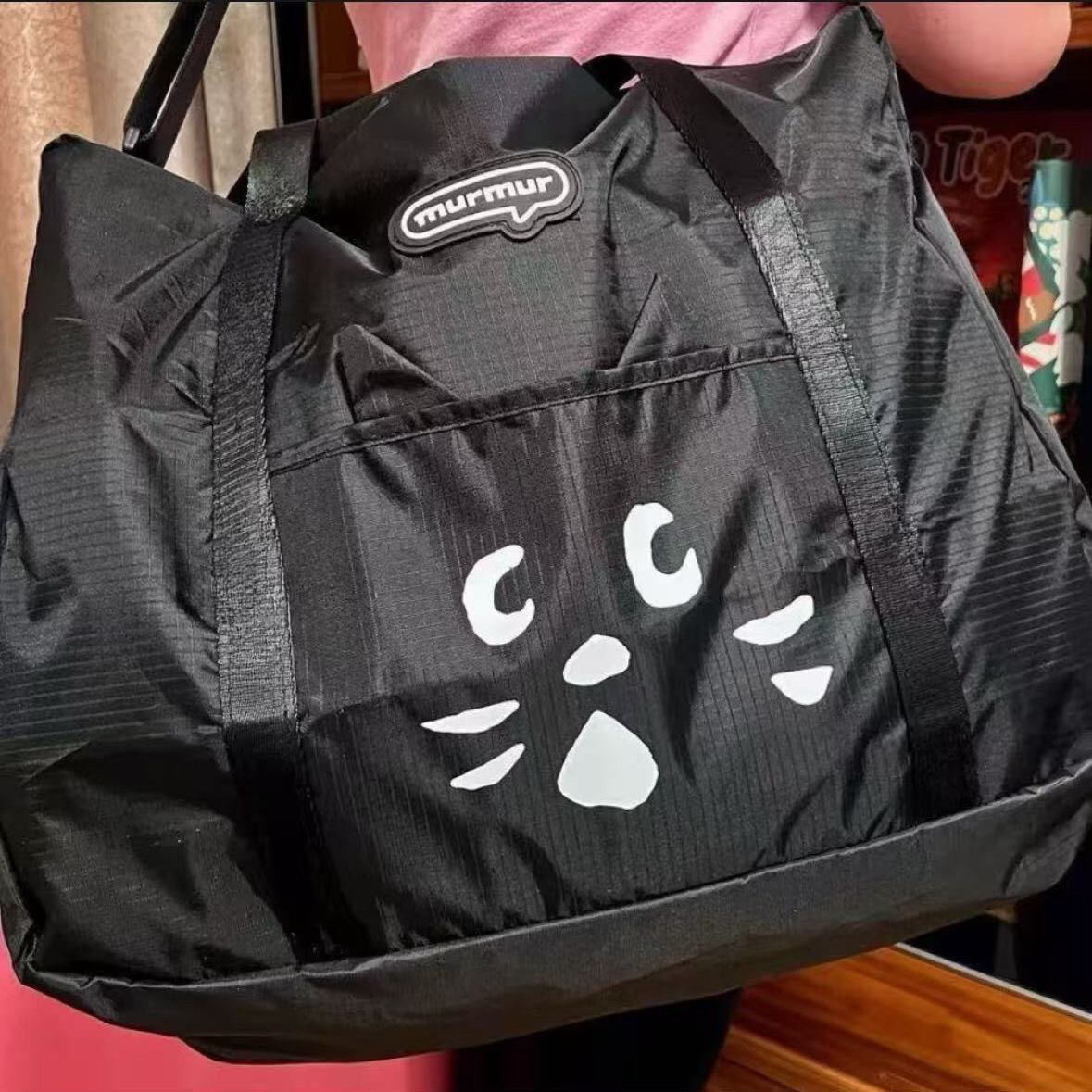 日系貓咪卡通可愛折疊大容量旅行包可攜式行李袋男女出行健身包