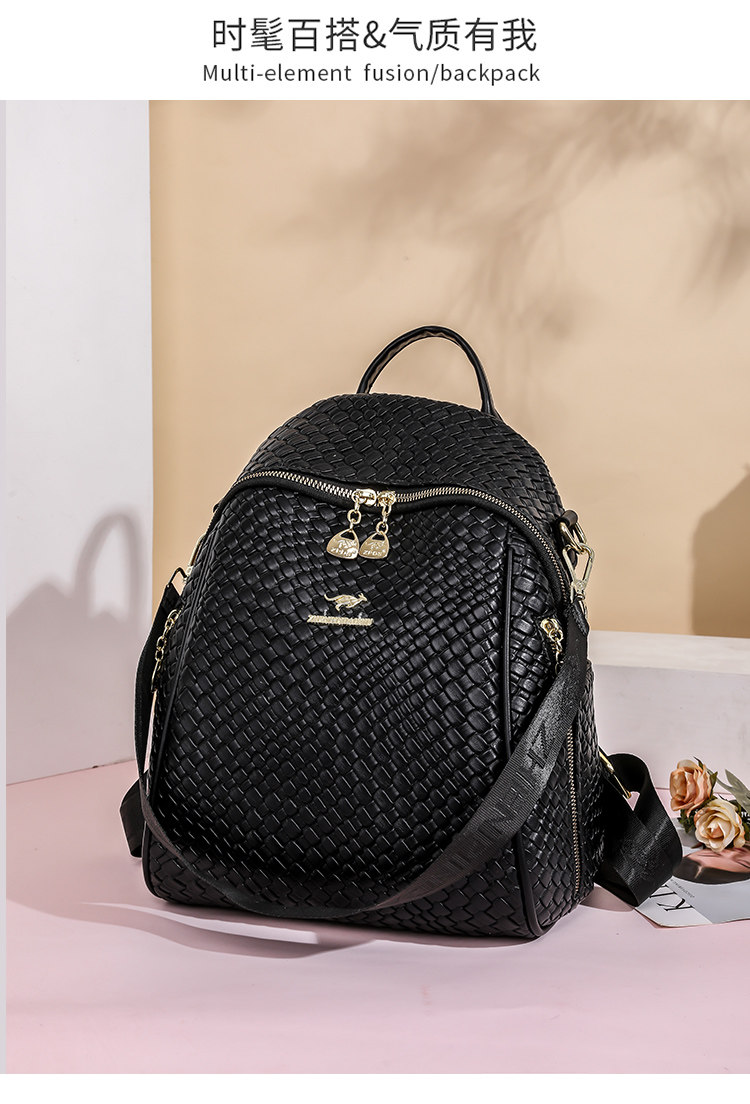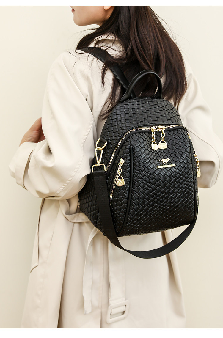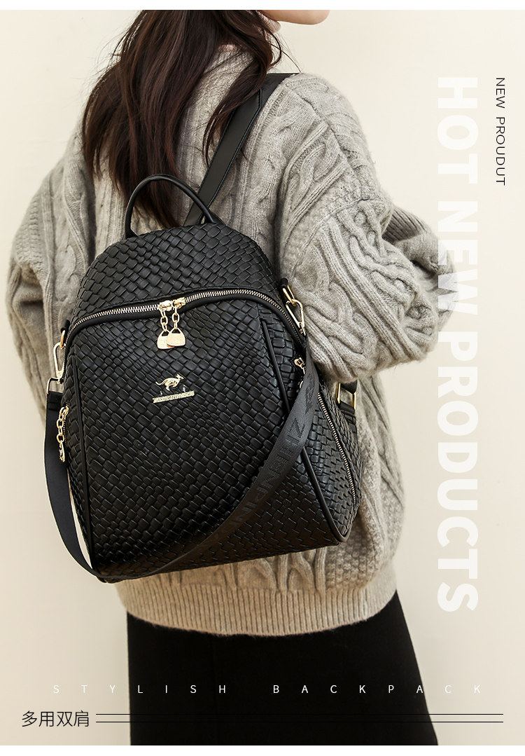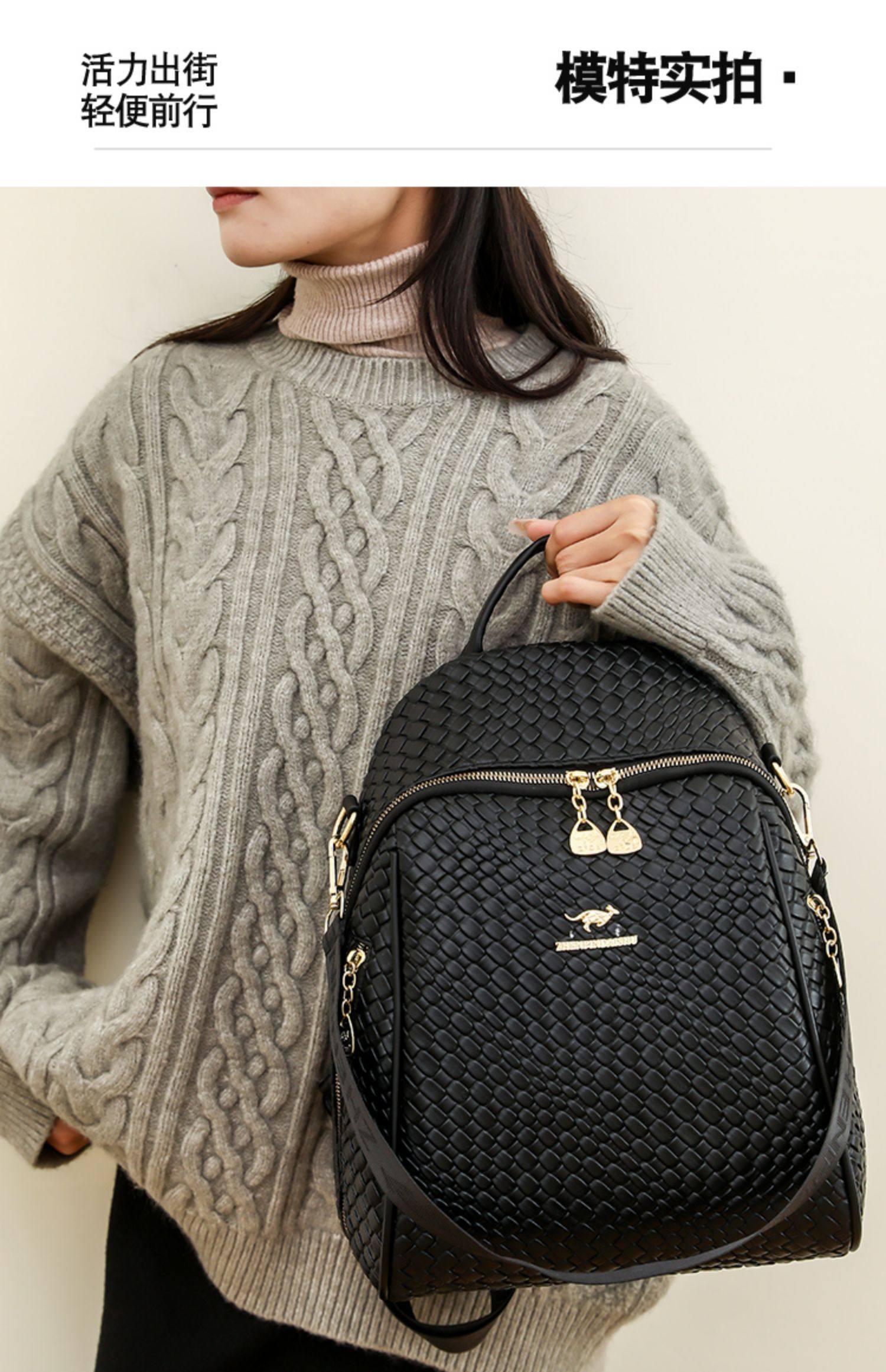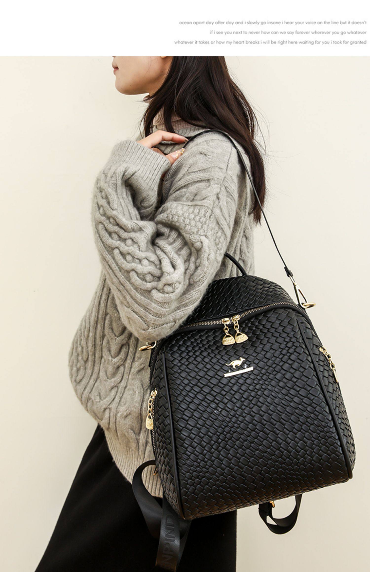 雙肩包女2026新款簡約時尚編織紋通勤旅遊包書包輕便多功能媽咪包