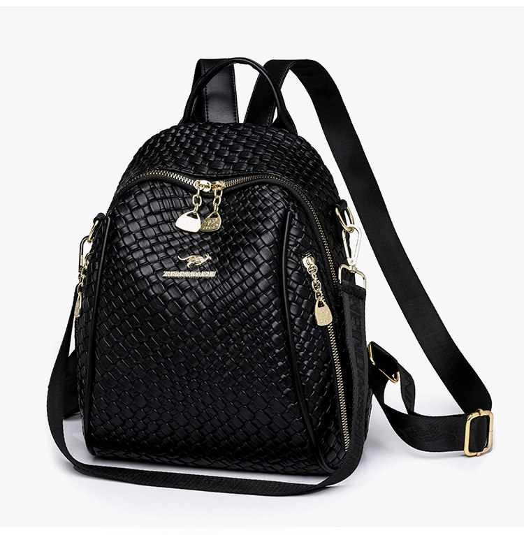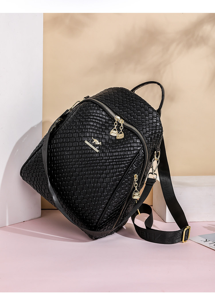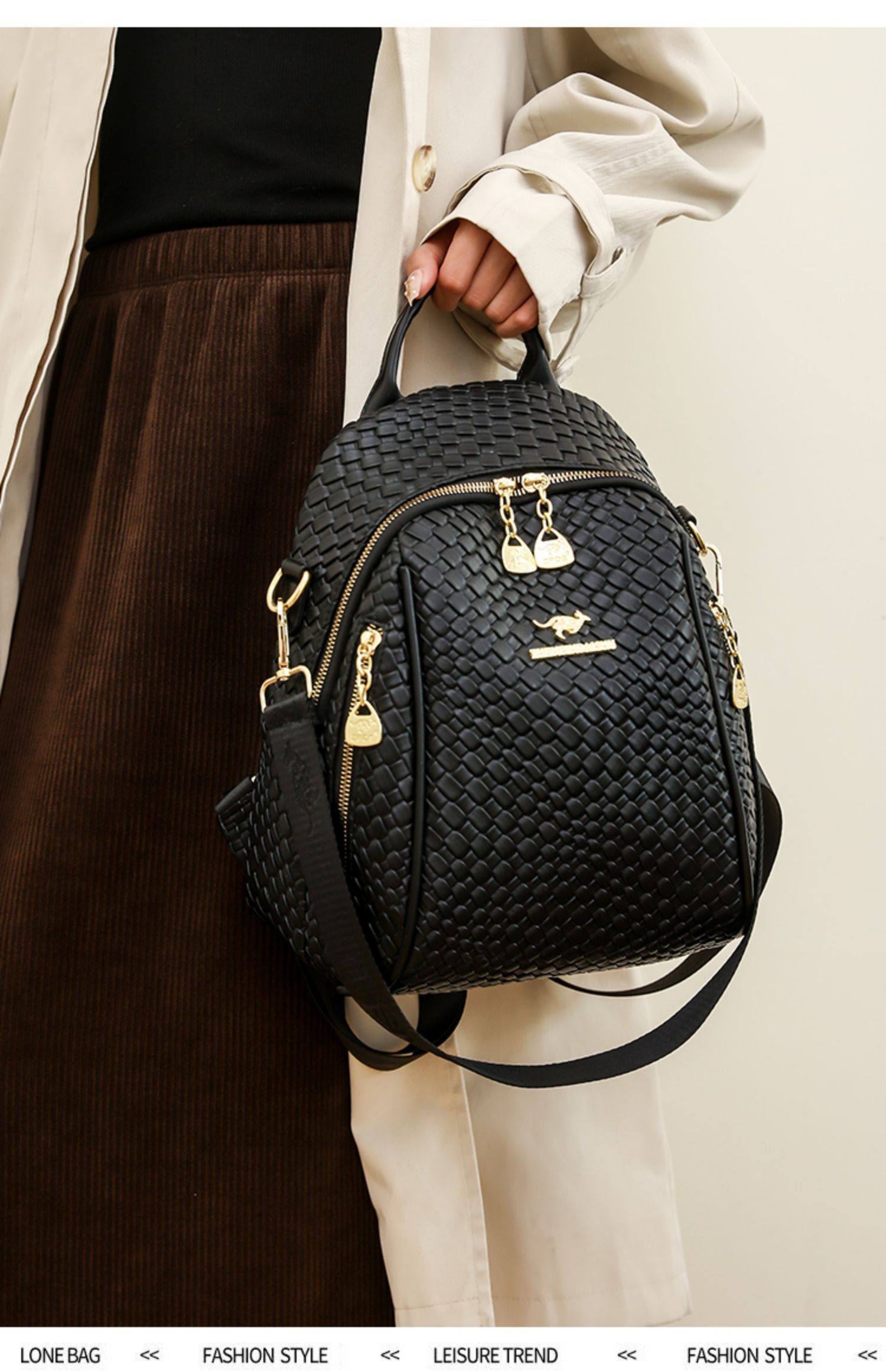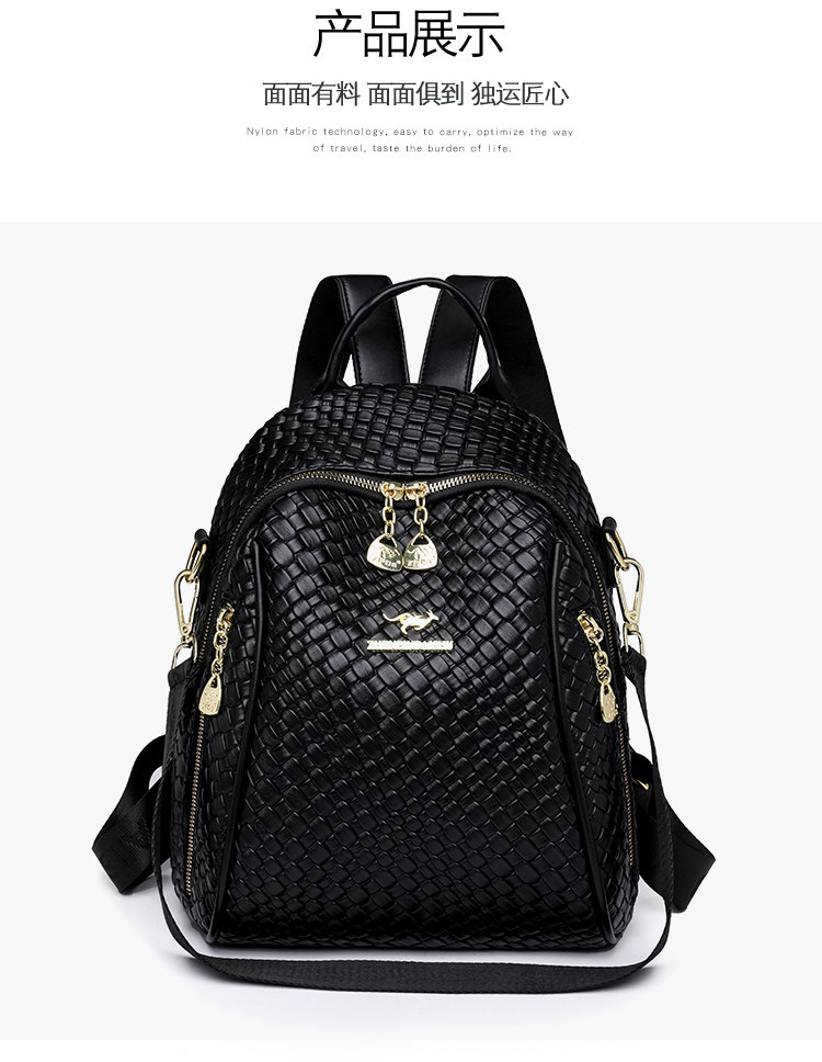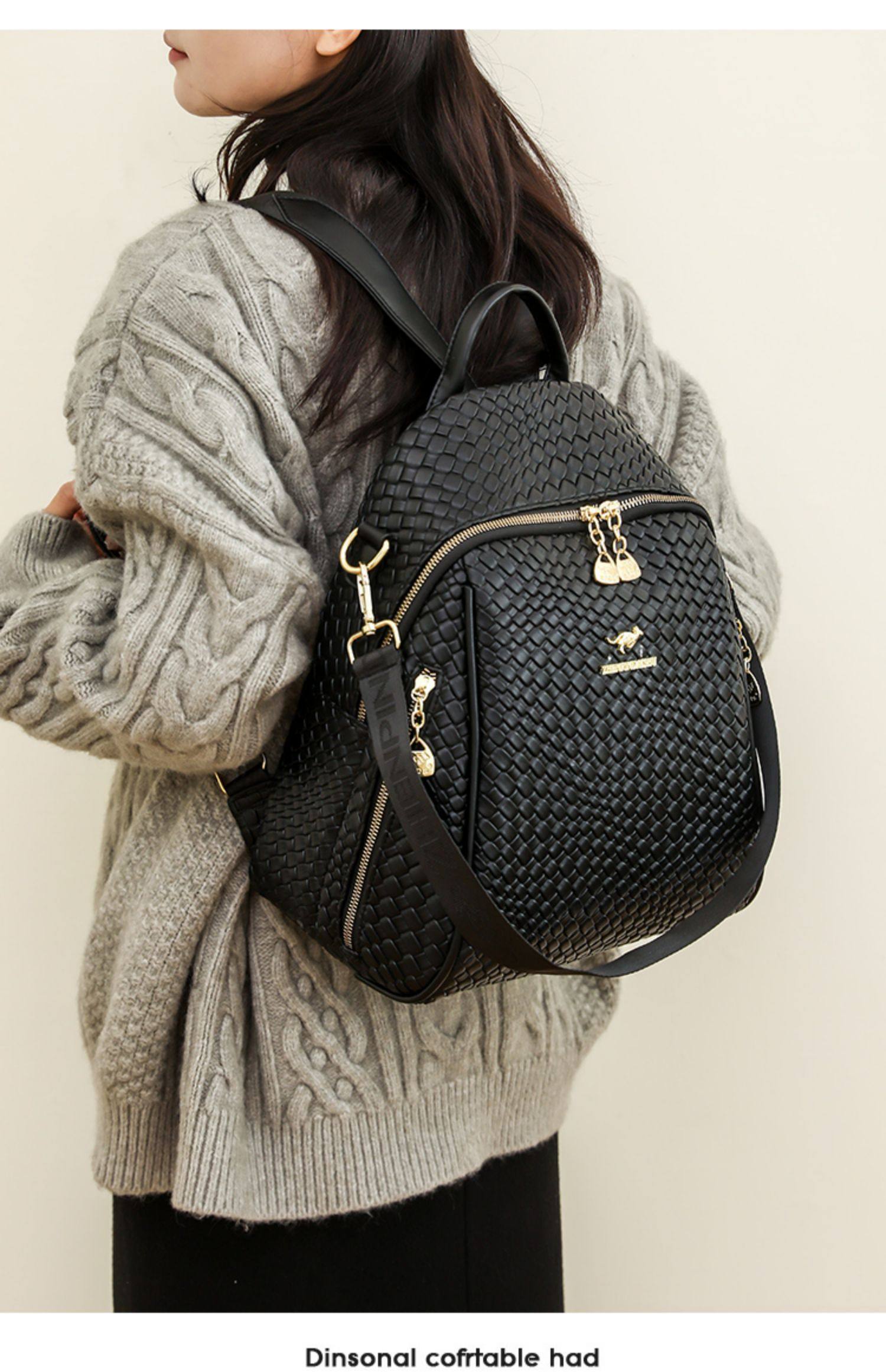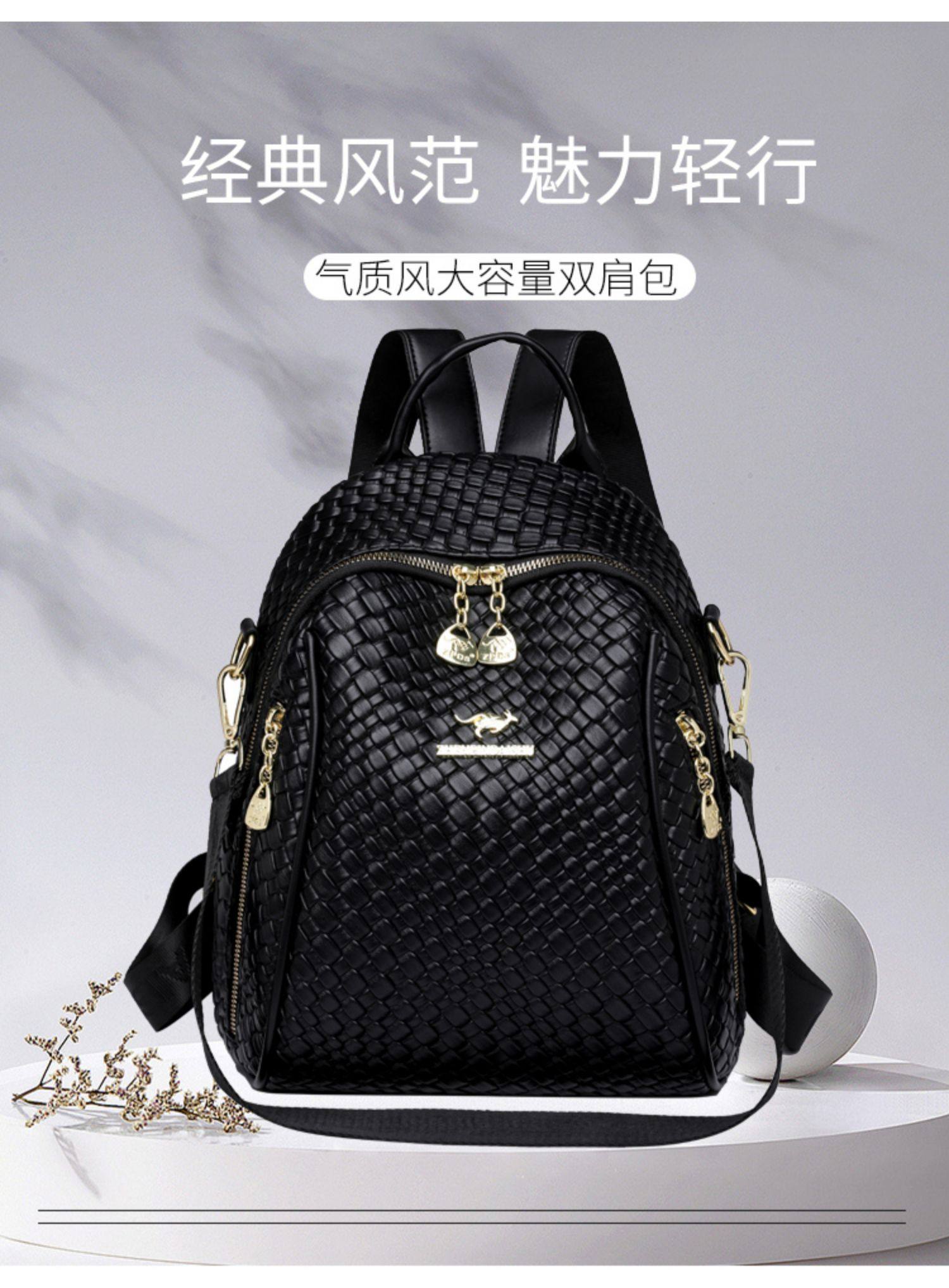 雙肩包女2026新款簡約時尚編織紋通勤旅遊包書包輕便多功能媽咪包