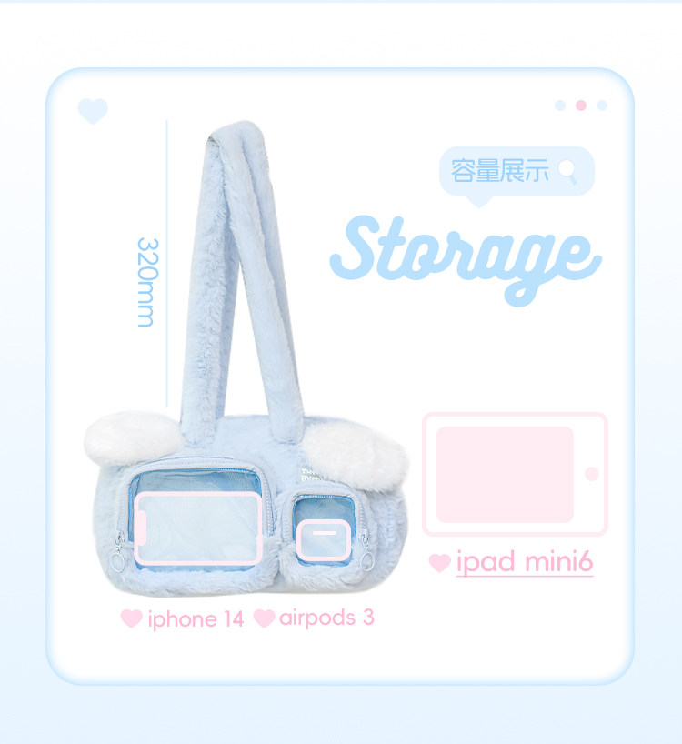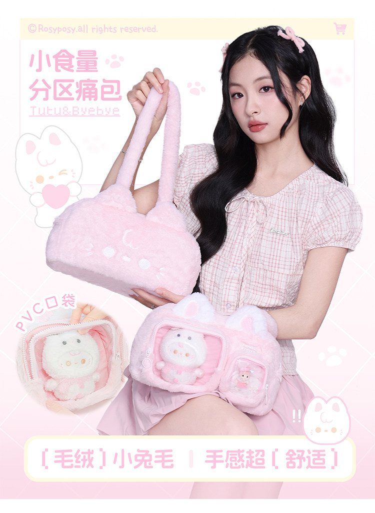 RosyPosy柔設毛絨包分區痛包大容量單肩包可愛娃包二次元斜後後背包