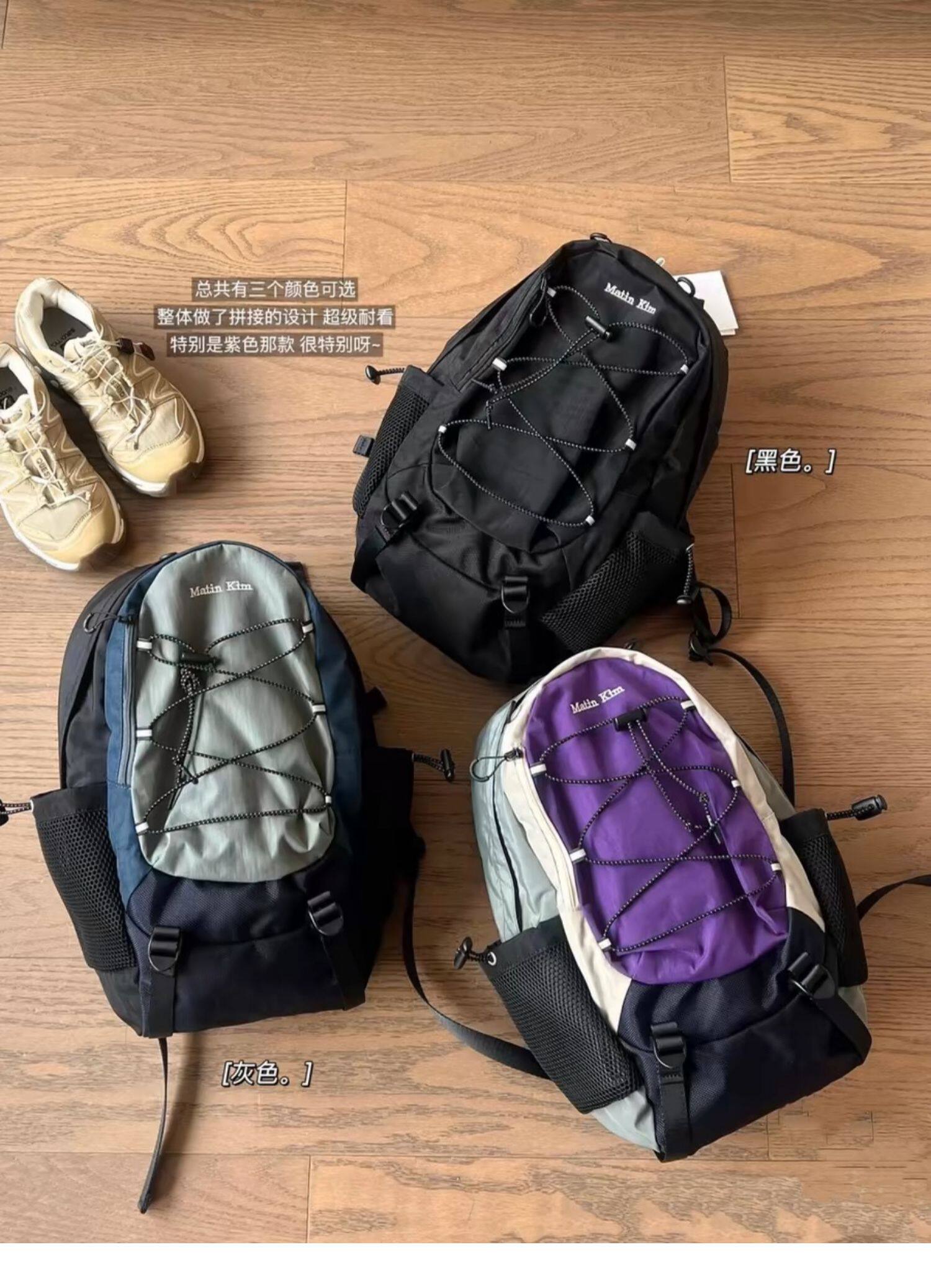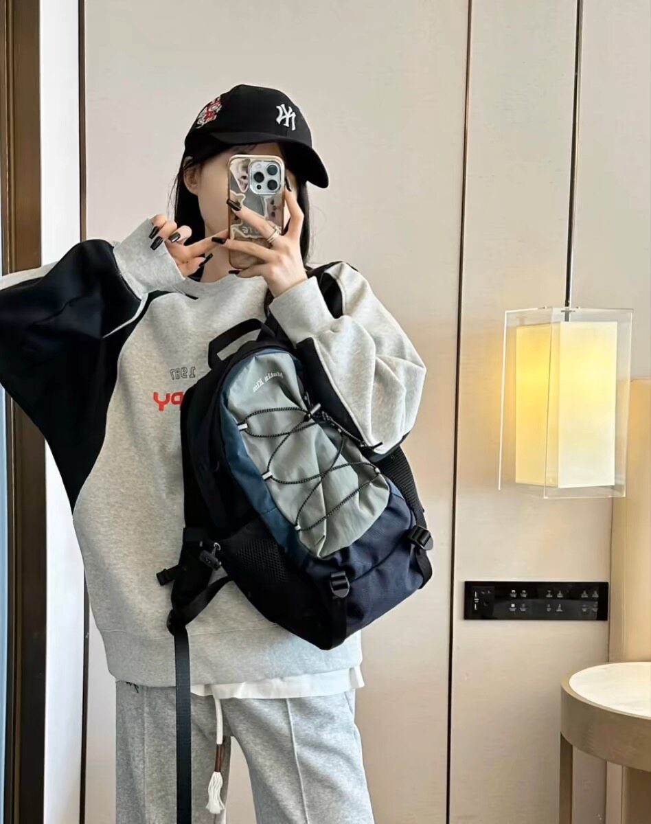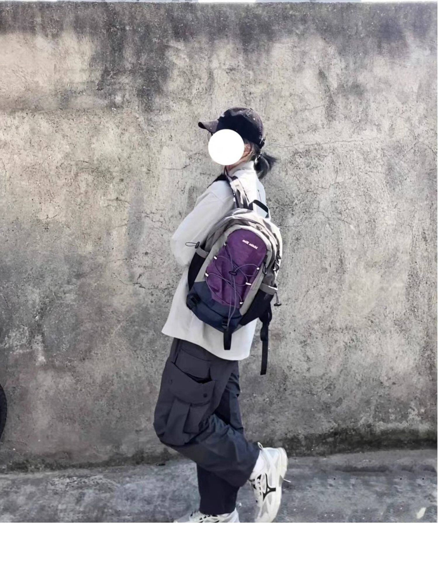 自製韓國vintage復古拼色運動雙肩包小衆抽繩休閒古著後後背包