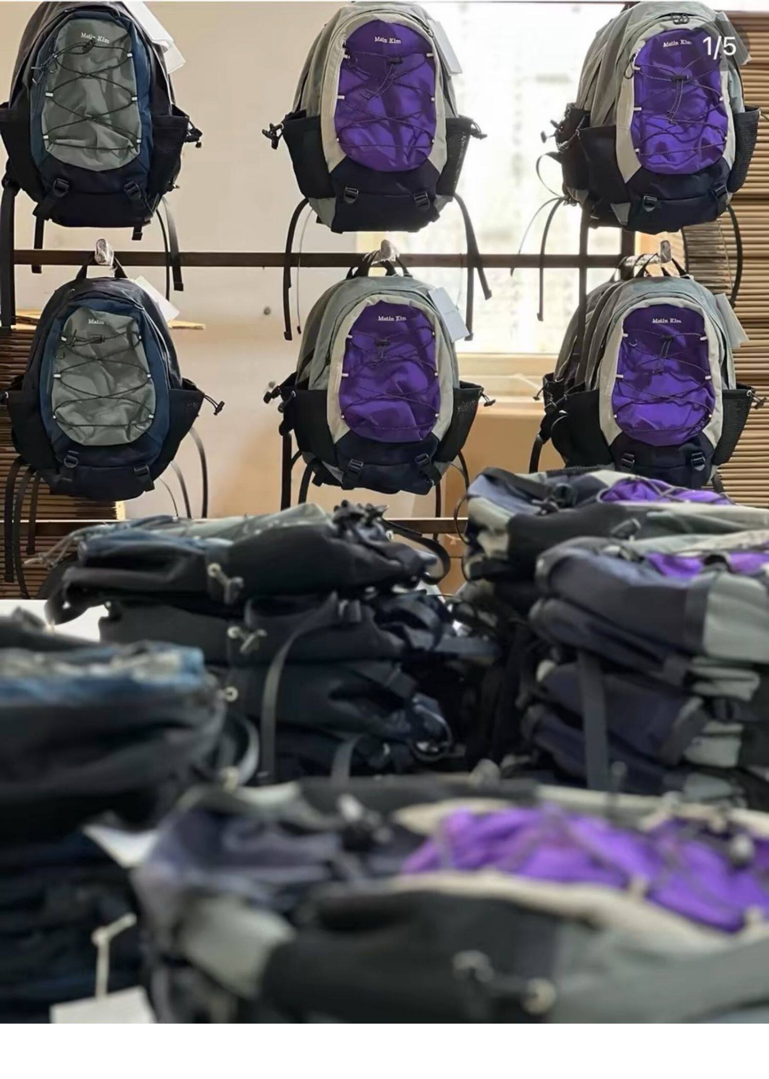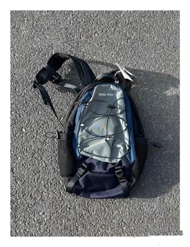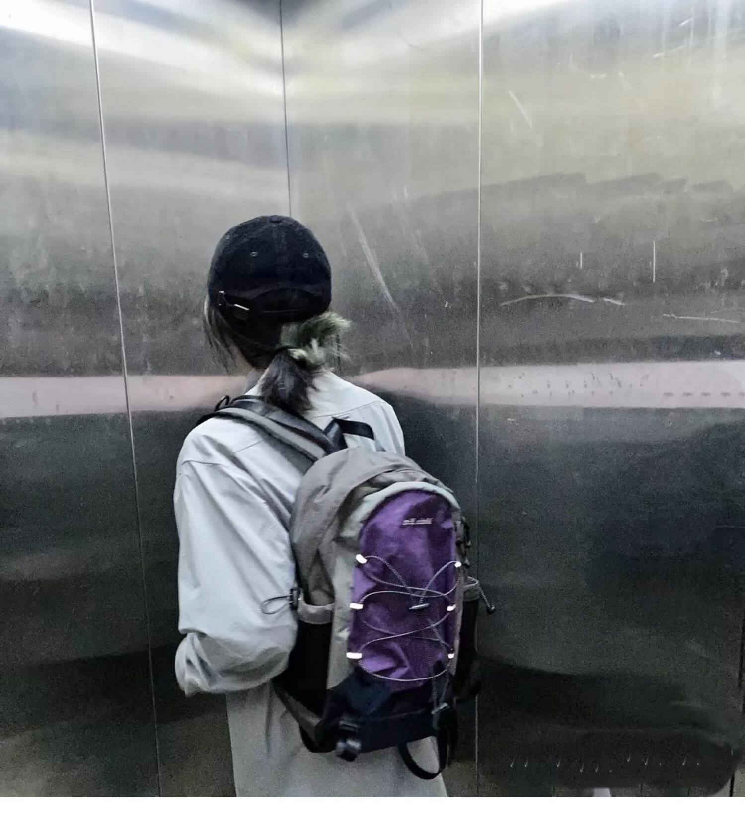 自製韓國vintage復古拼色運動雙肩包小衆抽繩休閒古著後後背包