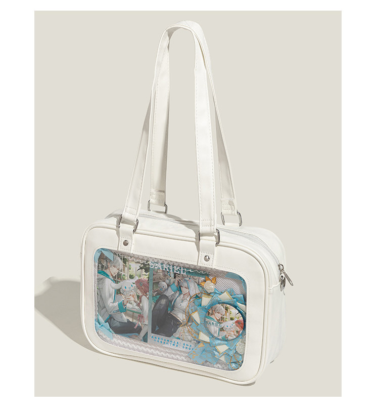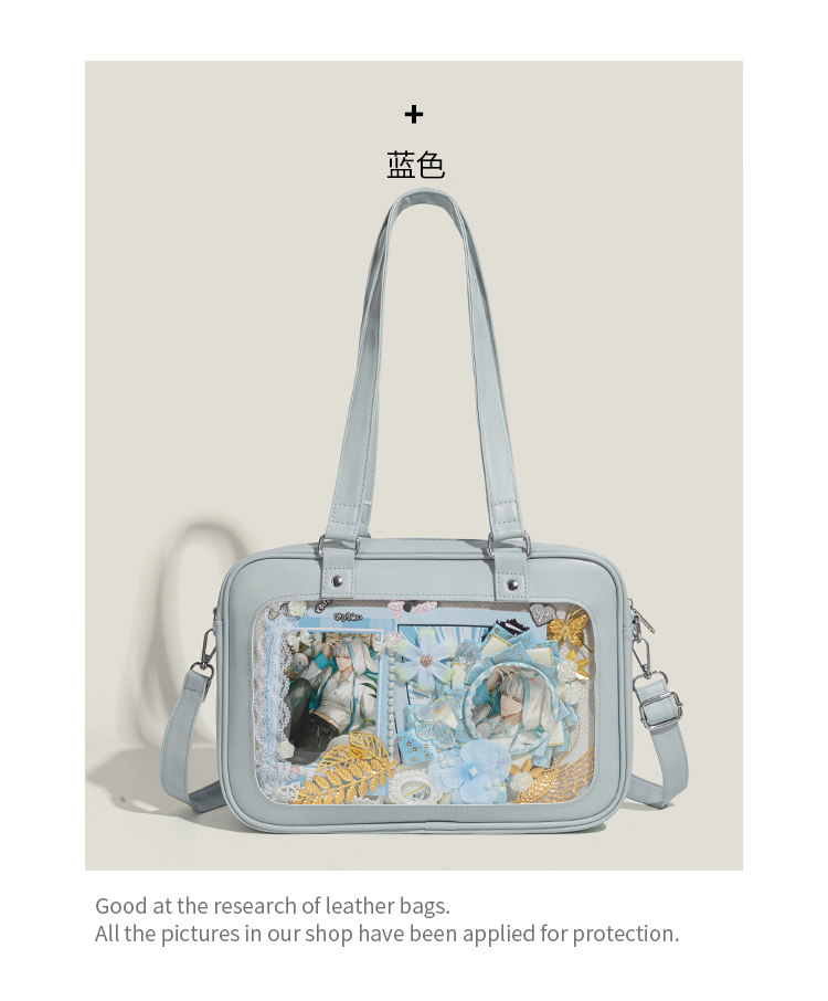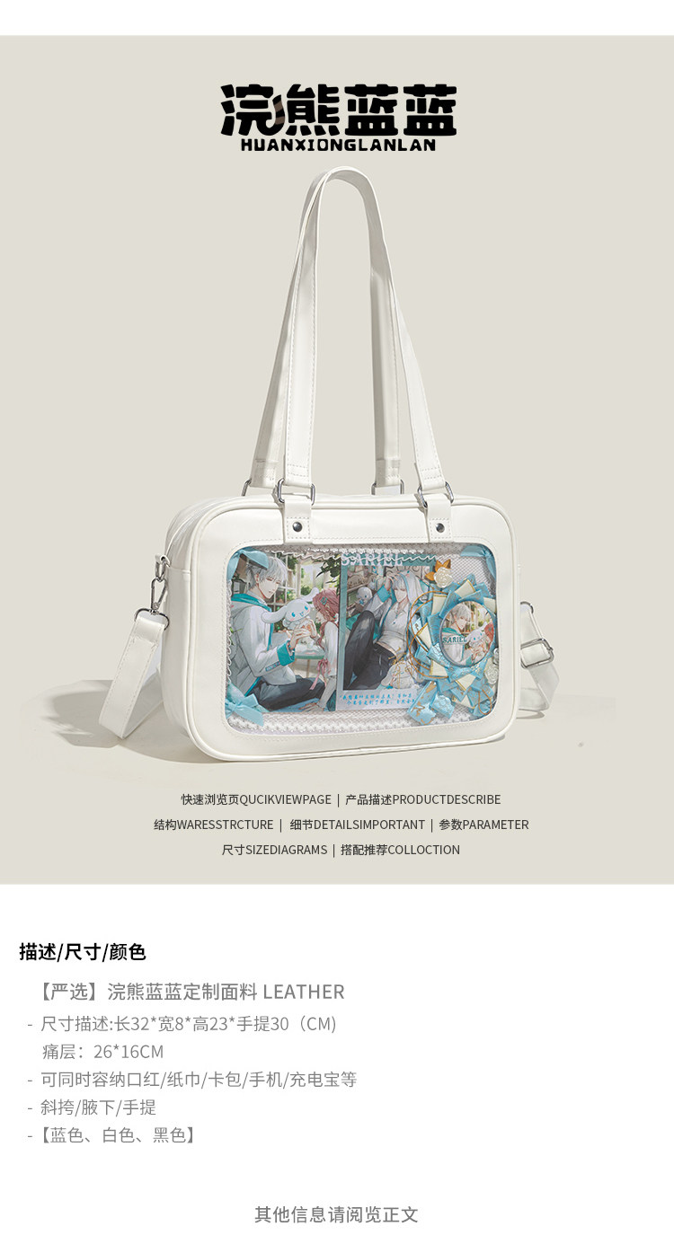 浣熊藍藍原創日系痛包女2026新款透明吧唧穀子漫展上課單肩斜後後背包