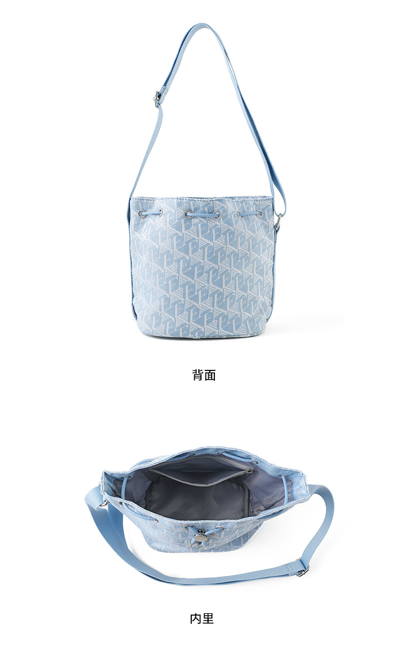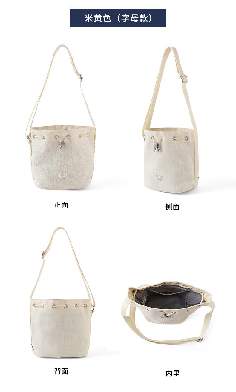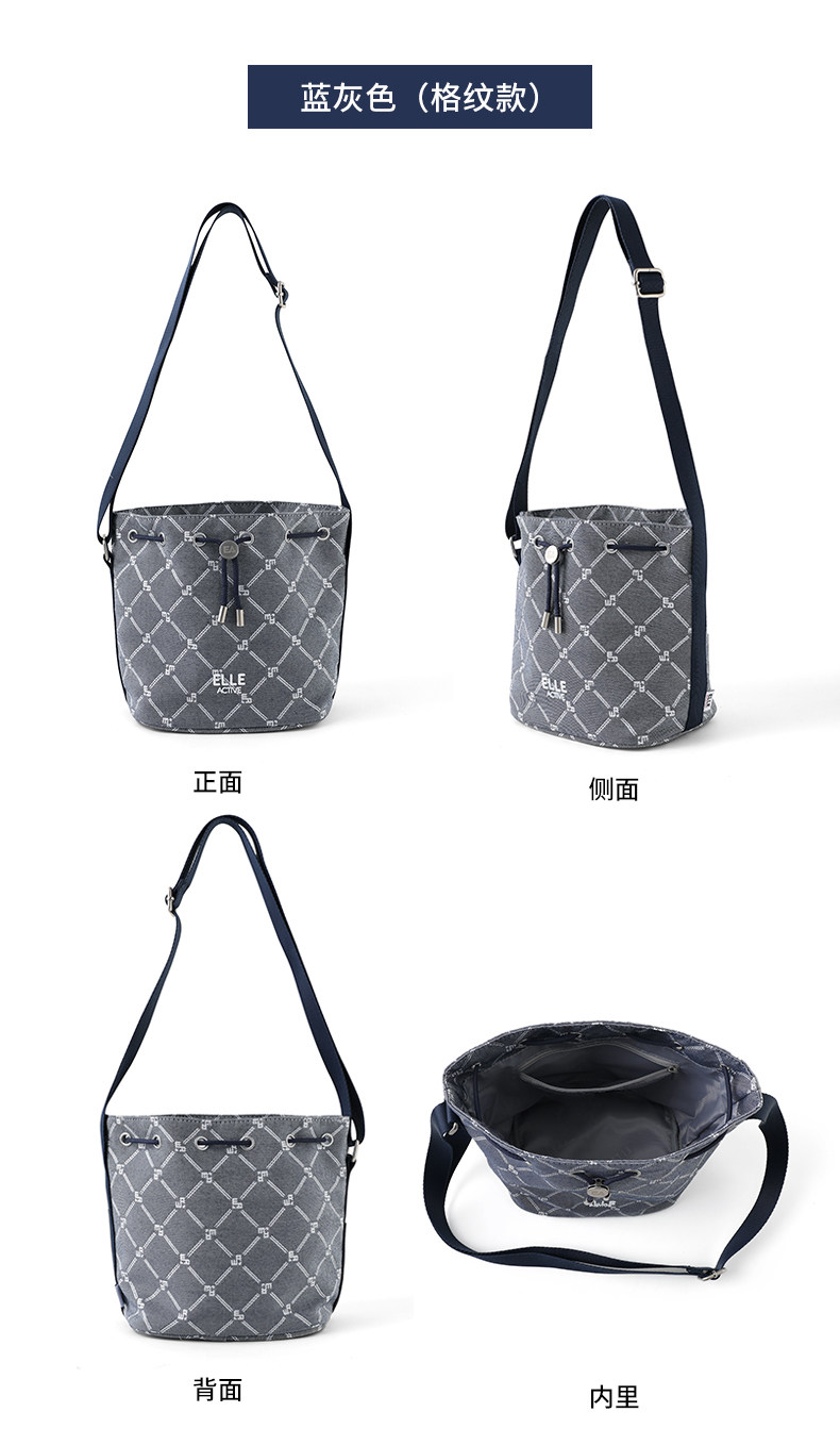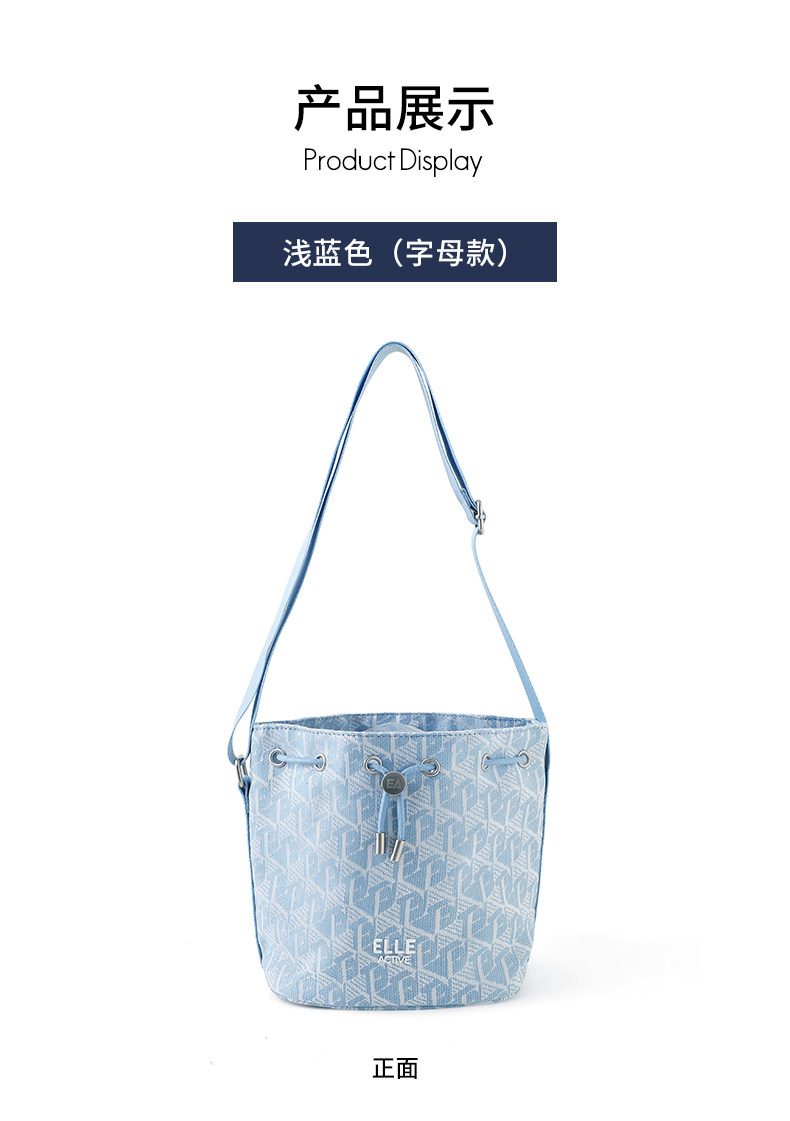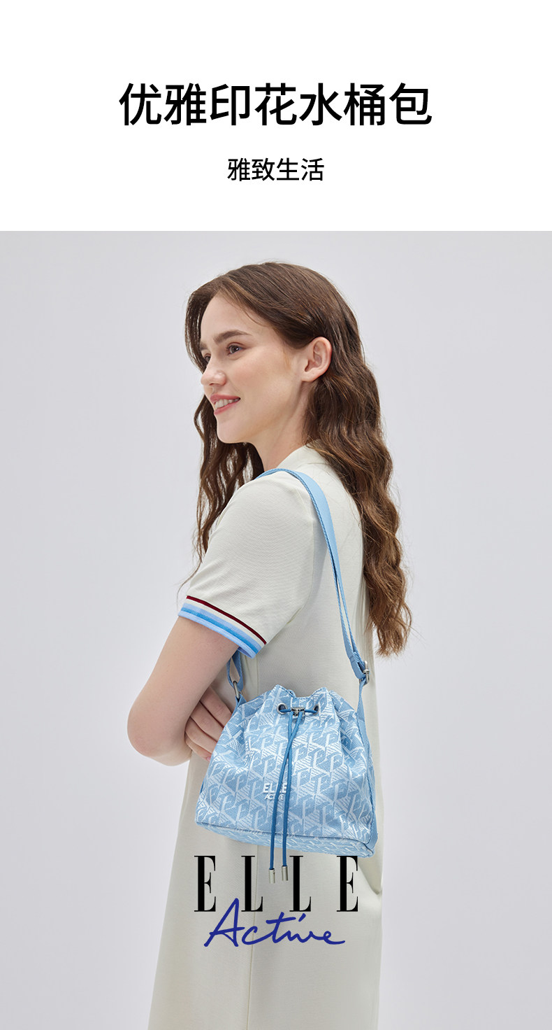 ELLE Active高級感水桶包氣質女包時尚印花單肩包藍色斜後後背包百搭