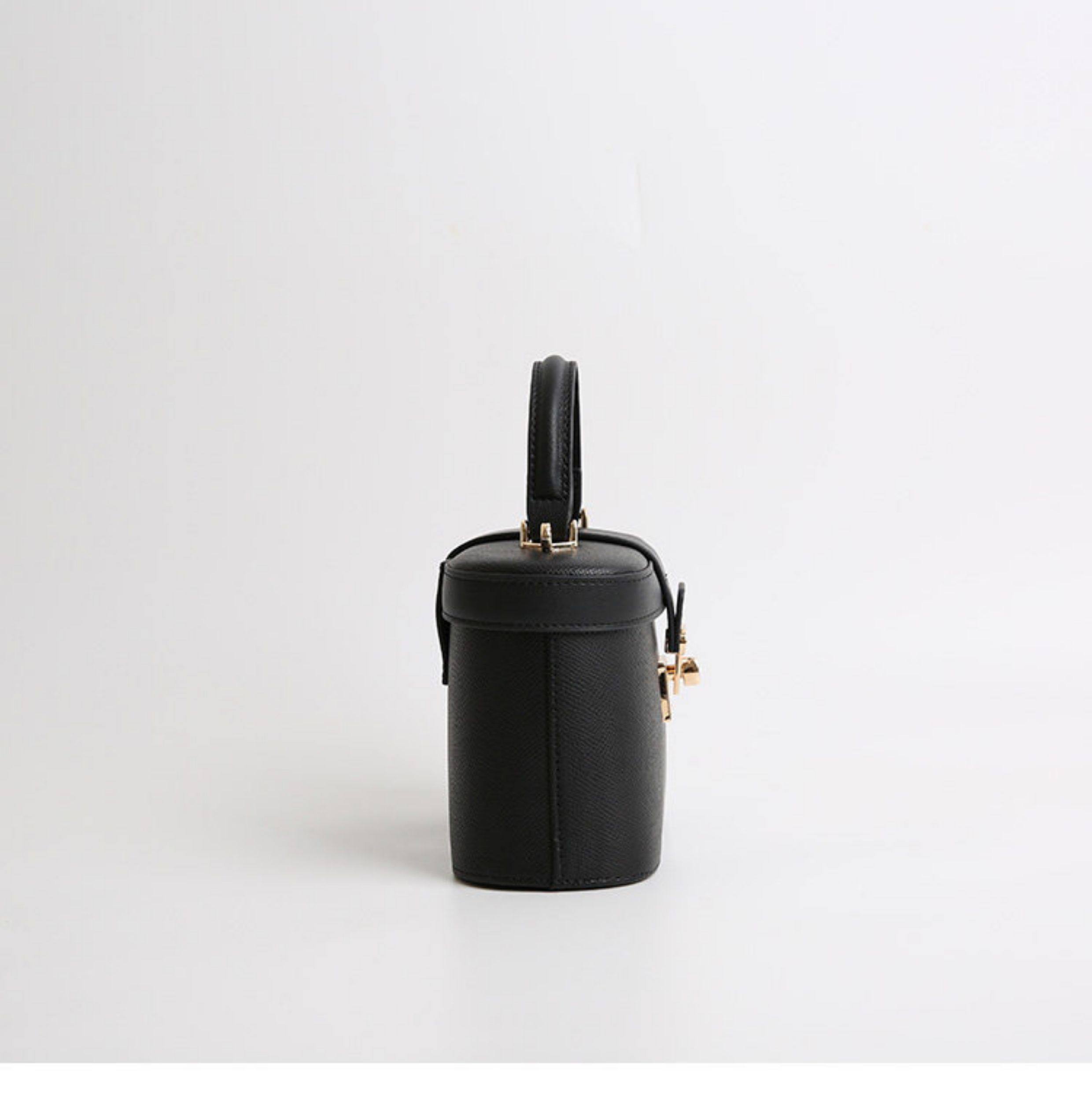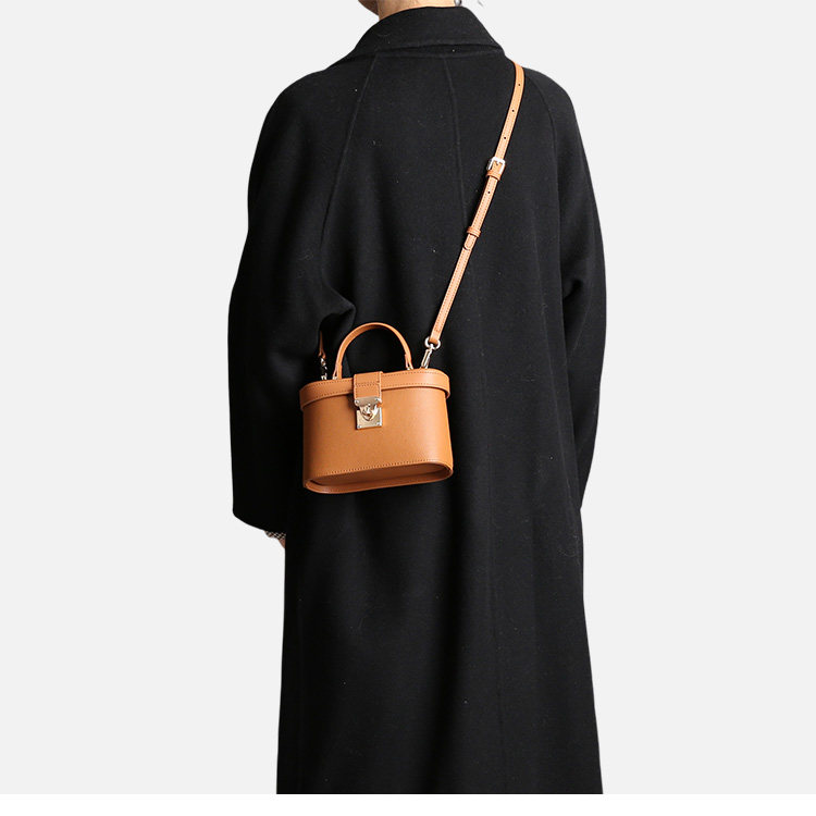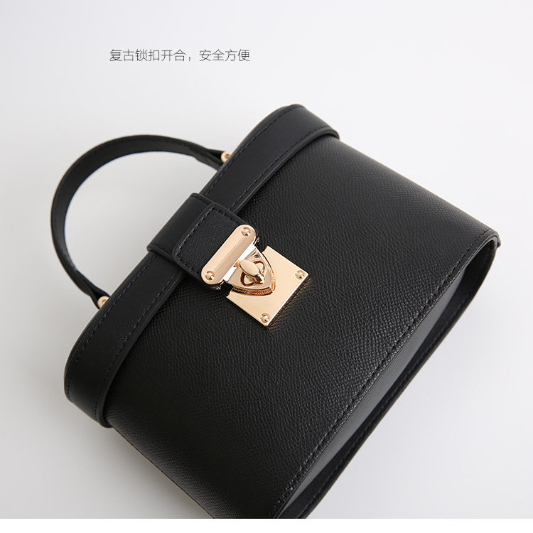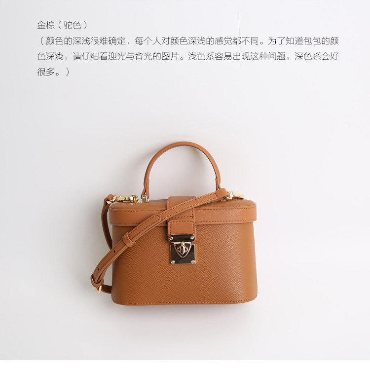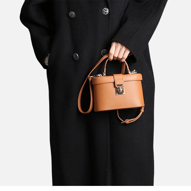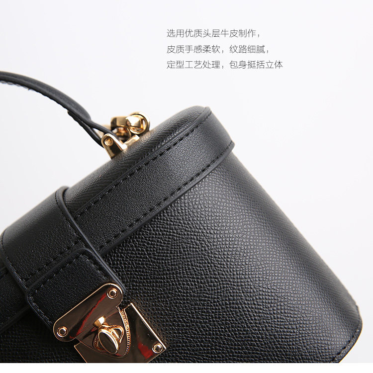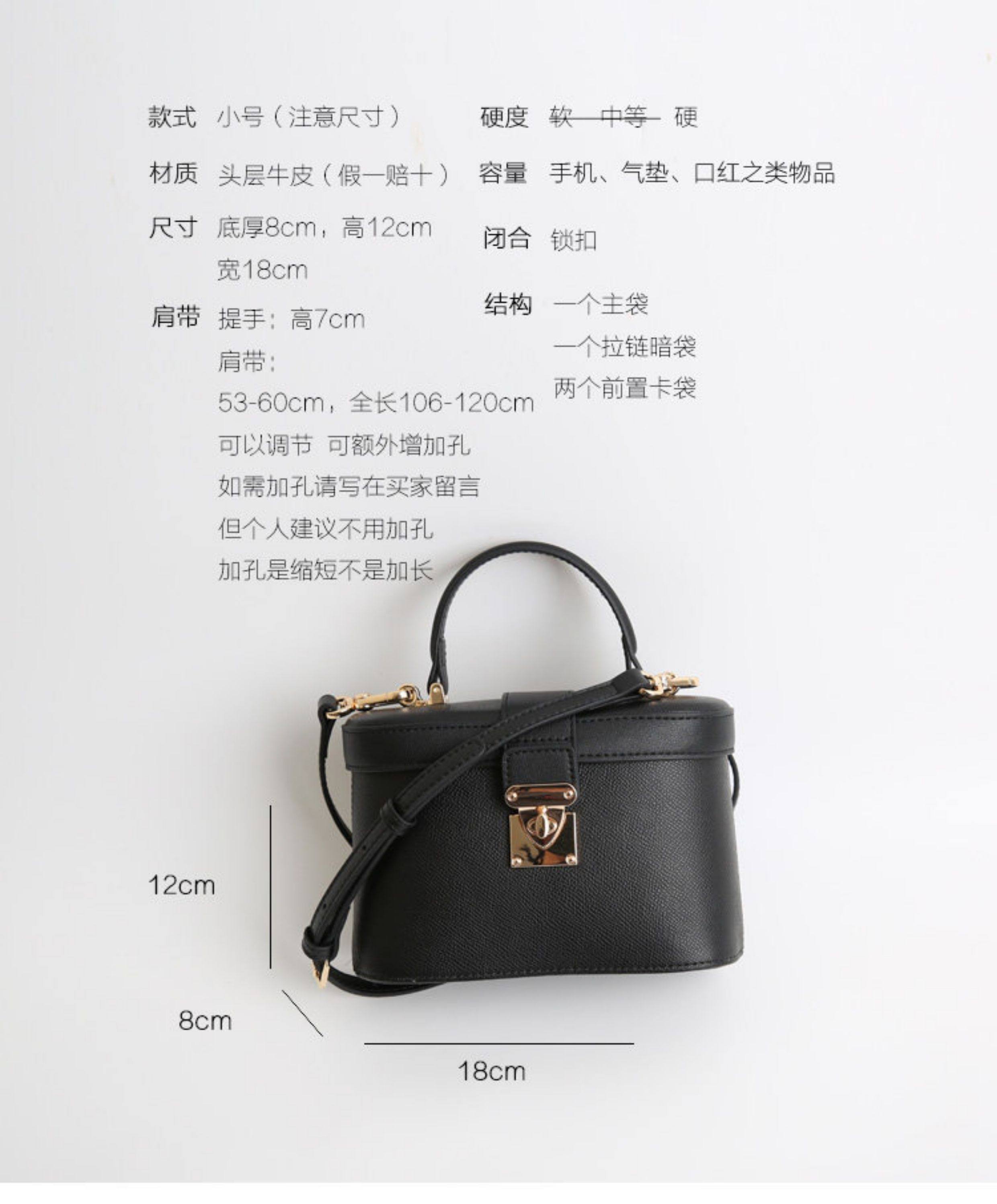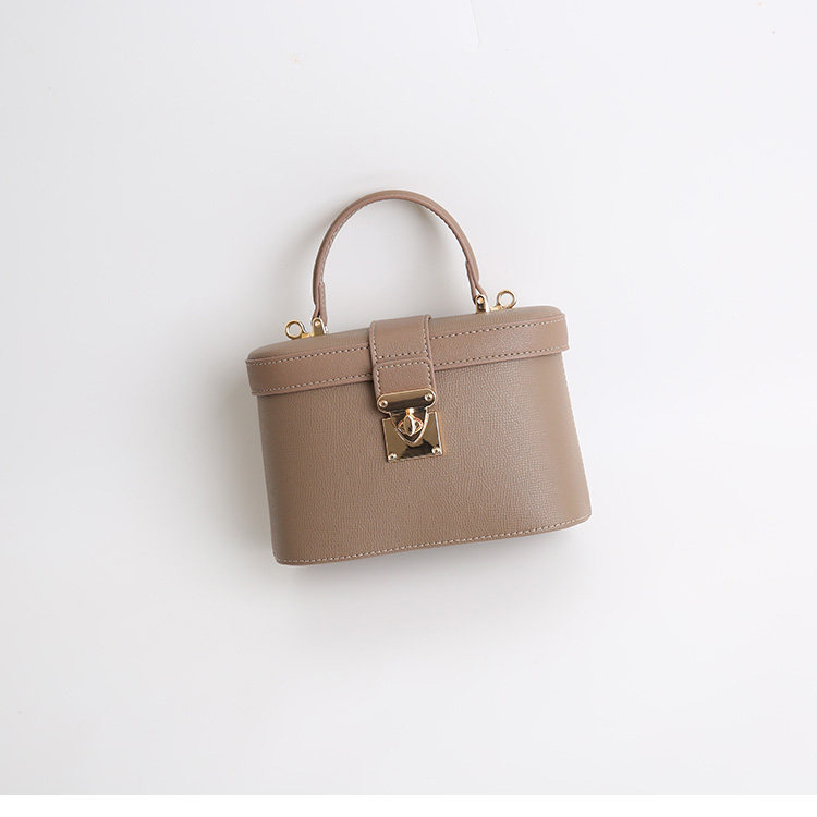 小號頭層牛皮女式定型盒子包手提斜背兩用鎖釦簡約時尚水桶真皮包