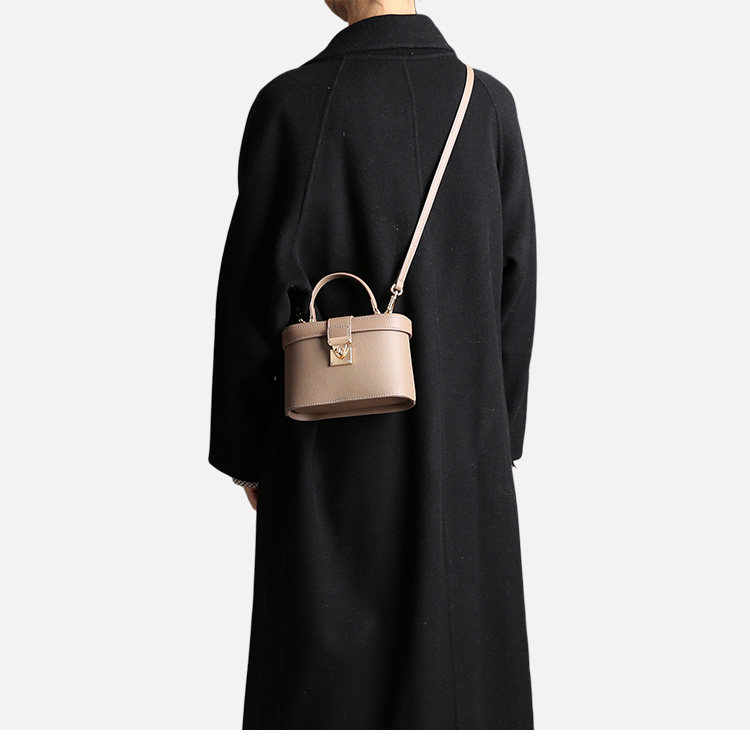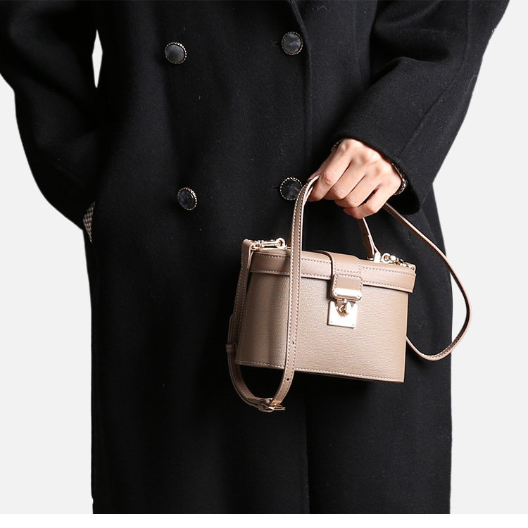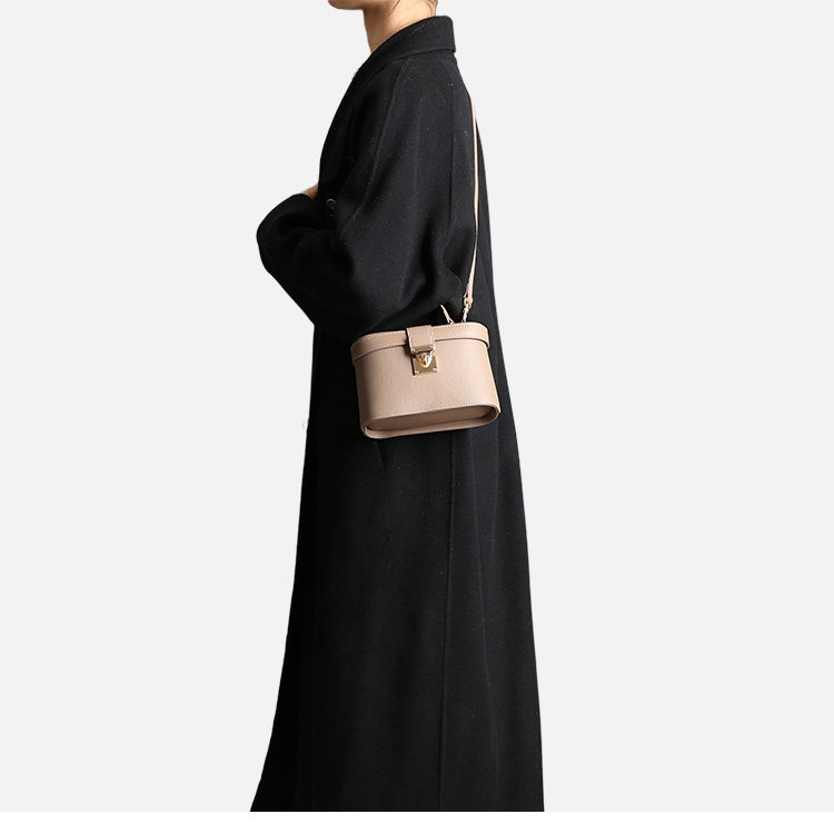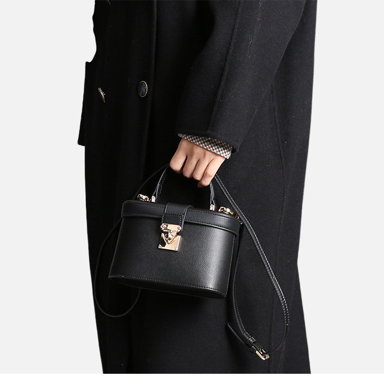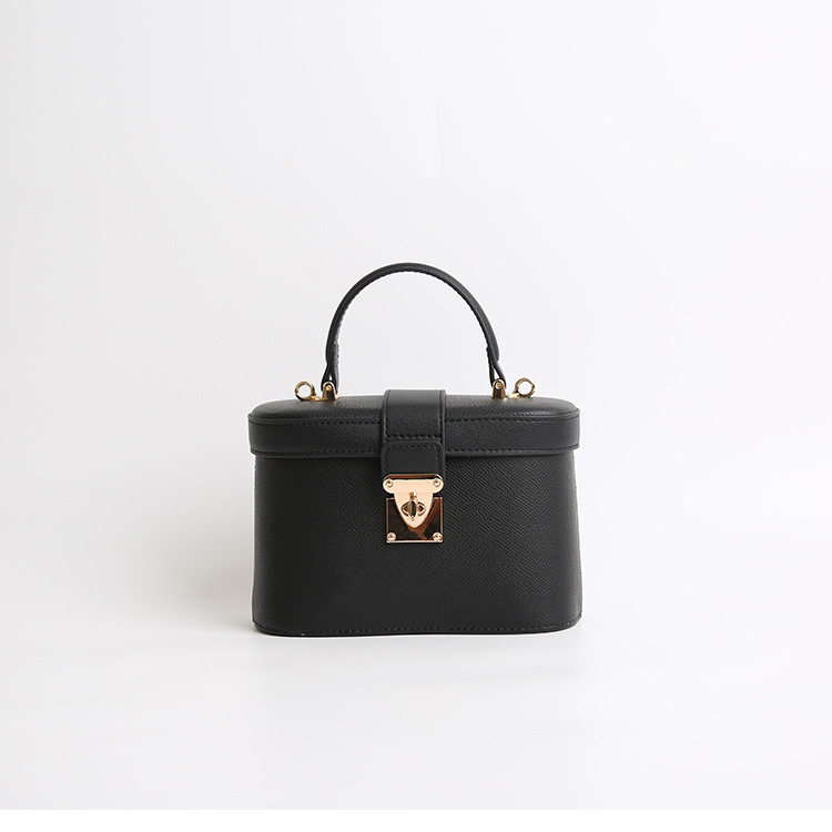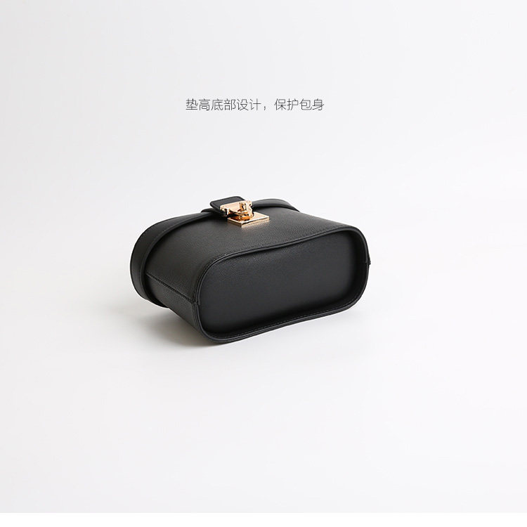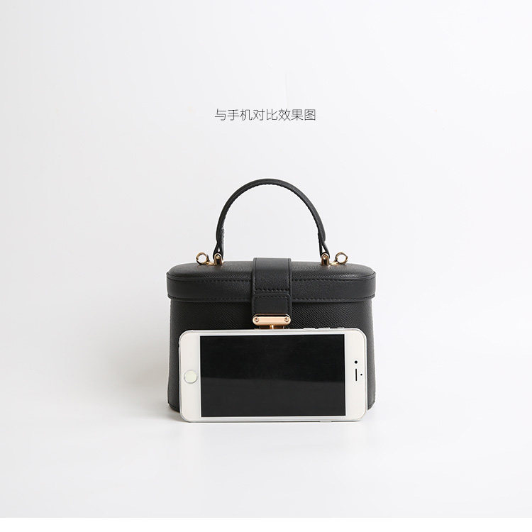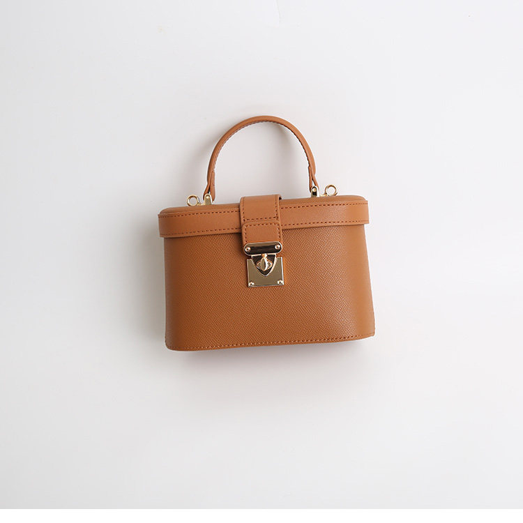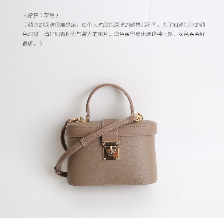 小號頭層牛皮女式定型盒子包手提斜背兩用鎖釦簡約時尚水桶真皮包
