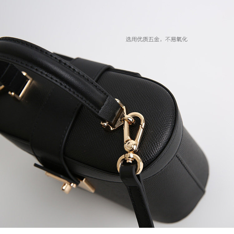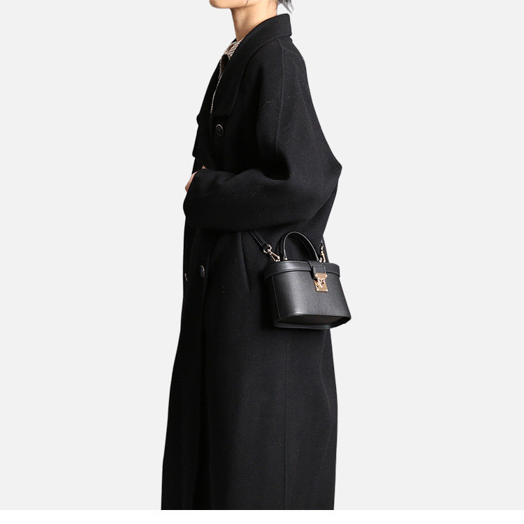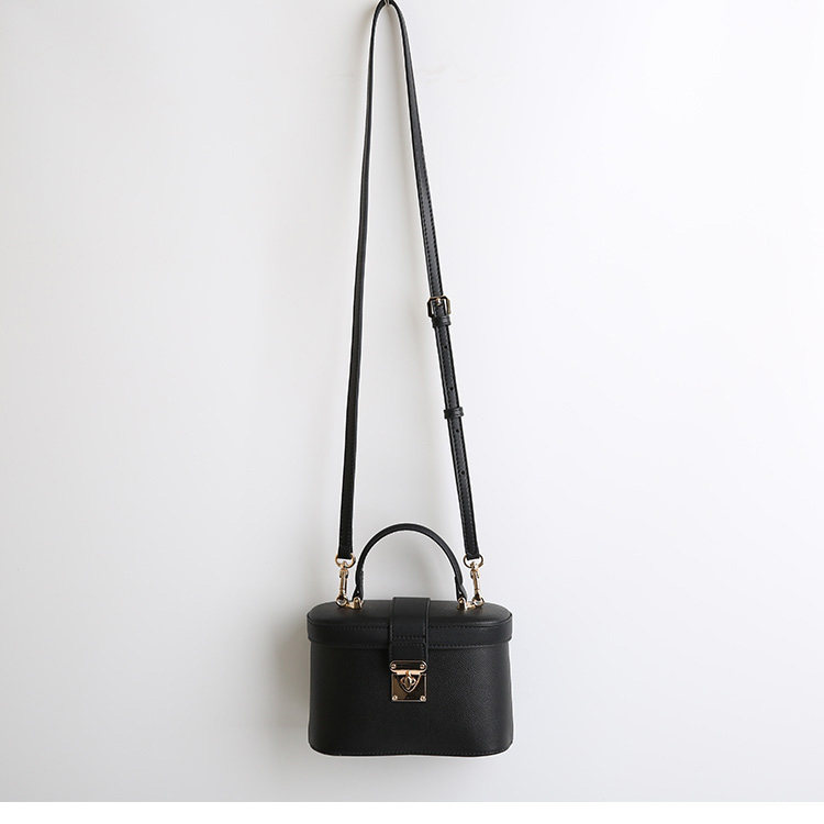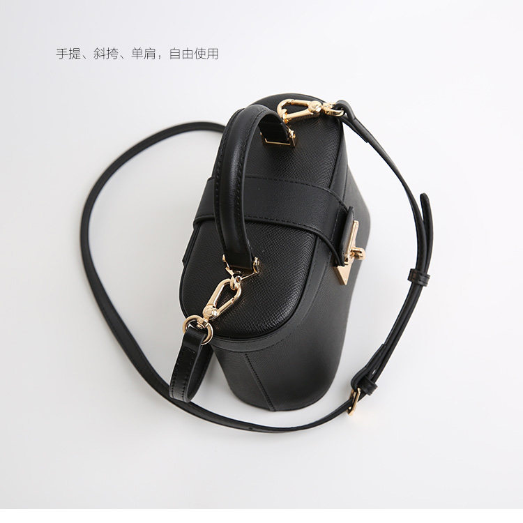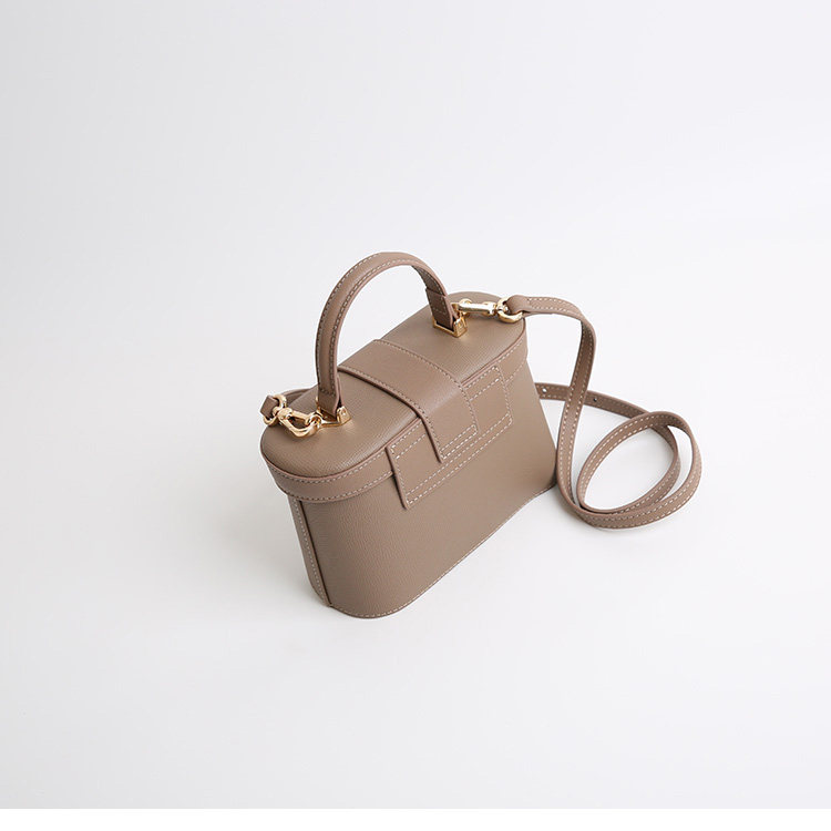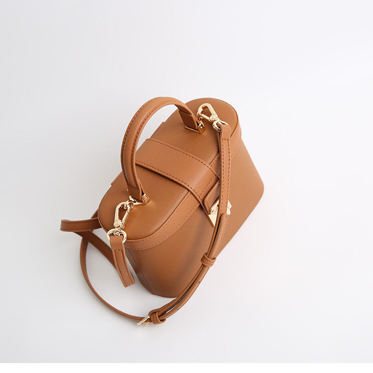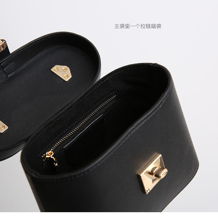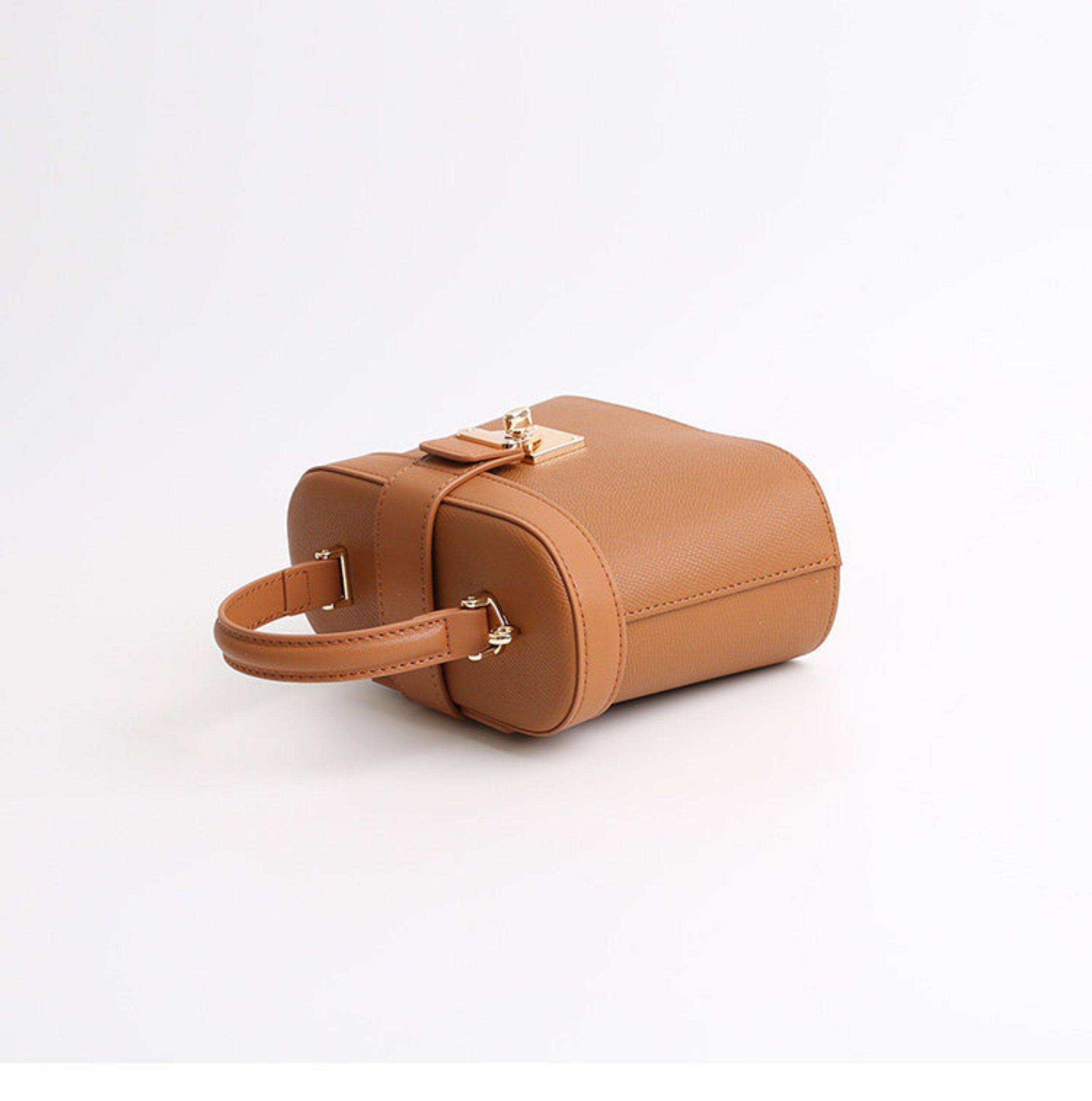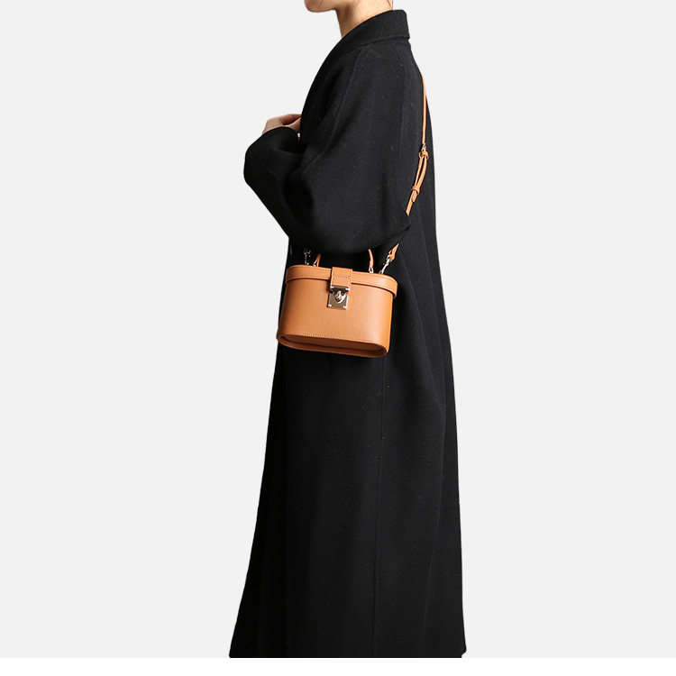 小號頭層牛皮女式定型盒子包手提斜背兩用鎖釦簡約時尚水桶真皮包