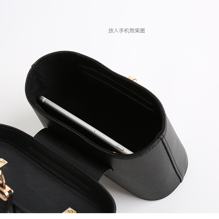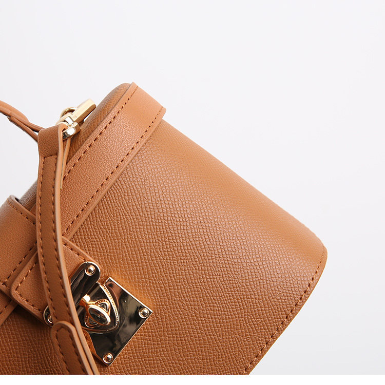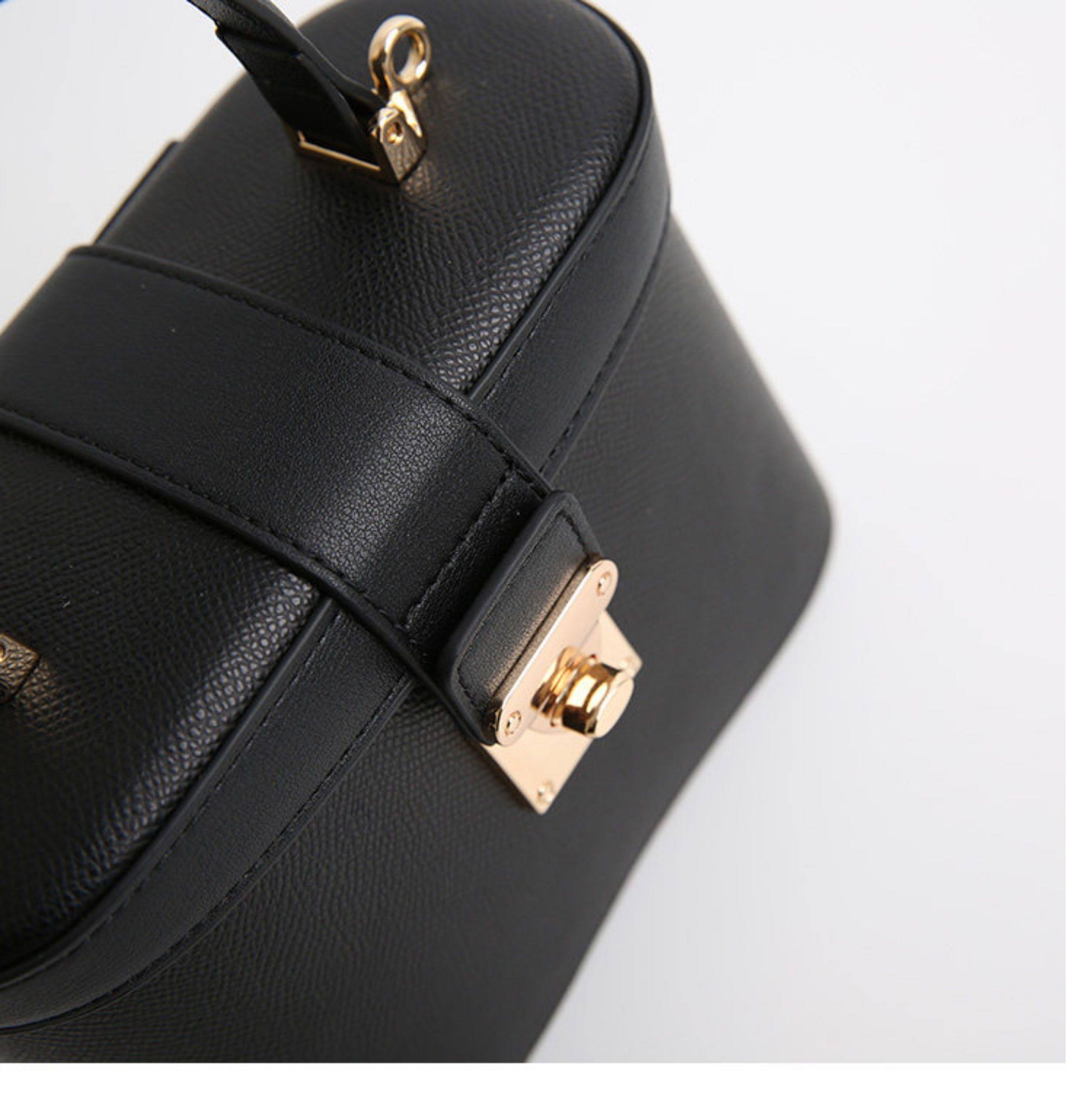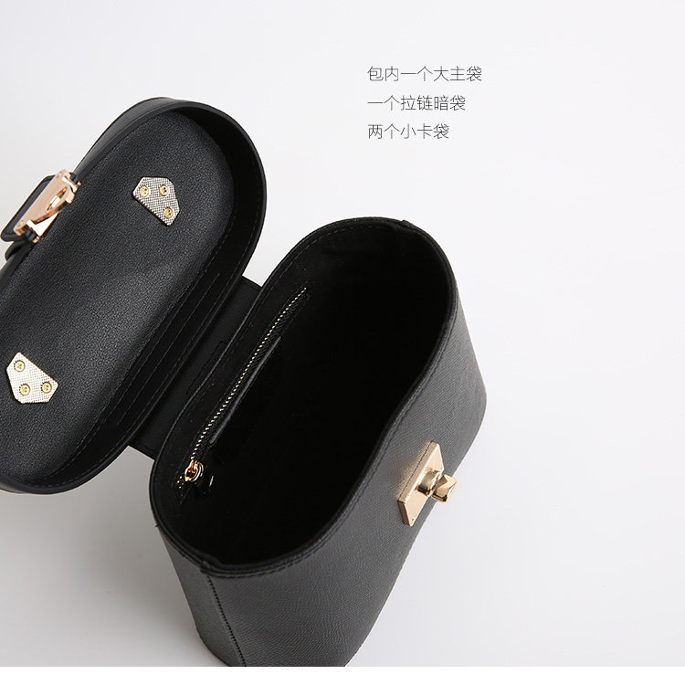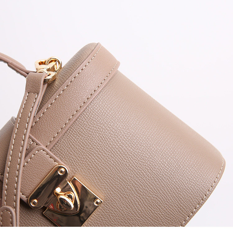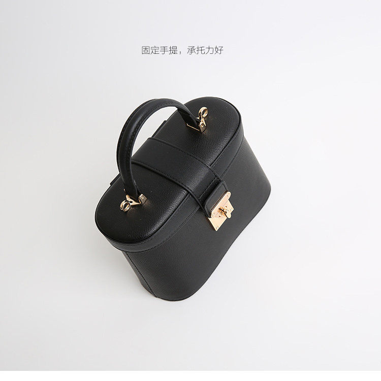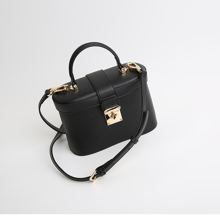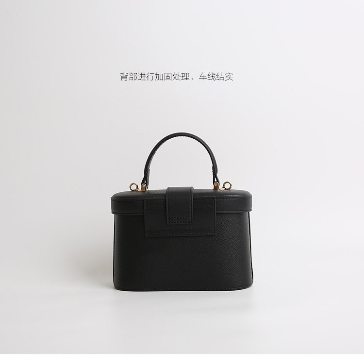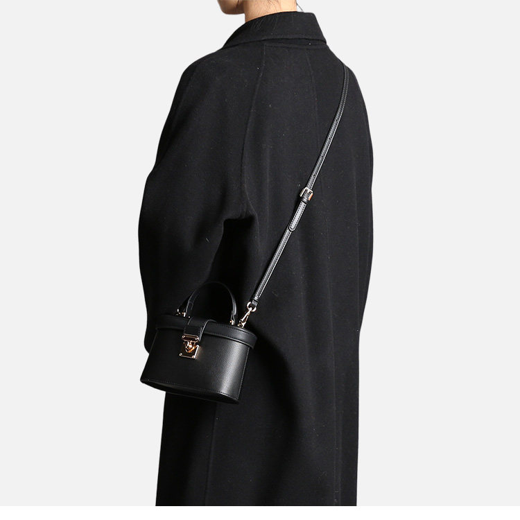 小號頭層牛皮女式定型盒子包手提斜背兩用鎖釦簡約時尚水桶真皮包