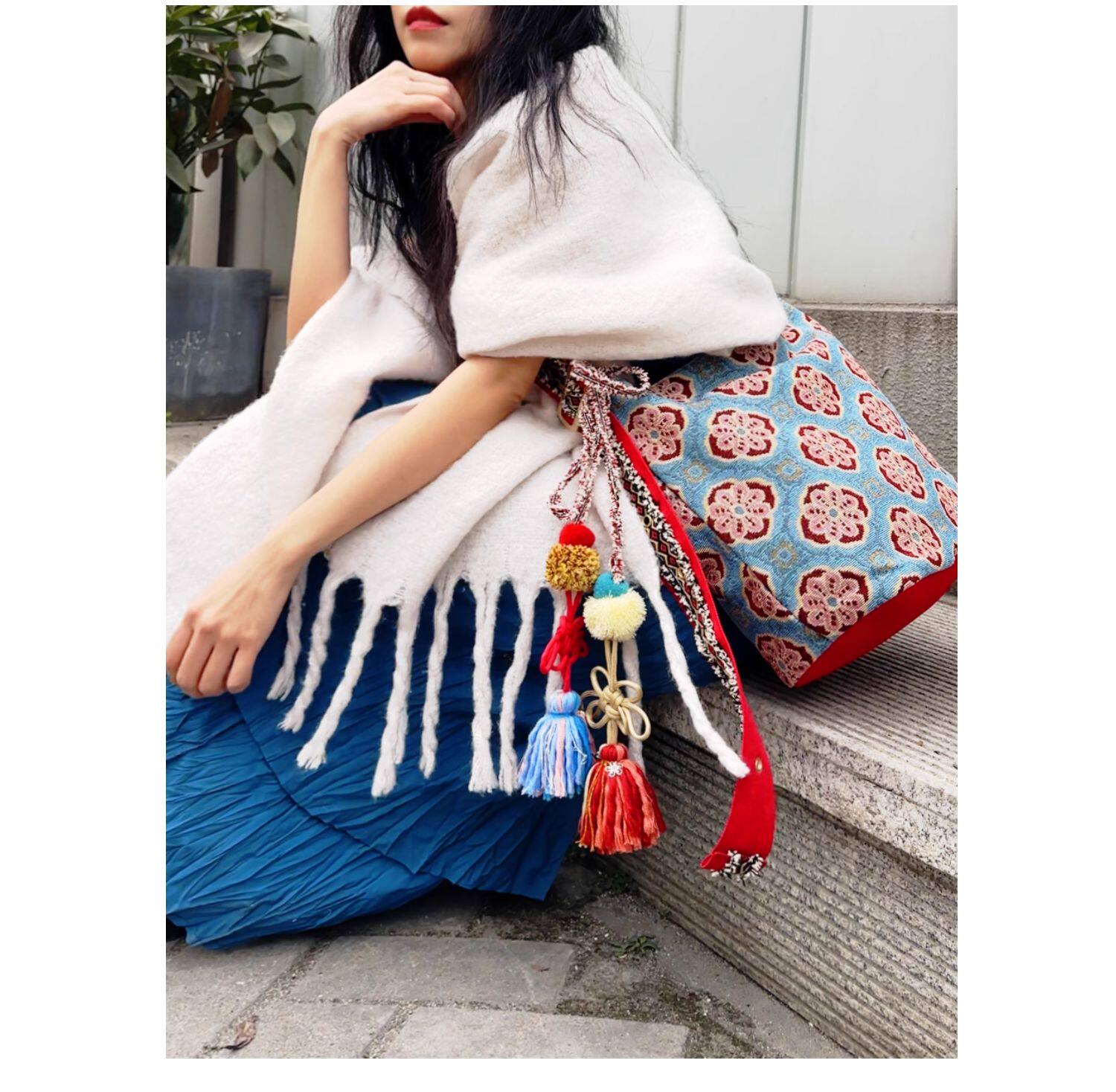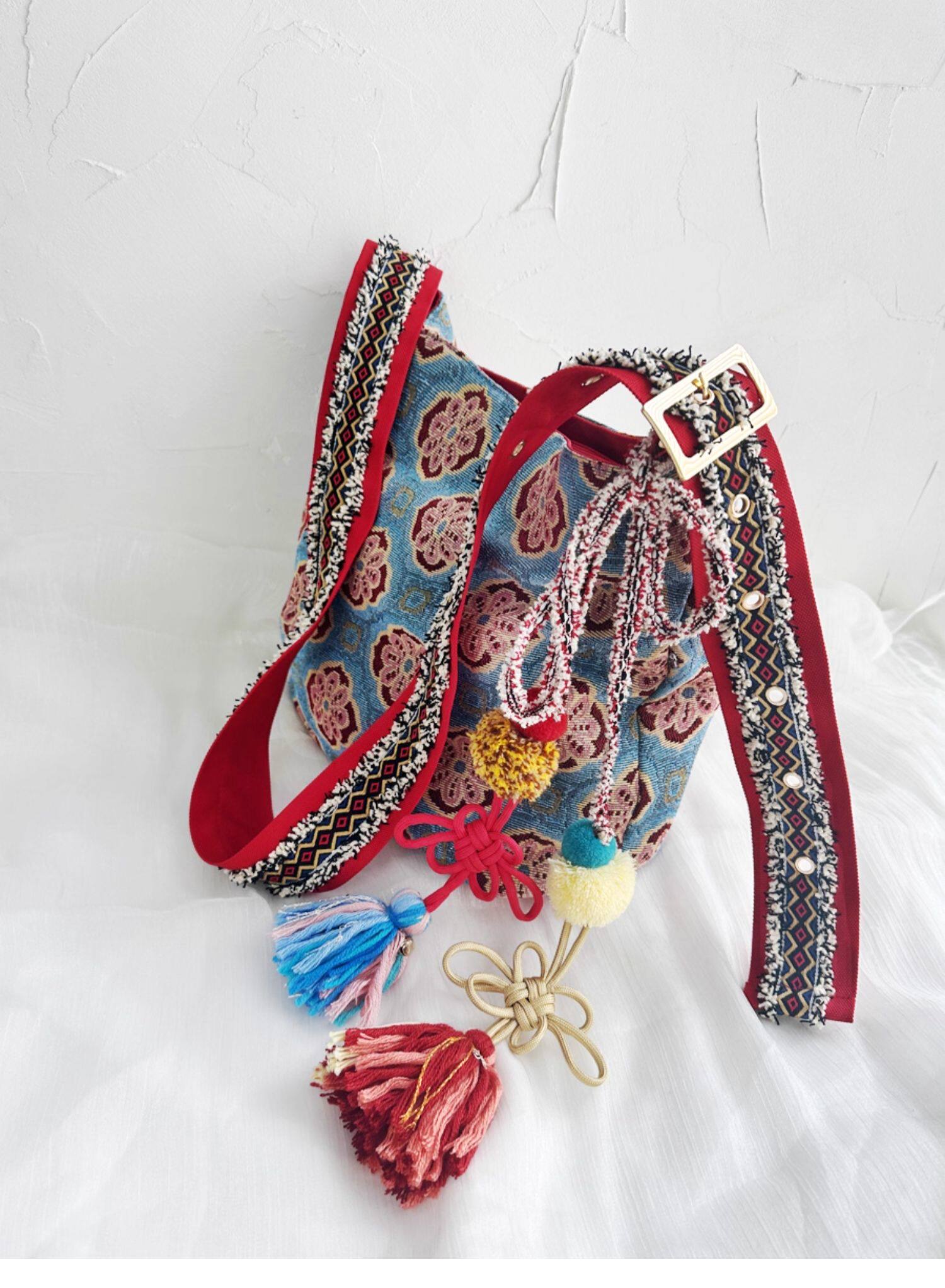 波普先生原創國風漢服復古斜後後背包單肩泰國異域旅行民族風海邊度假