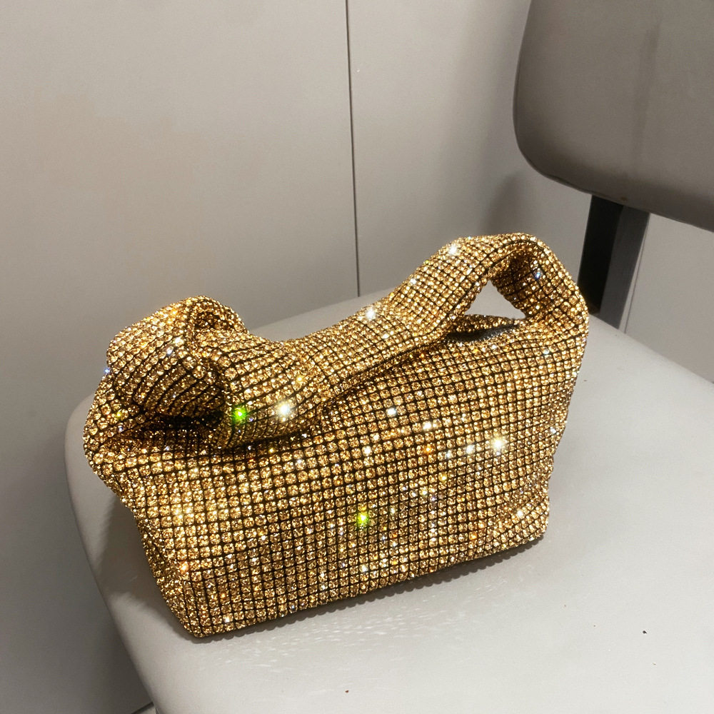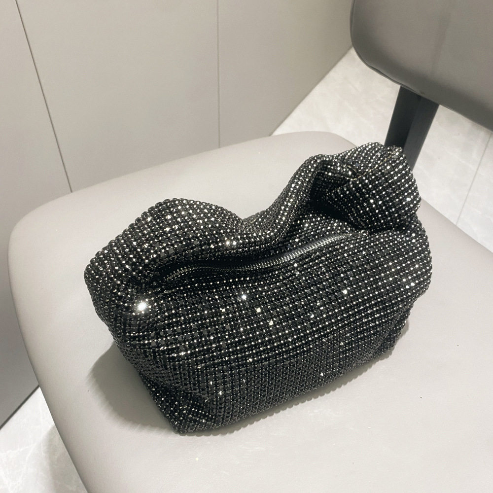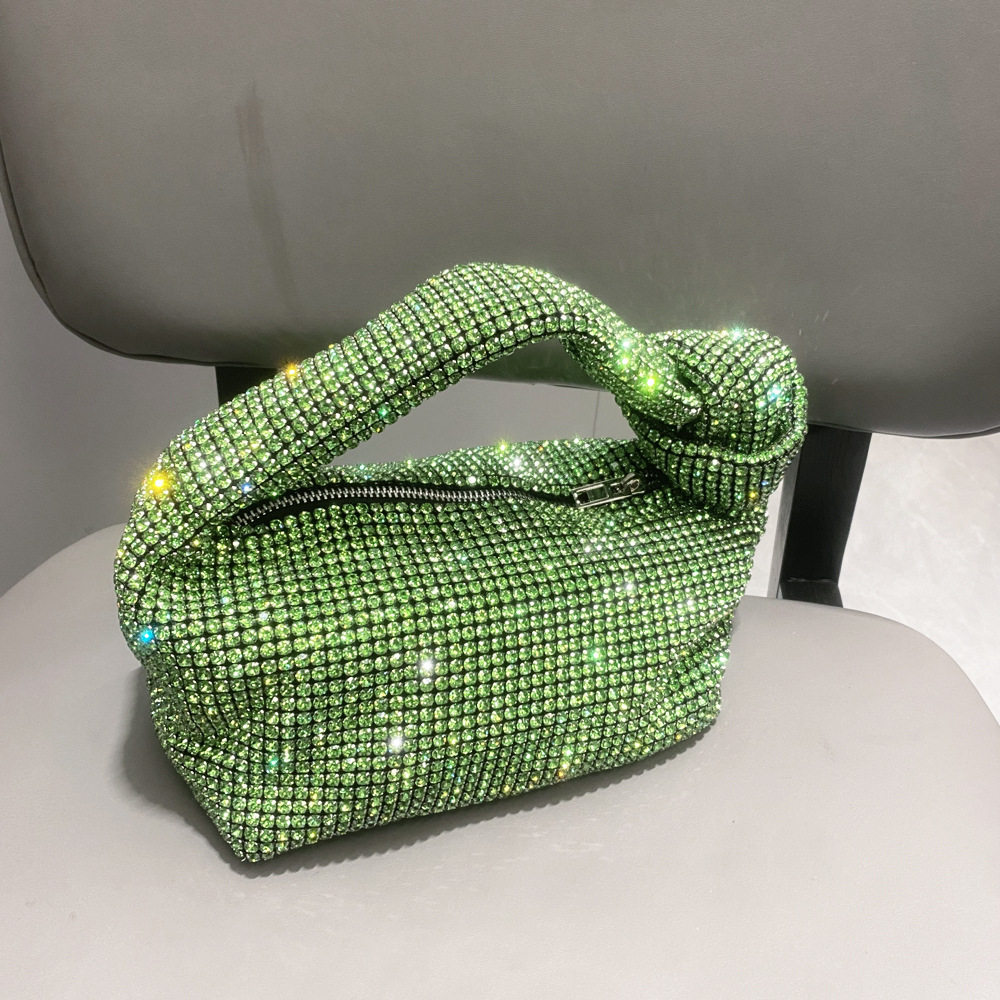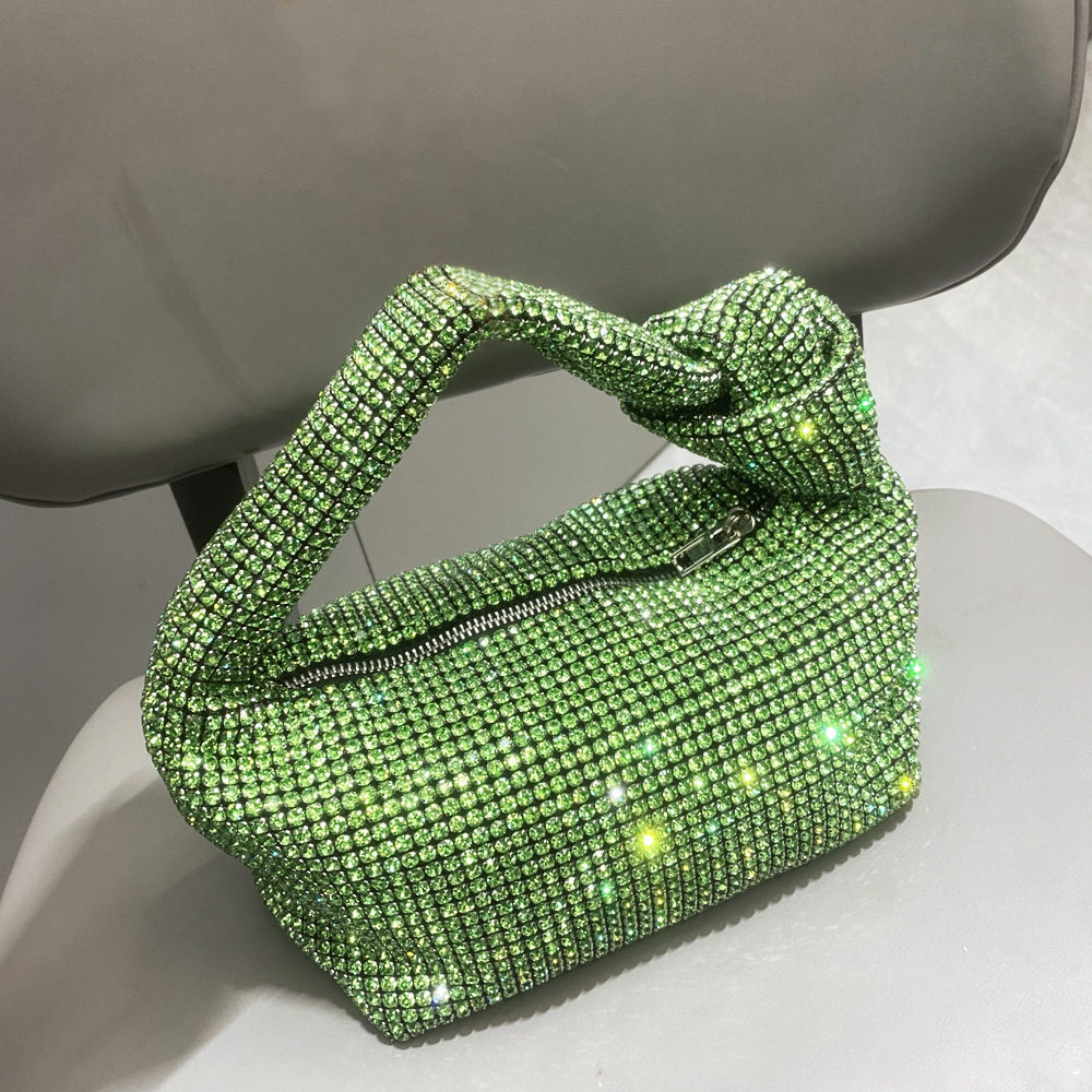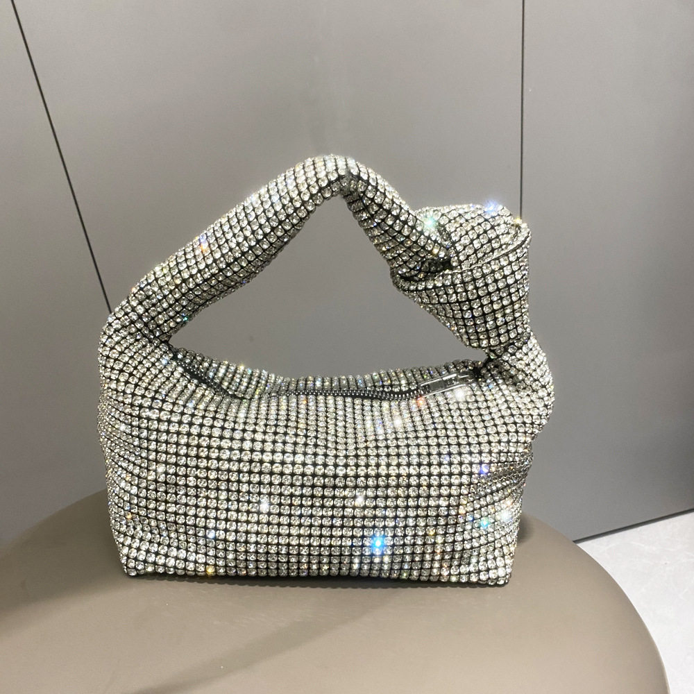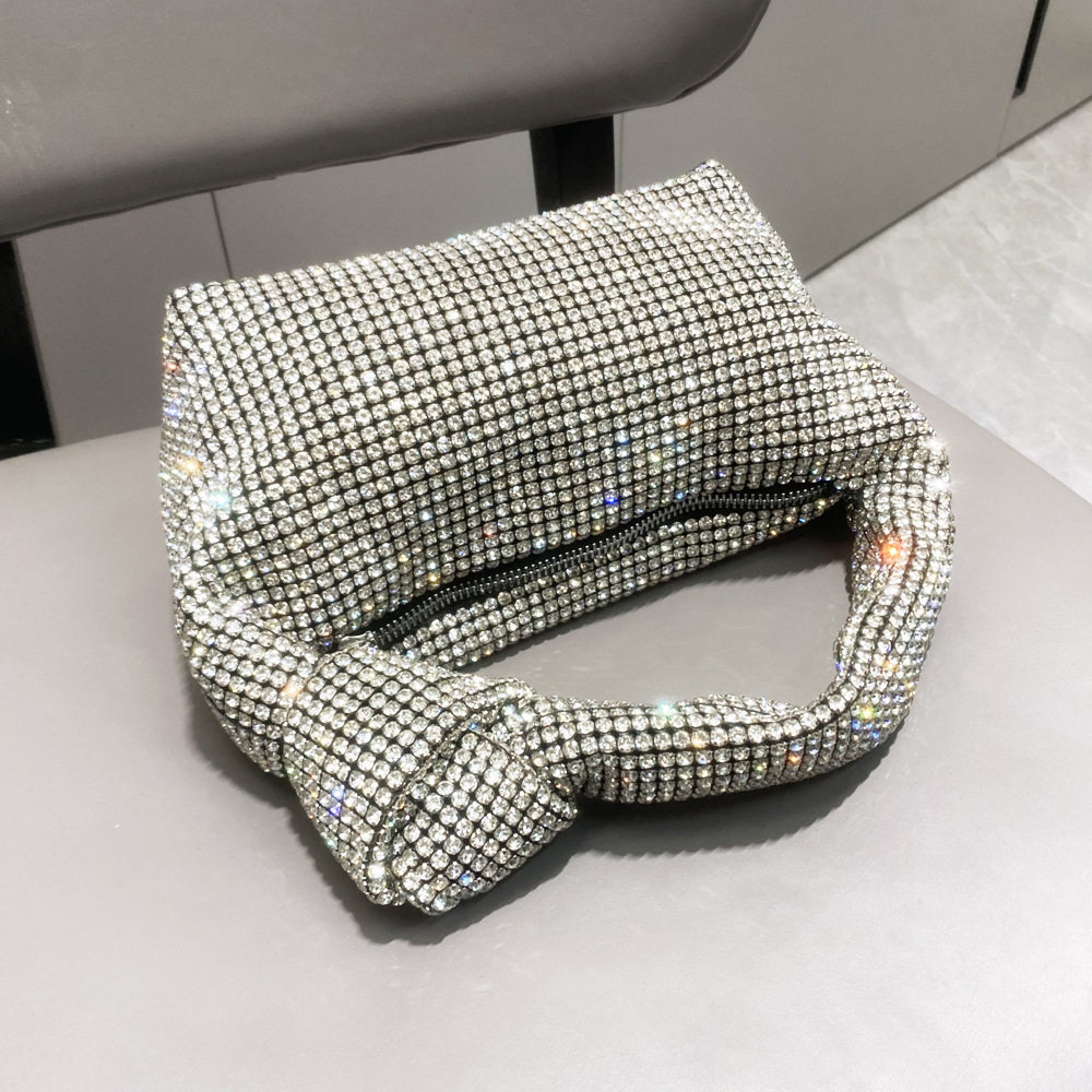 菜籃子水鑽包水桶包包女新款鑲鑽晚宴包手提斜背手拎包銀色粉