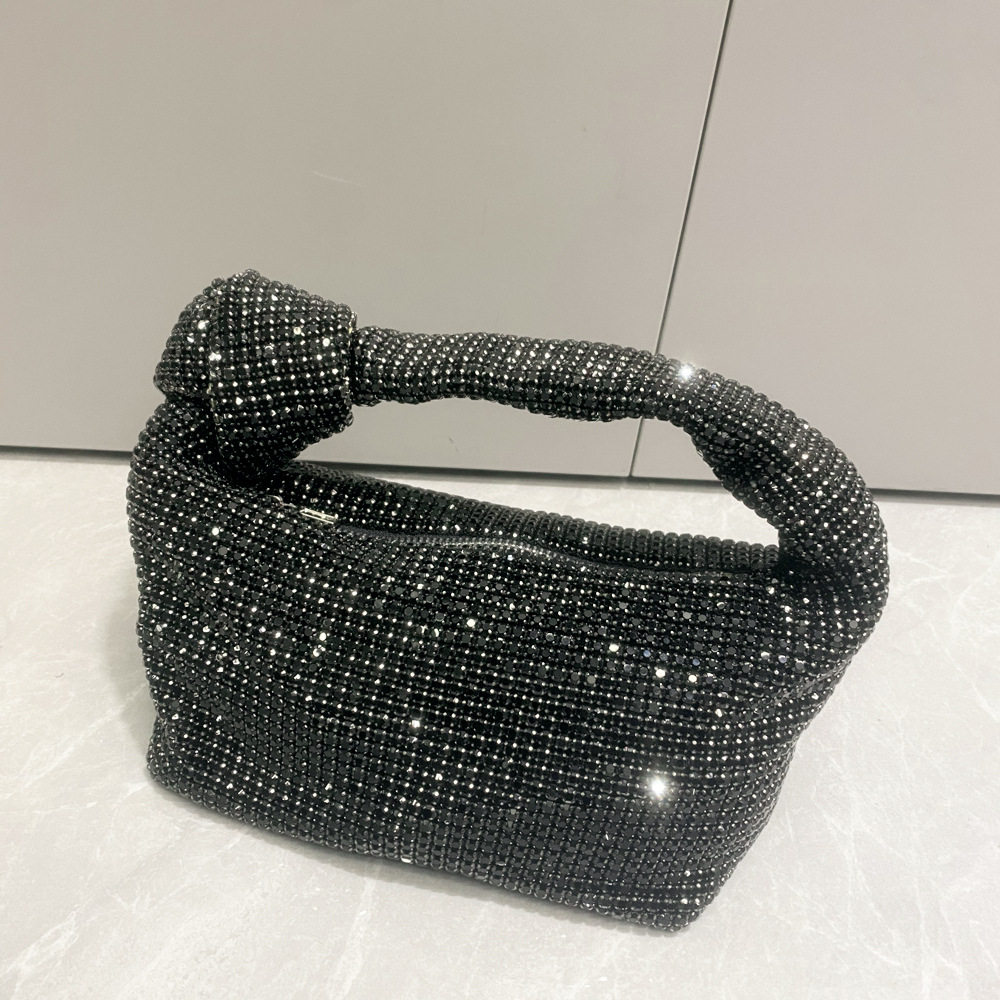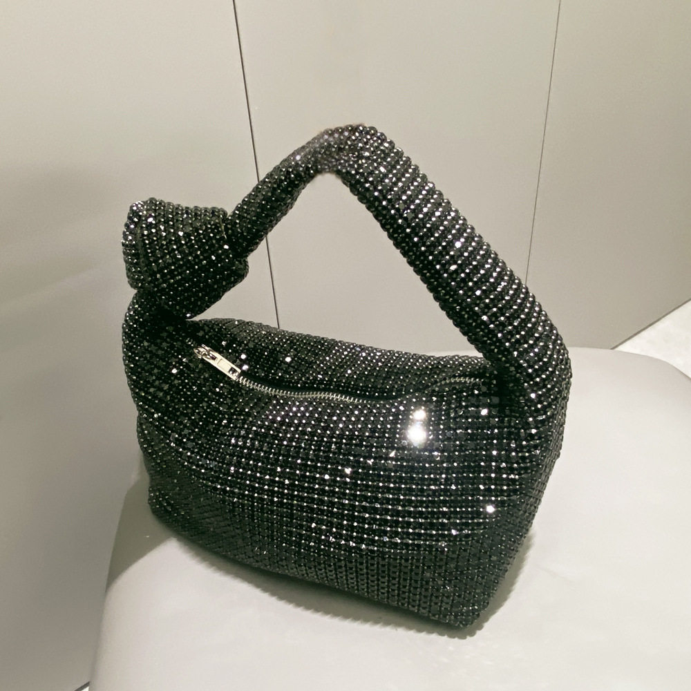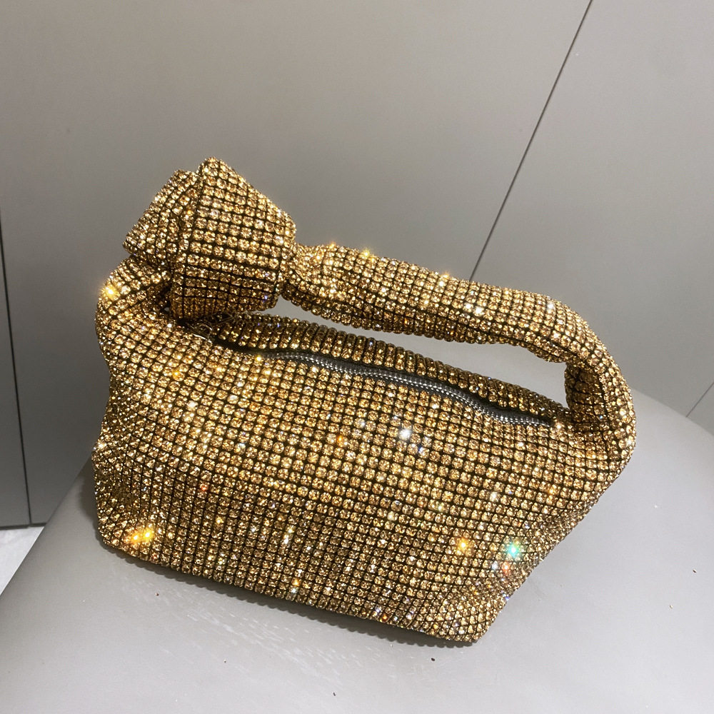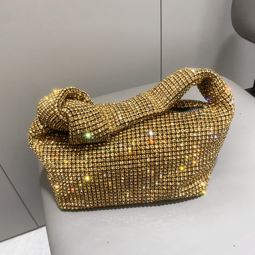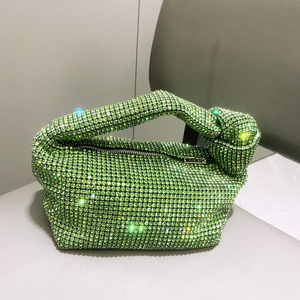 菜籃子水鑽包水桶包包女新款鑲鑽晚宴包手提斜背手拎包銀色粉
