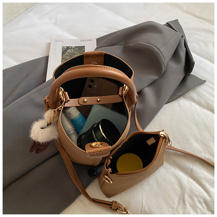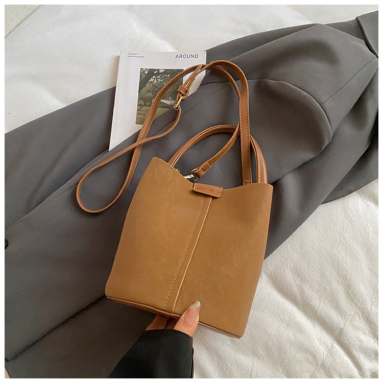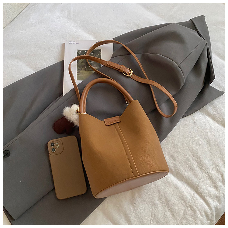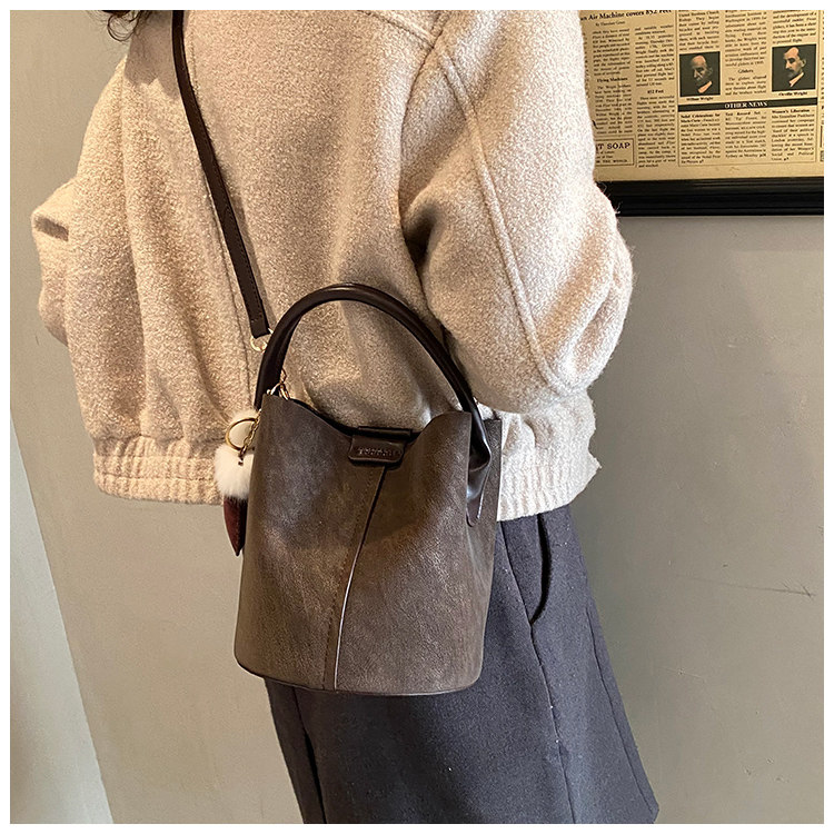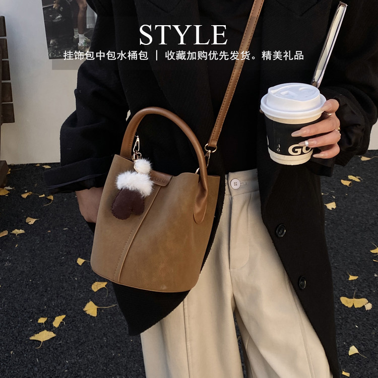 美拉德軟皮小包包女2026新款復古通勤手拎包水桶包春夏質感斜後後背包