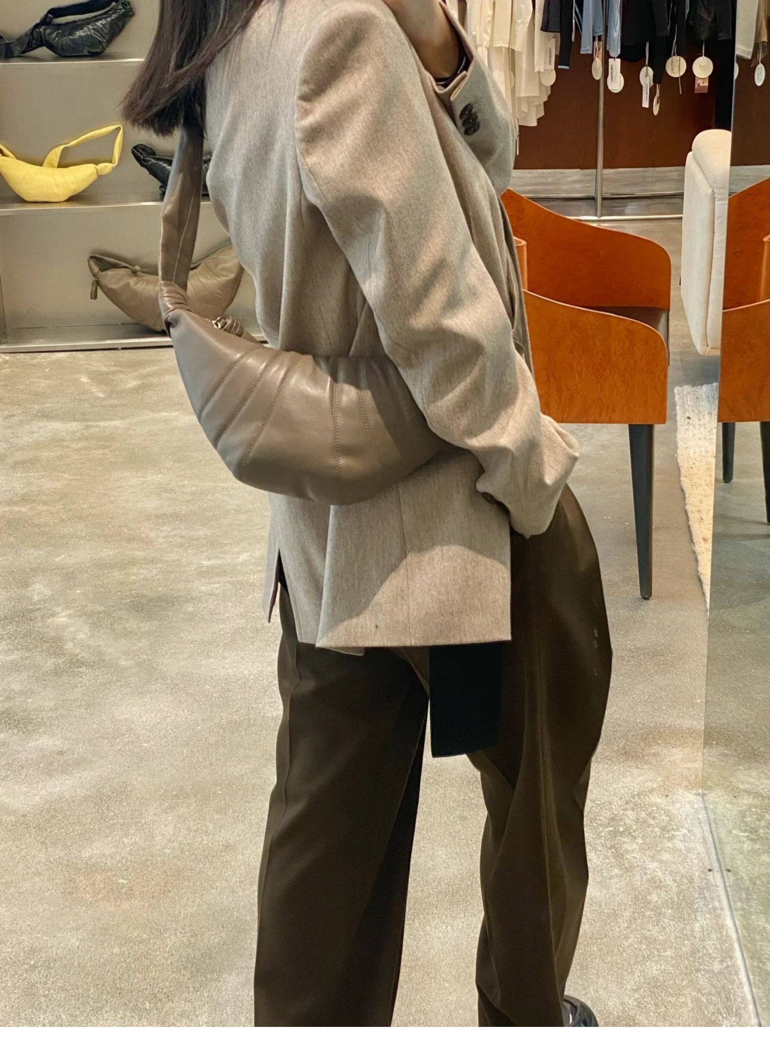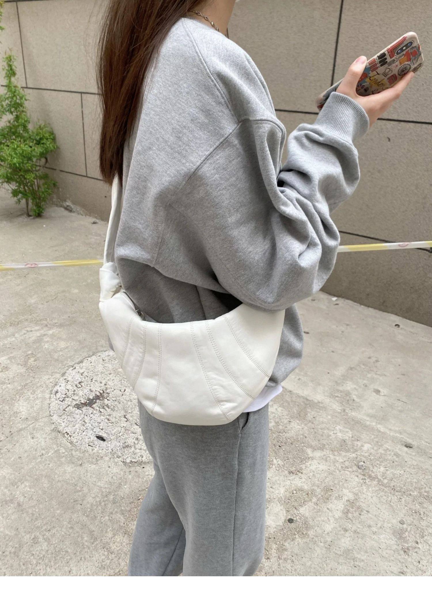 2024春夏新款牛角包小衆設計可頌包法式羊皮胸腰包百搭斜後後背包女