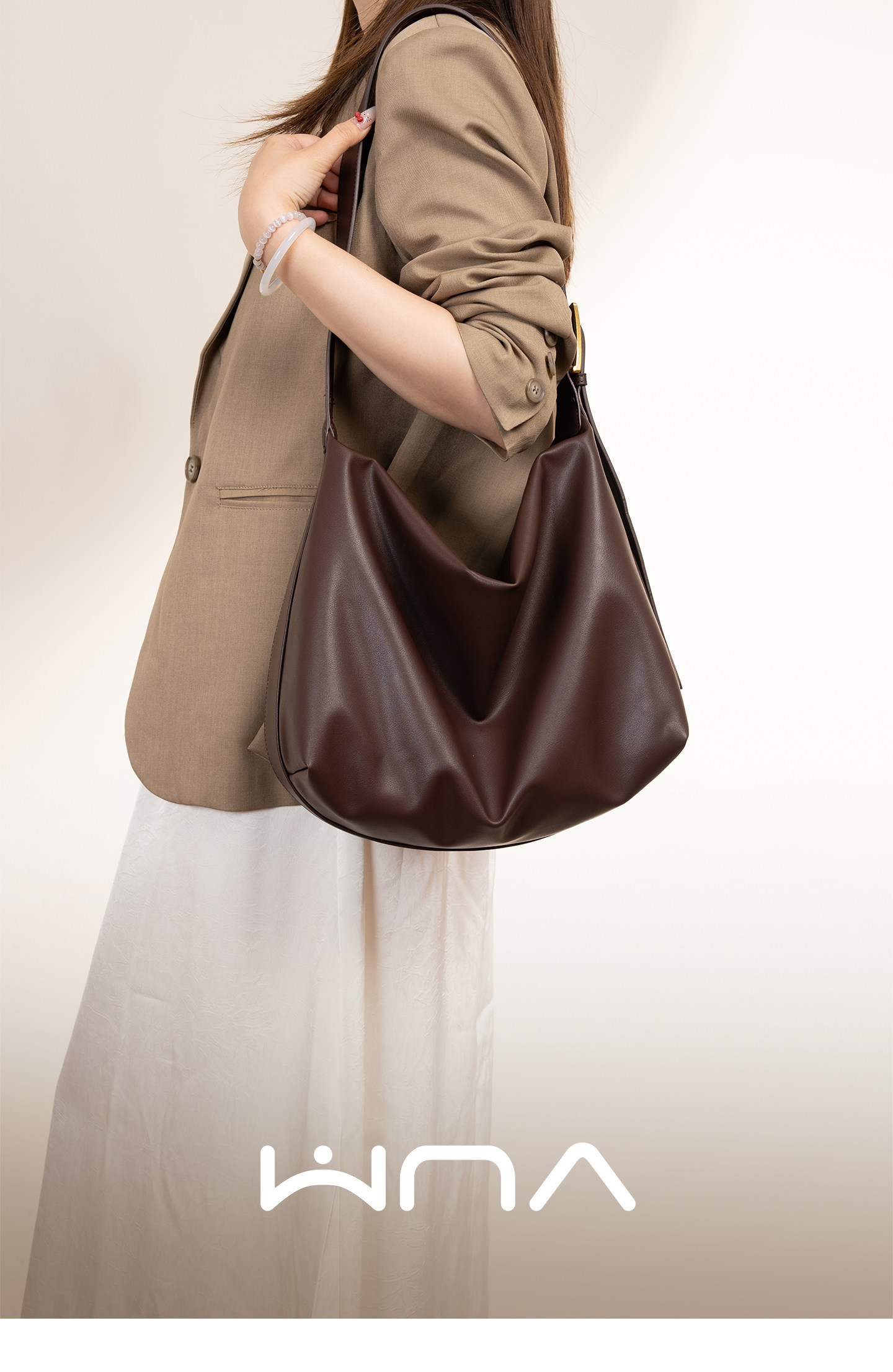 2026春夏新款潮斜後後背包百搭小衆hobo包軟塌極簡風腋下包復古大容量
