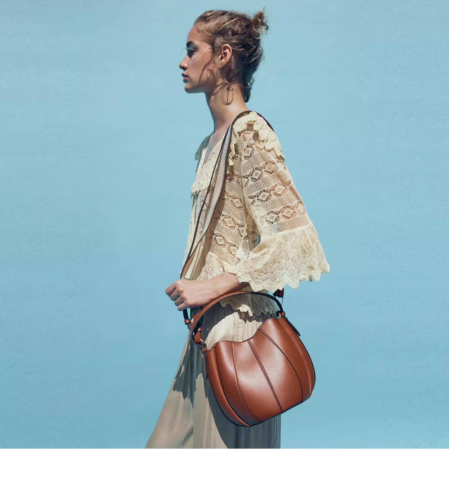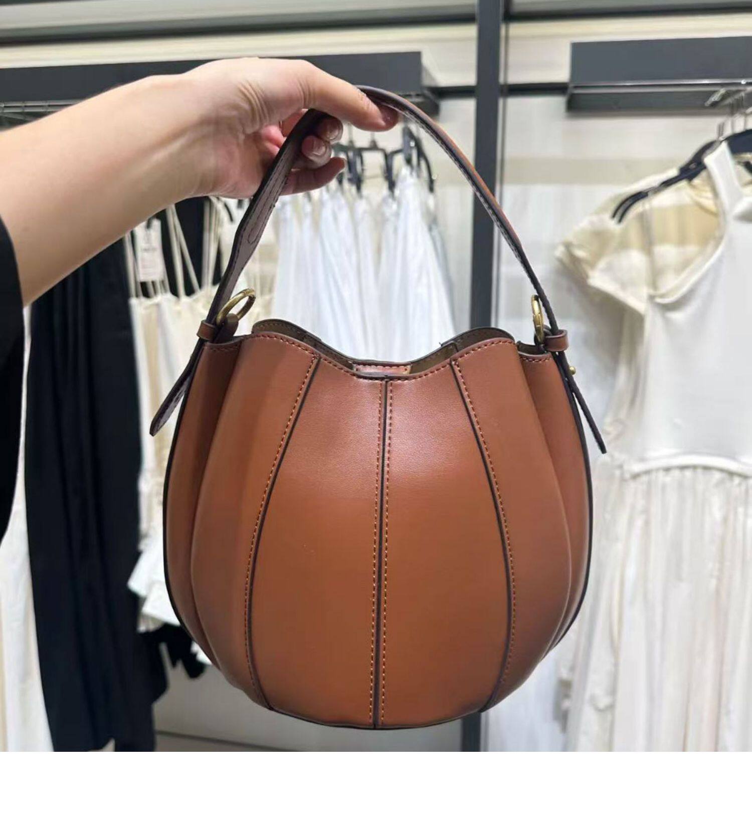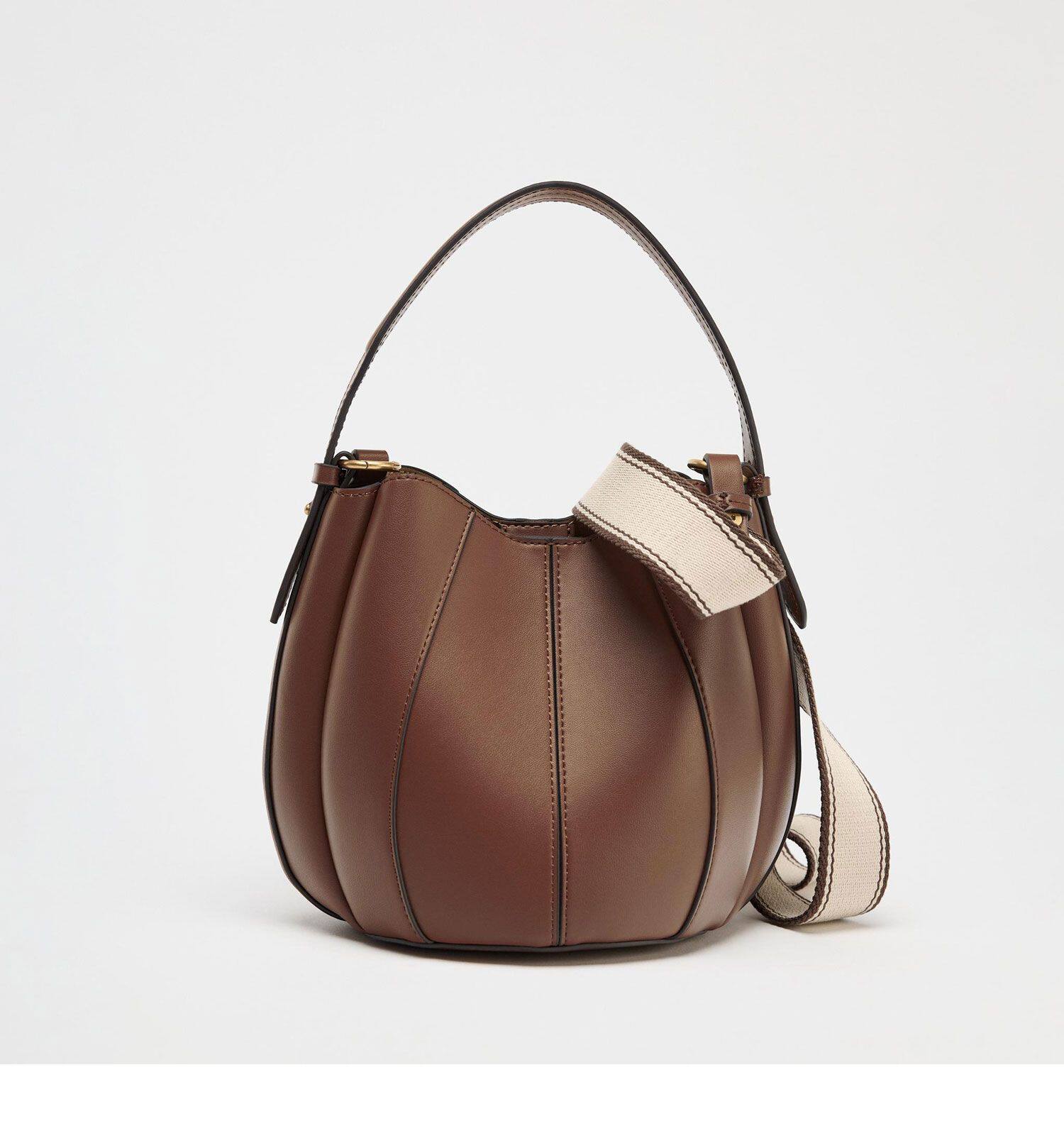 ZA2025夏季新品女包時尚百搭緝線飾束口包拼接通勤手提斜背水桶包