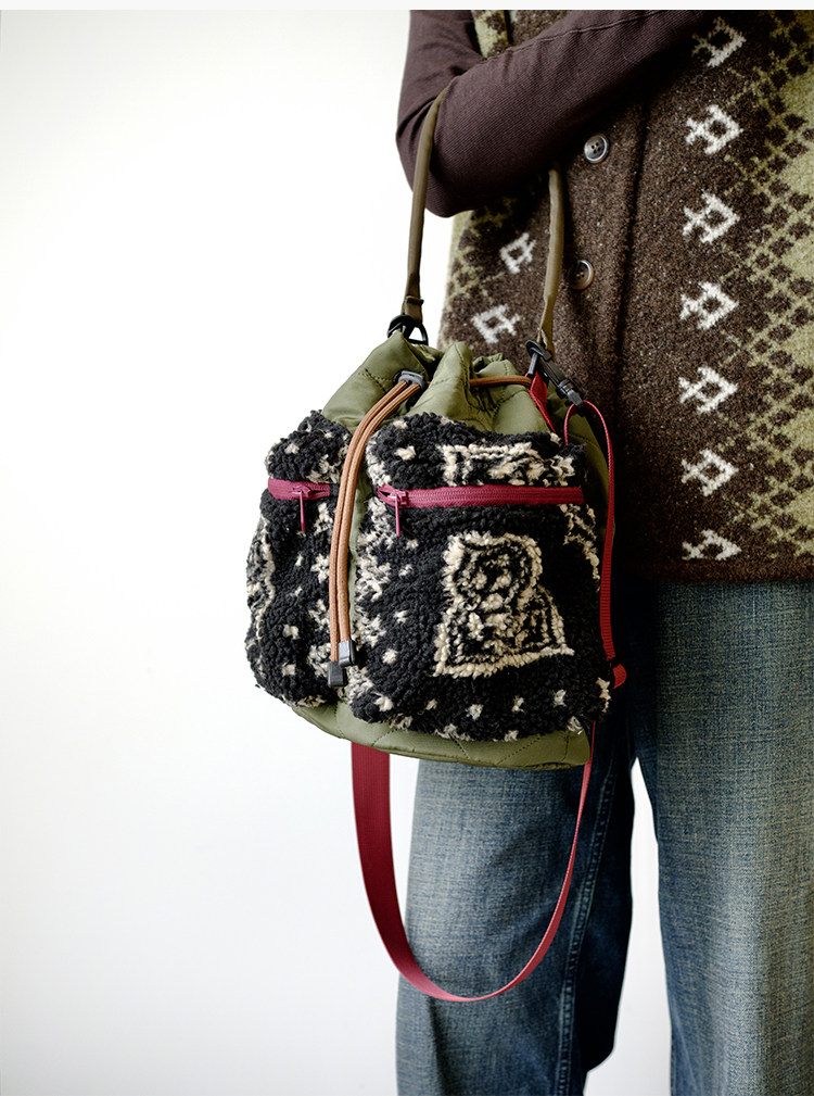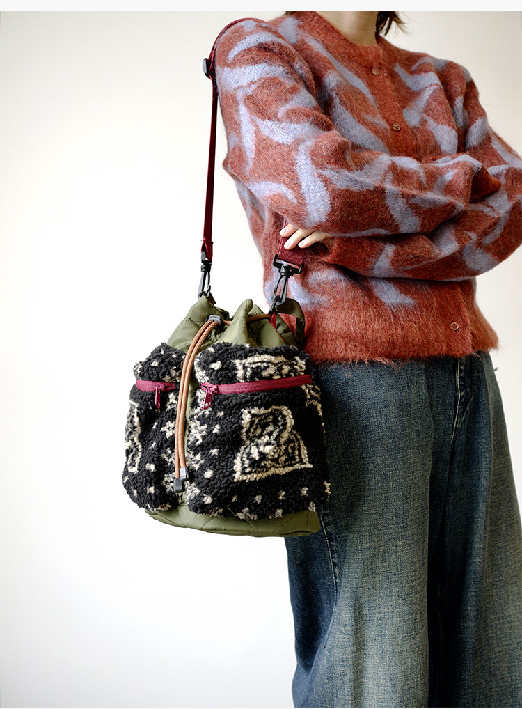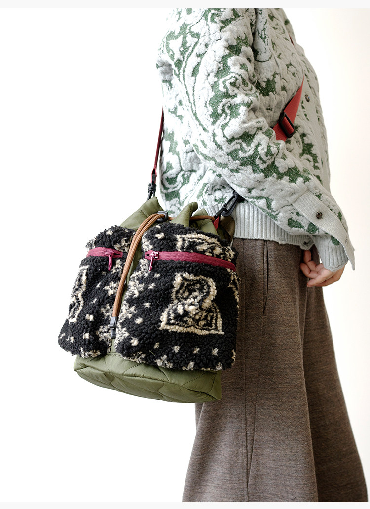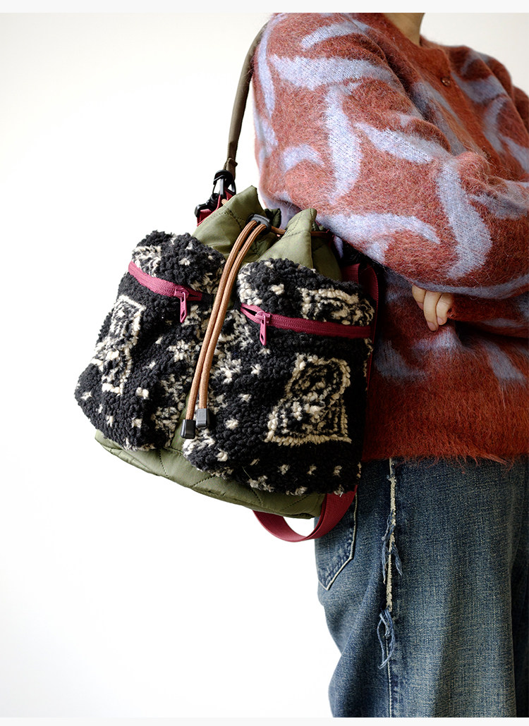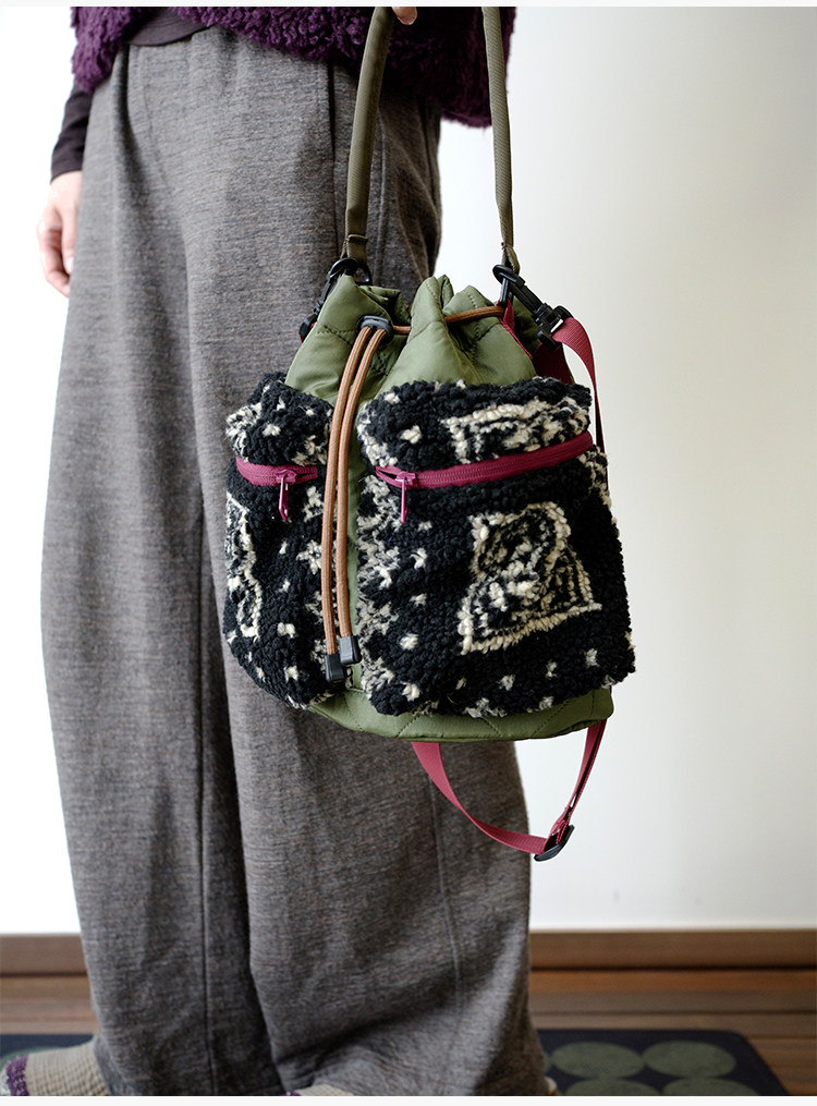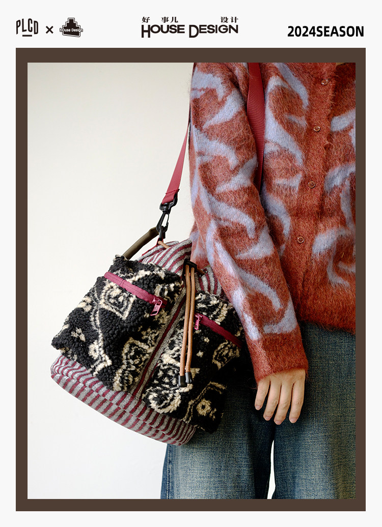 housedesign原創2025新毛絨復古斜後後背包小衆菜籃子時尚水桶包包女