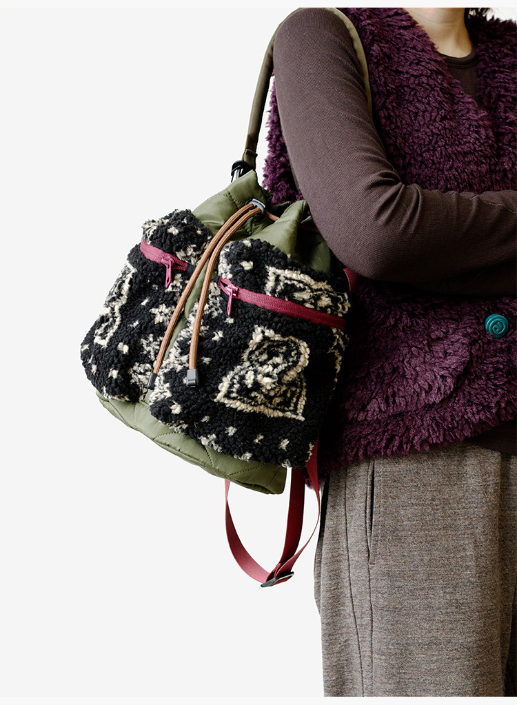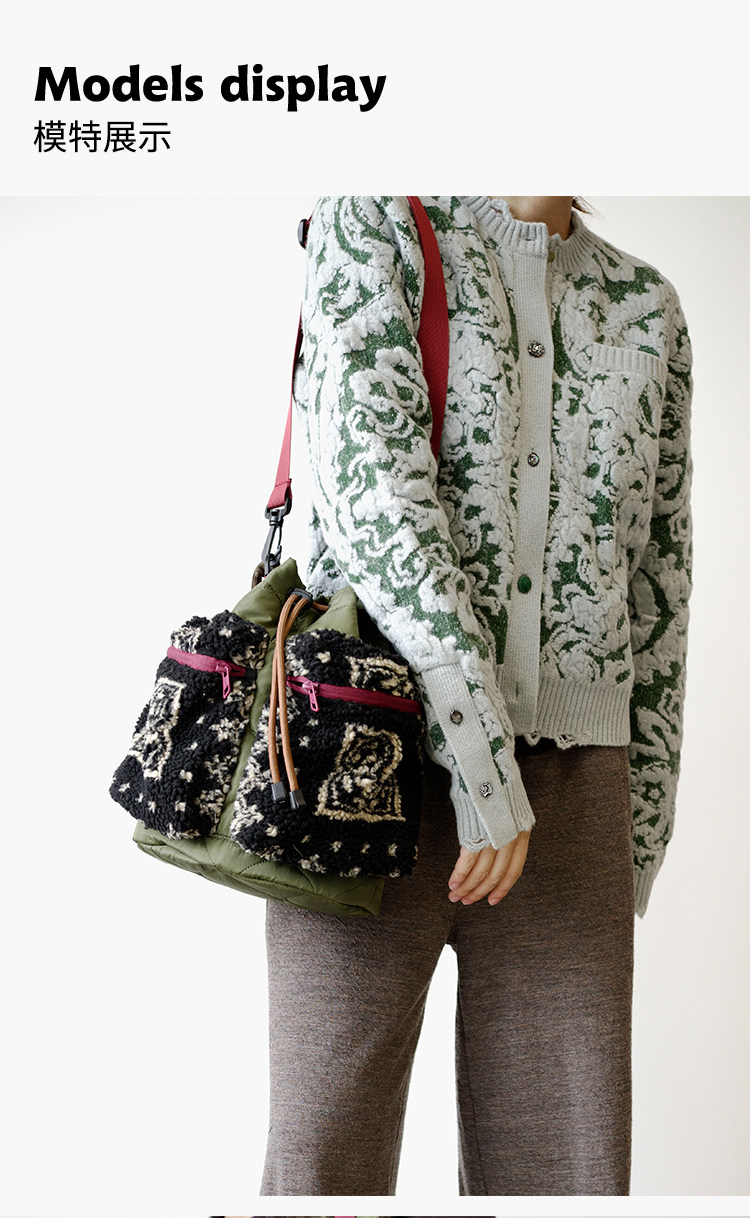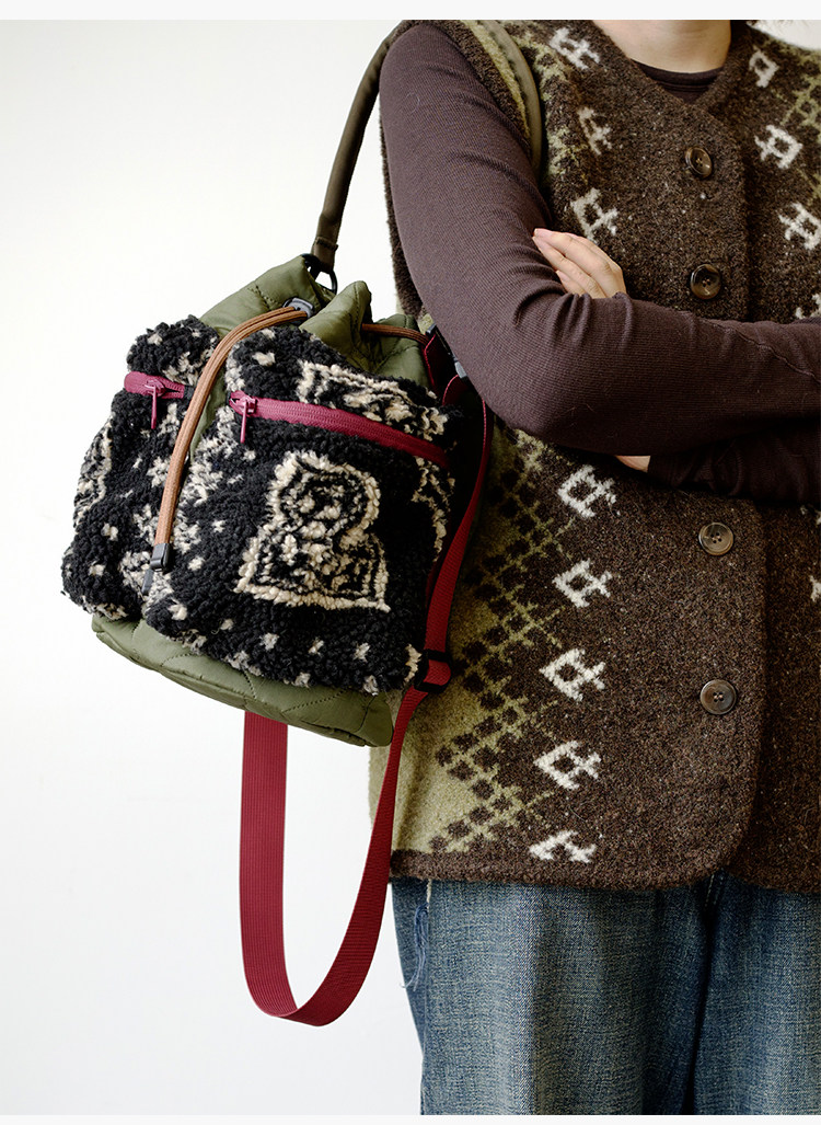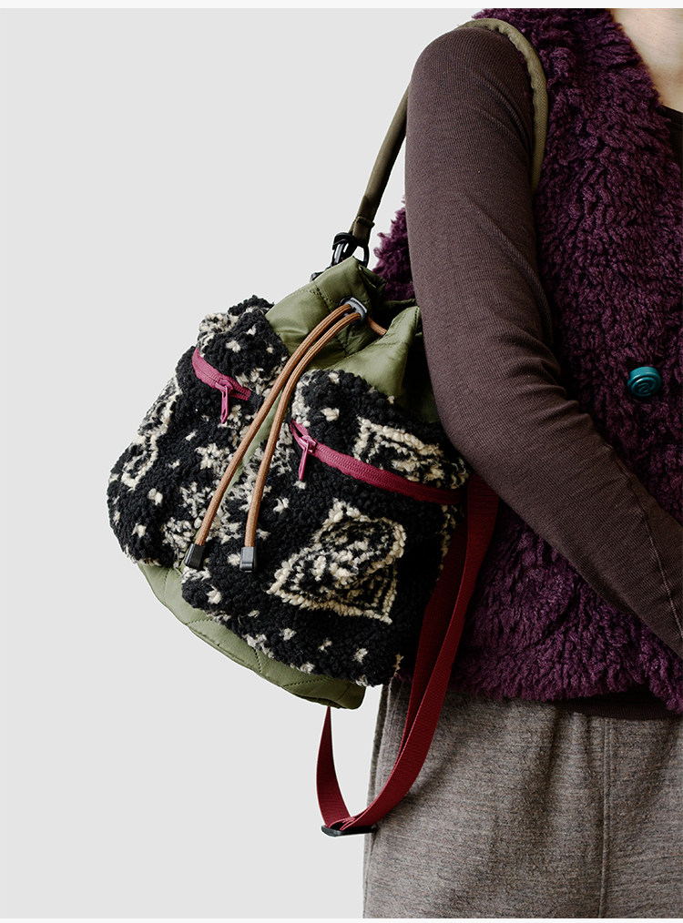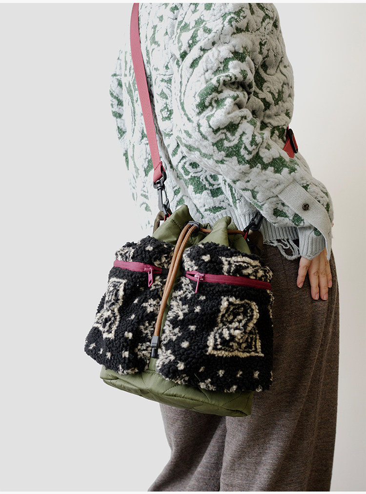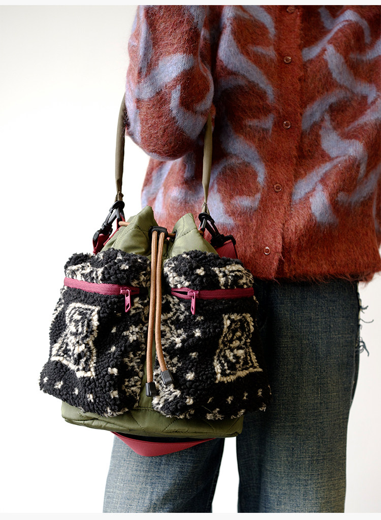 housedesign原創2025新毛絨復古斜後後背包小衆菜籃子時尚水桶包包女