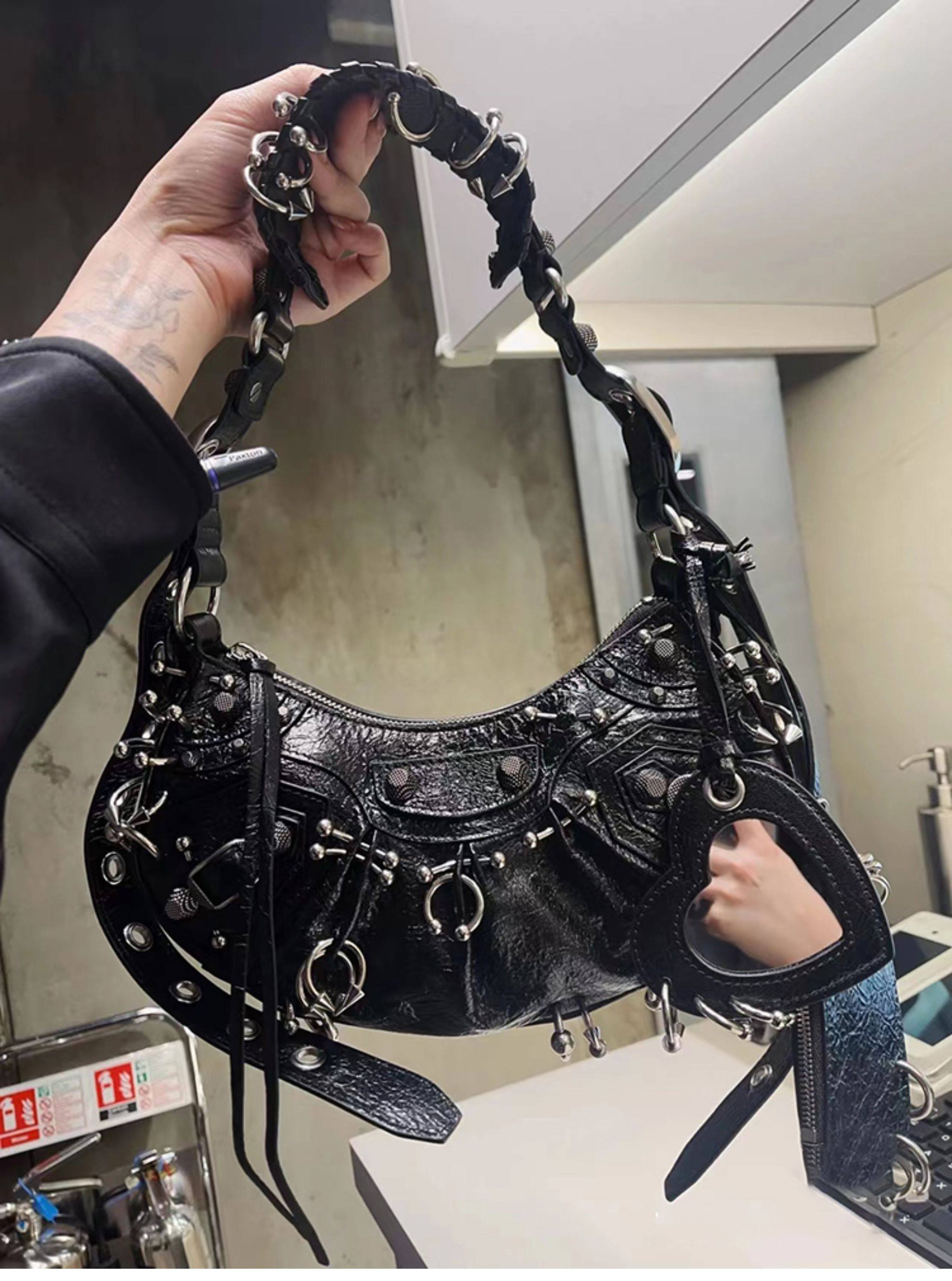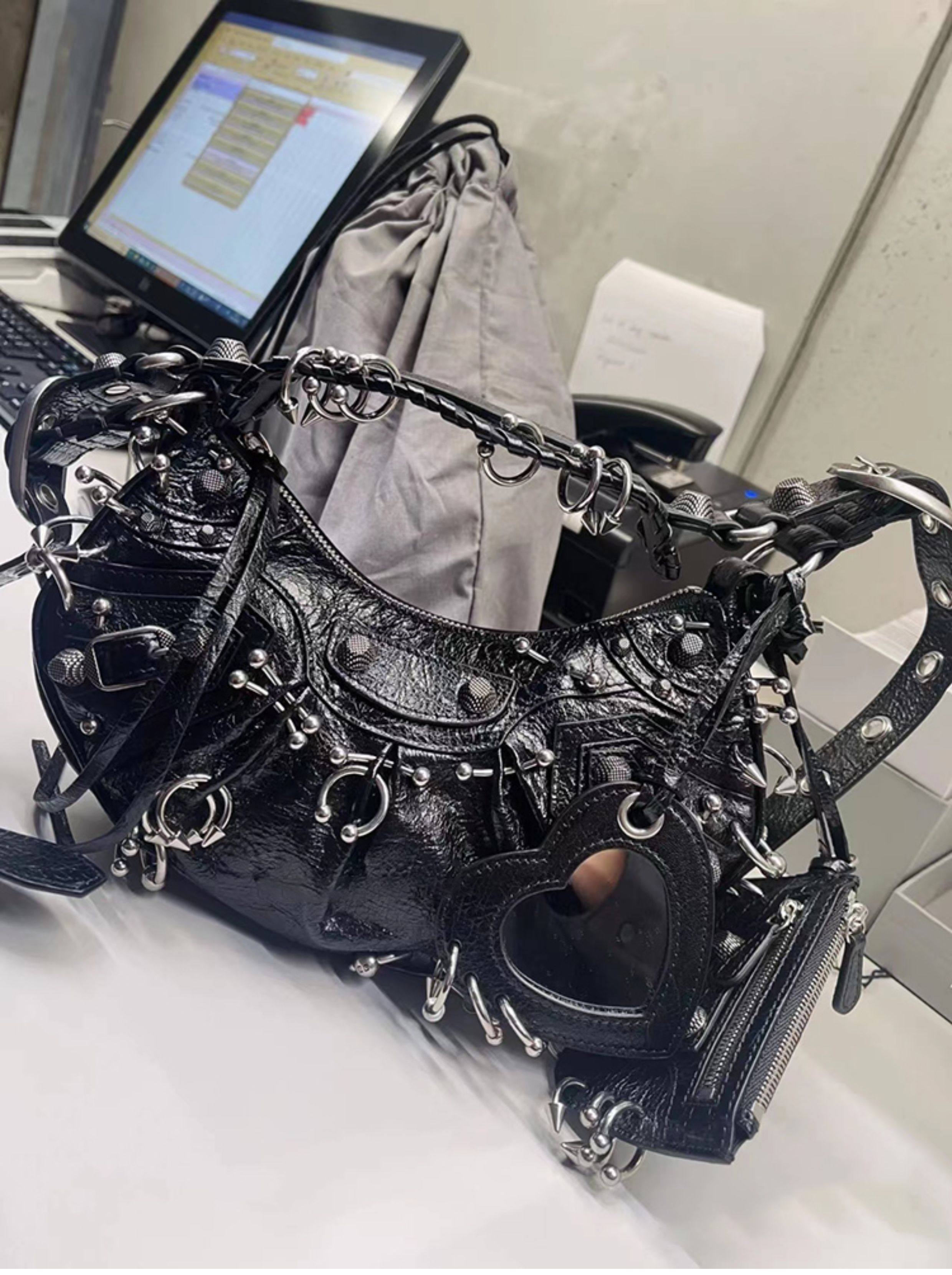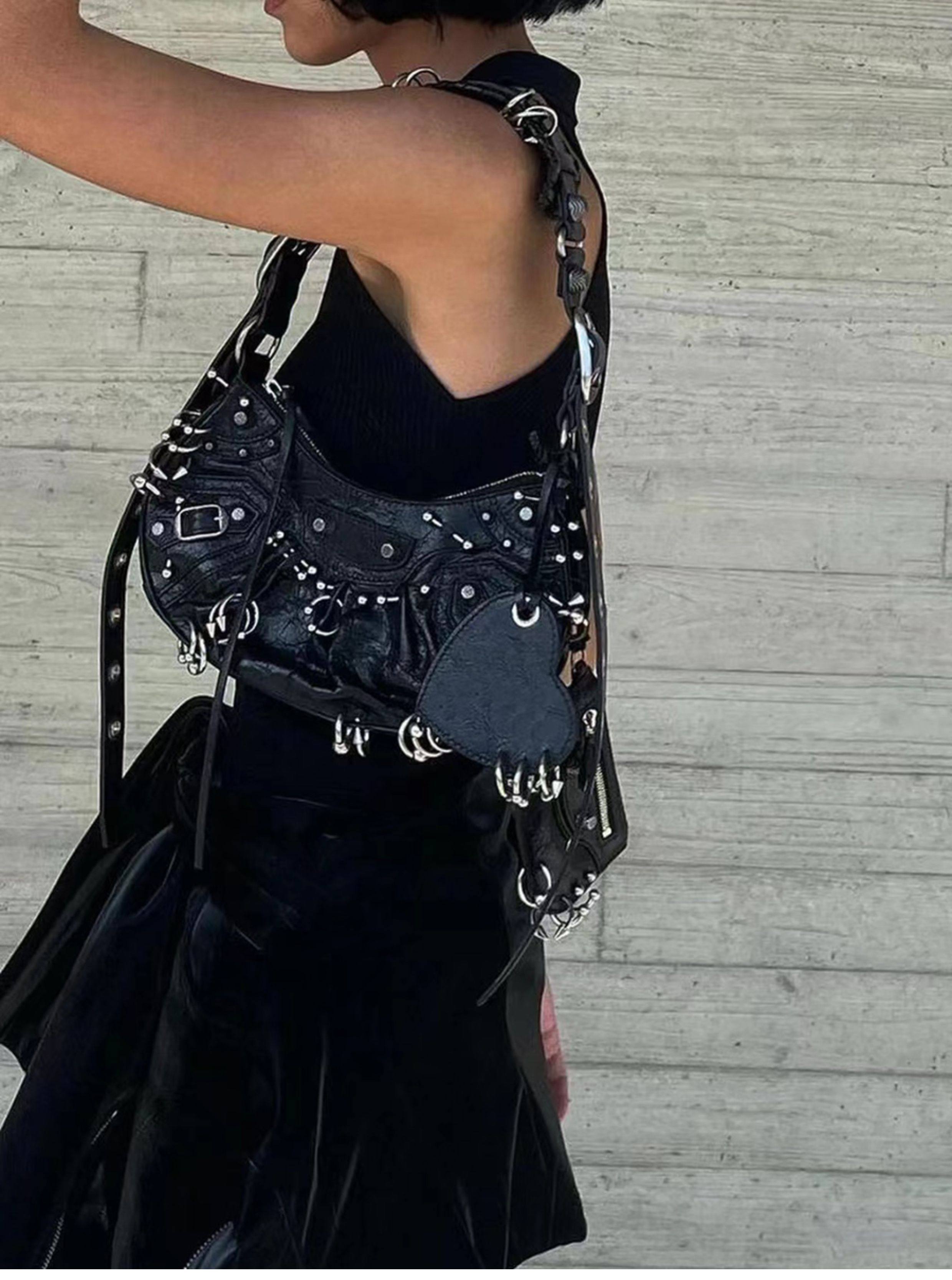 ins網紅同款重工暗黑金屬機車包單肩斜後後背包包2023春夏新款女包潮