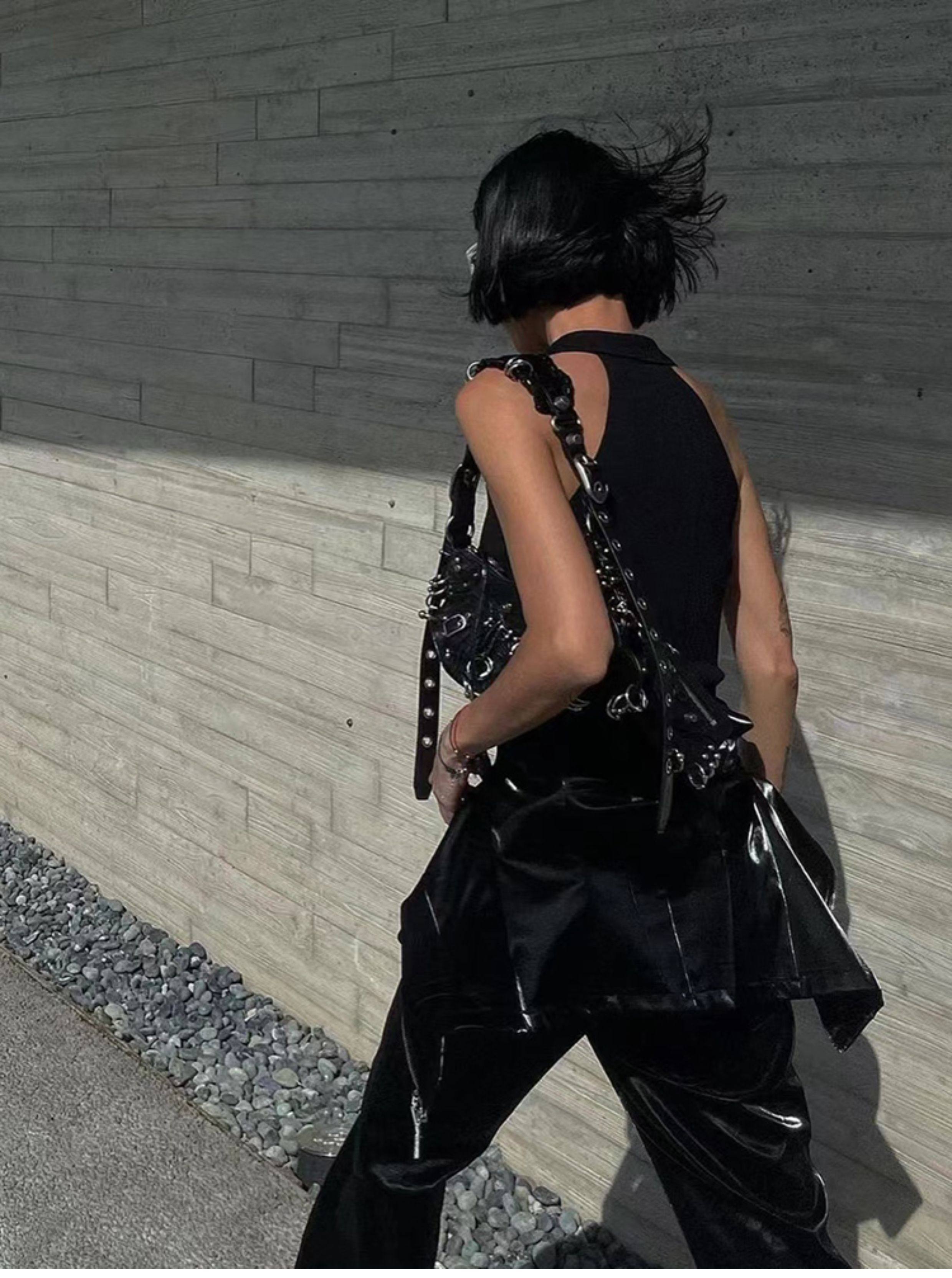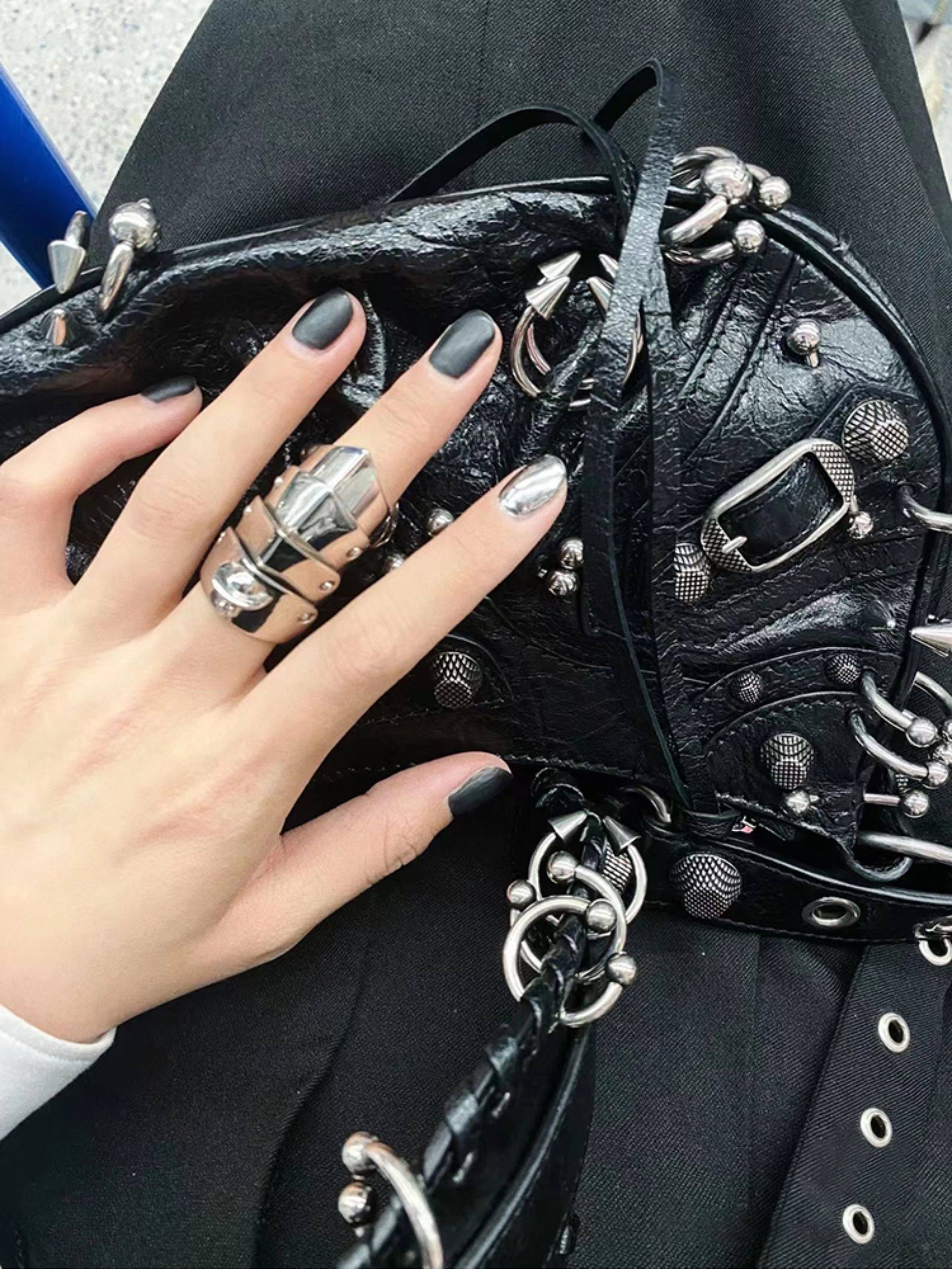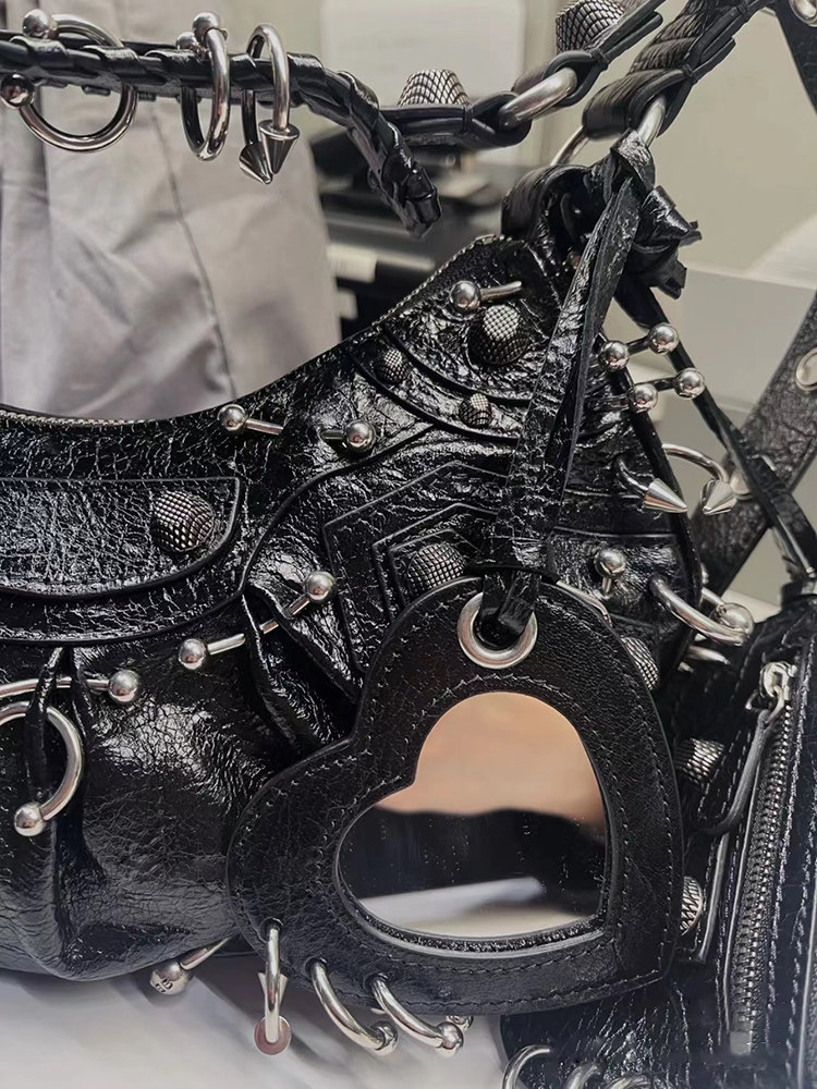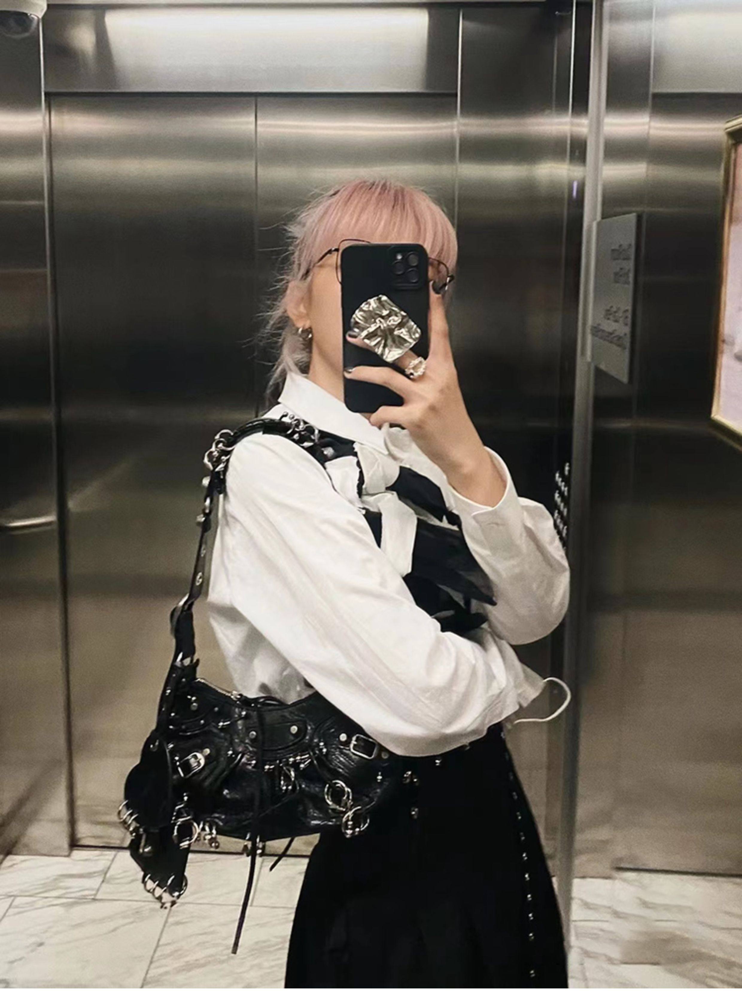 ins網紅同款重工暗黑金屬機車包單肩斜後後背包包2023春夏新款女包潮