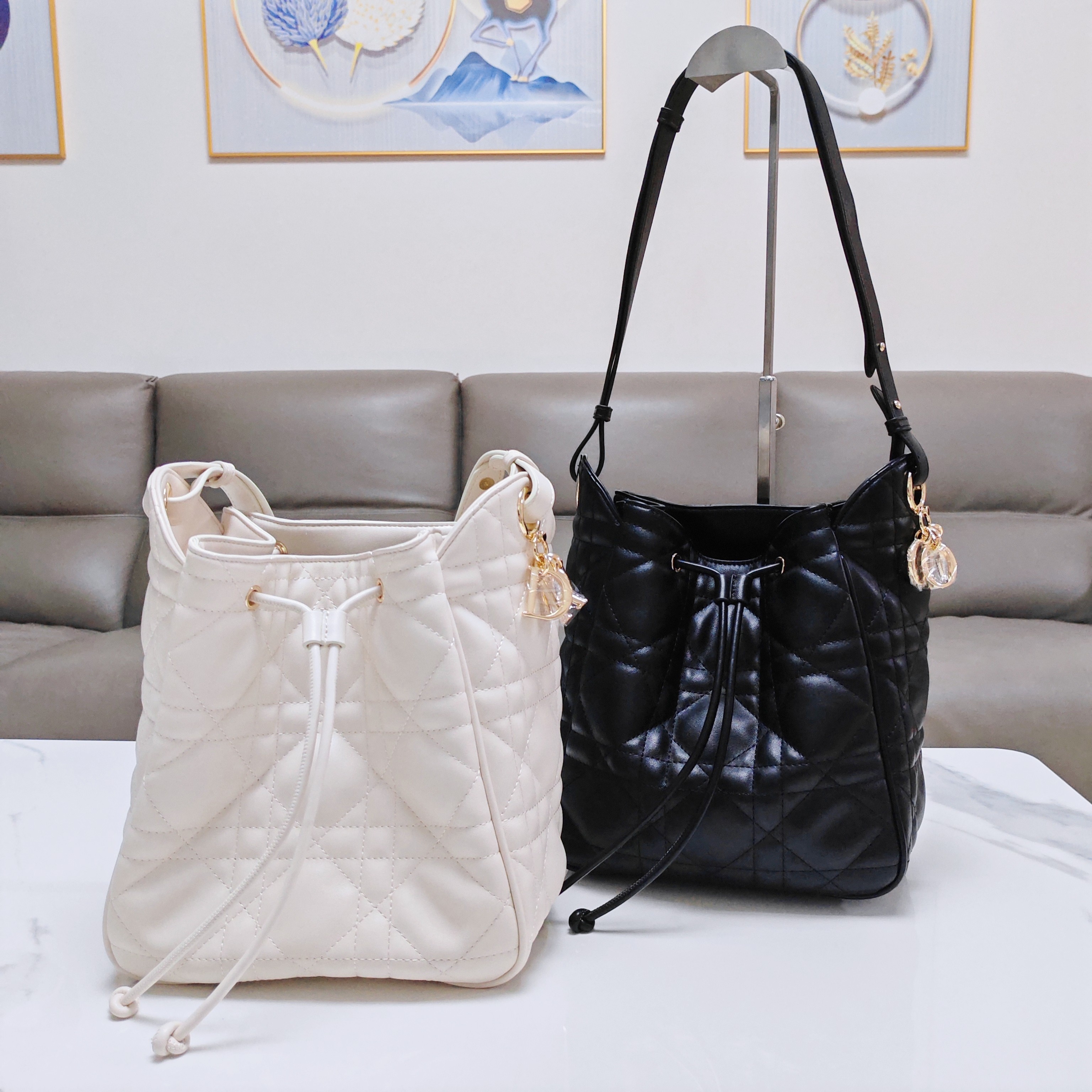 腋下抽繩水桶包女2025新款高級感小衆單肩斜背大容量包菱格吊籃包