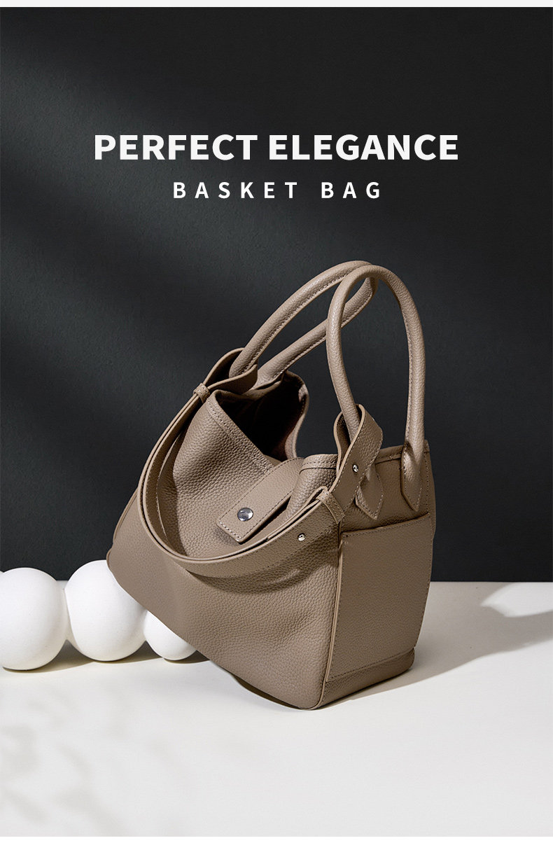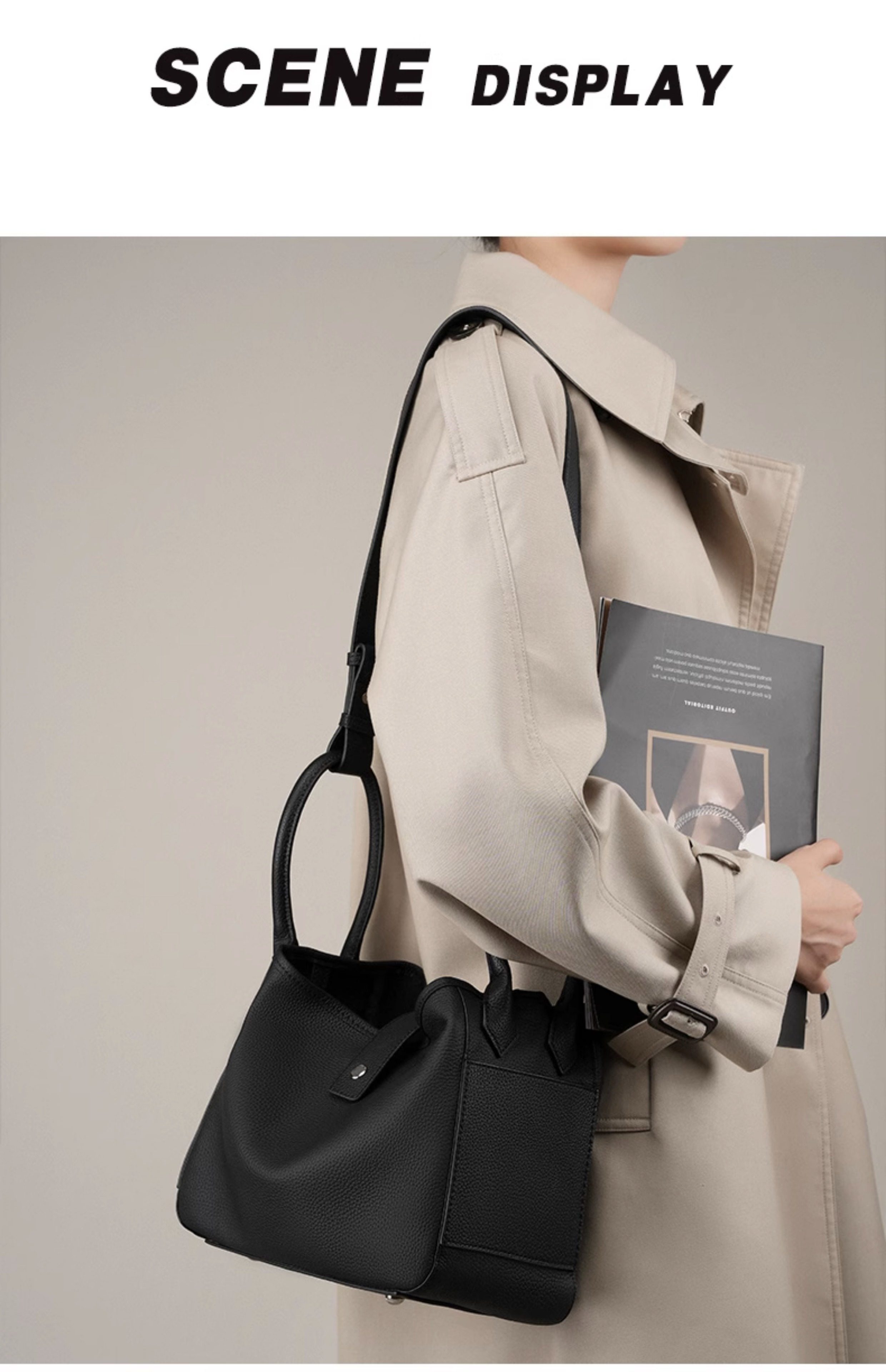 頭層牛皮水桶包真皮2026新款枕頭單肩斜背手提醫生包菜籃子女包包