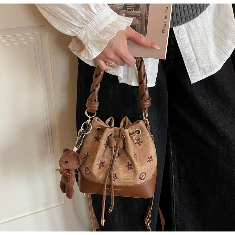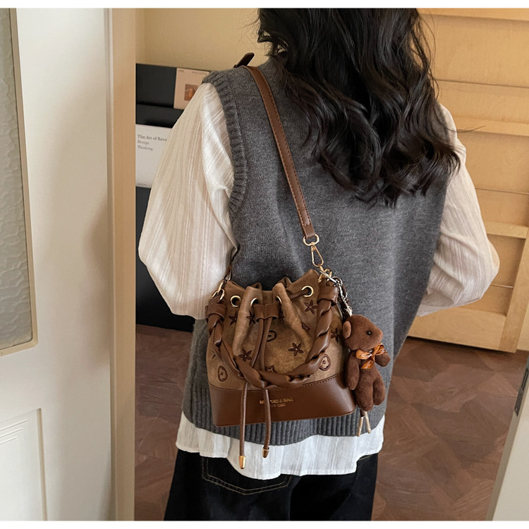 今年流行包包女2025新款時尚高級感洋氣單肩斜後後背包小衆手提水桶包