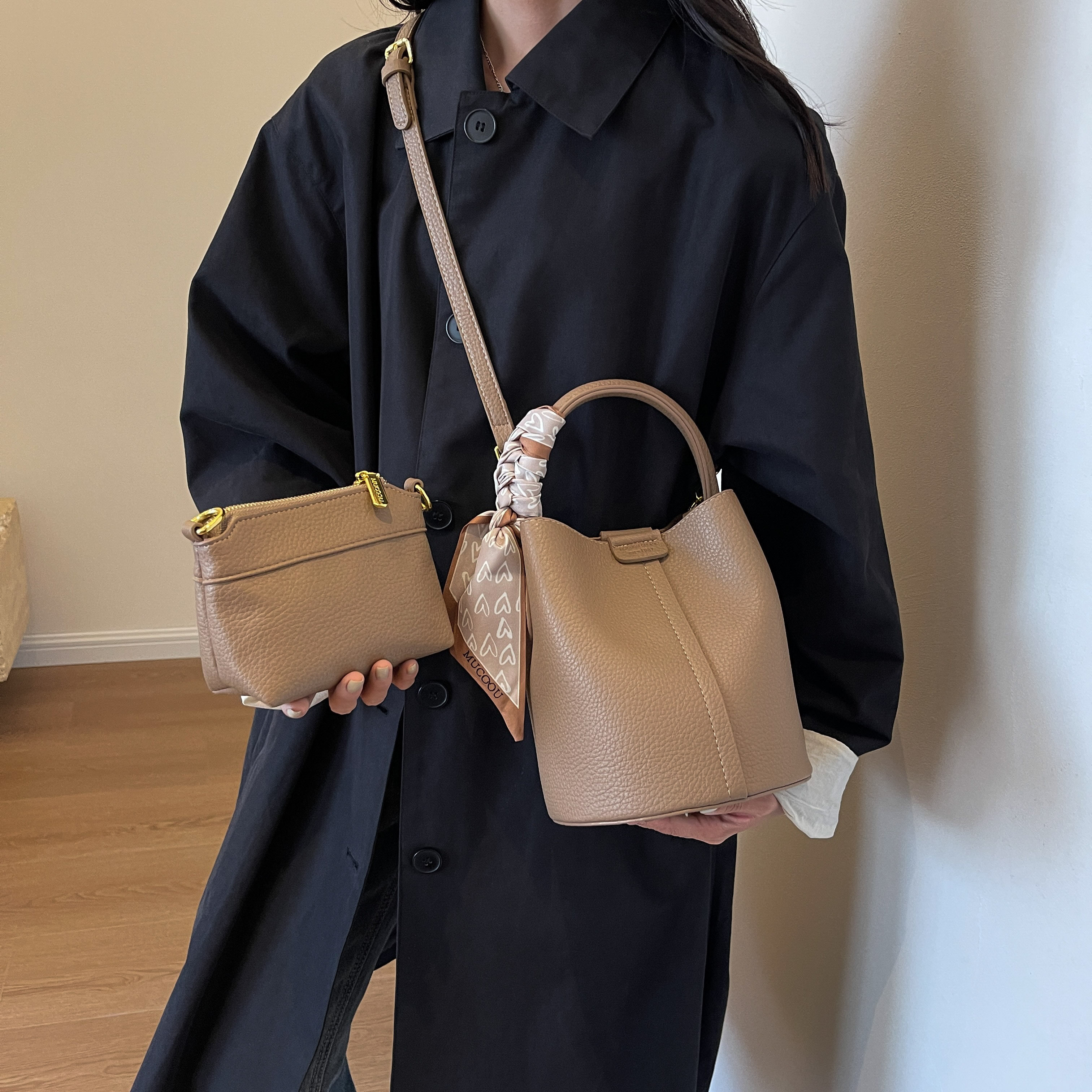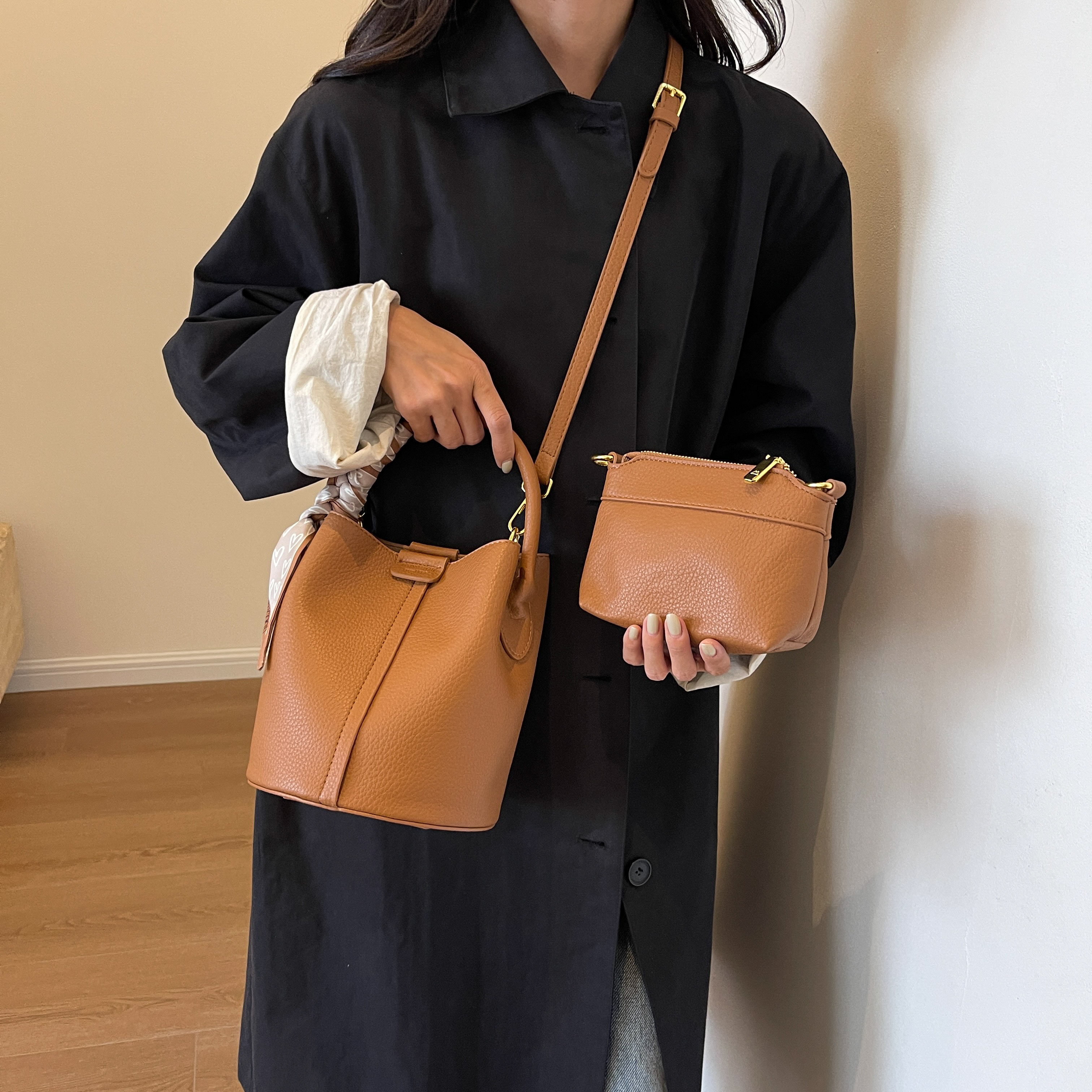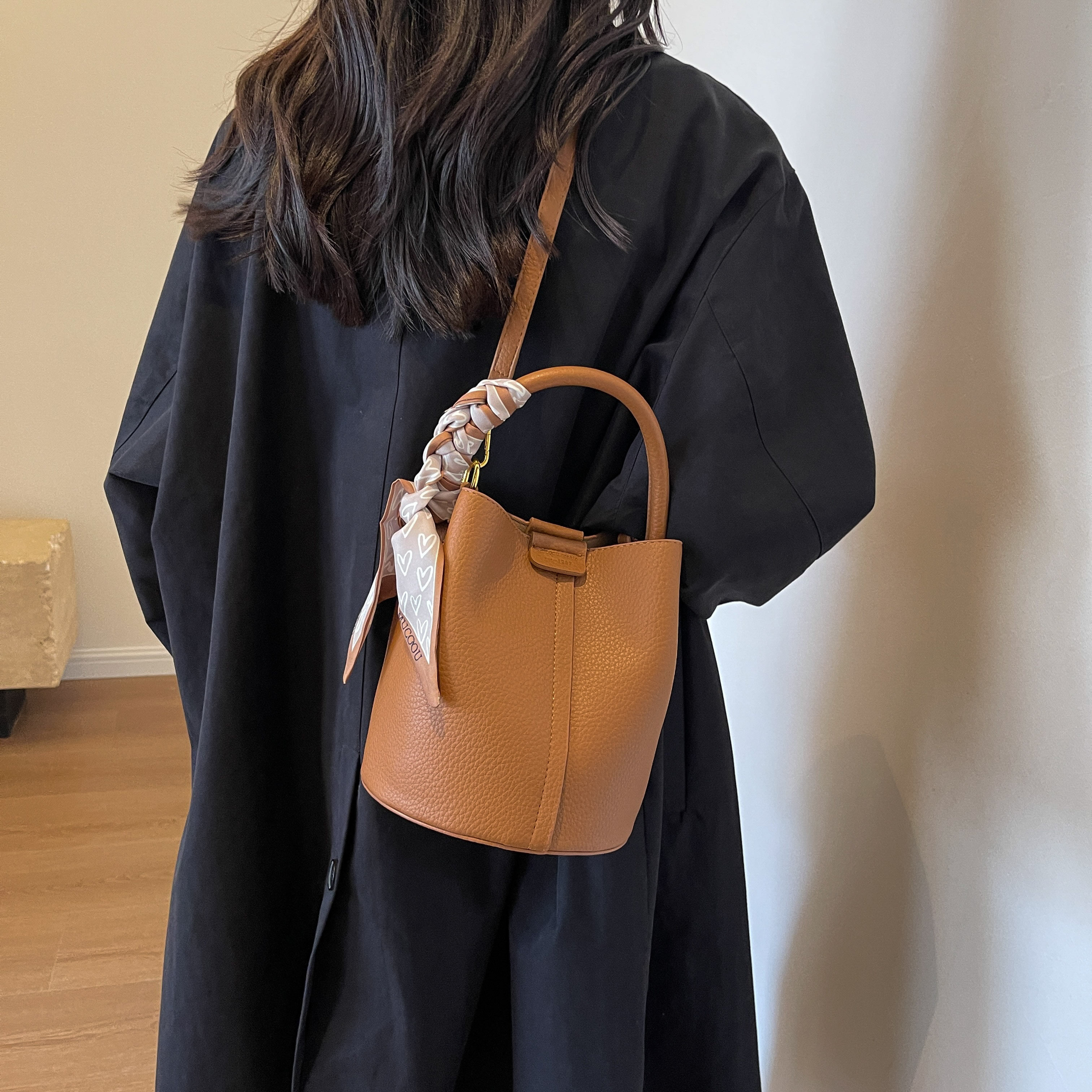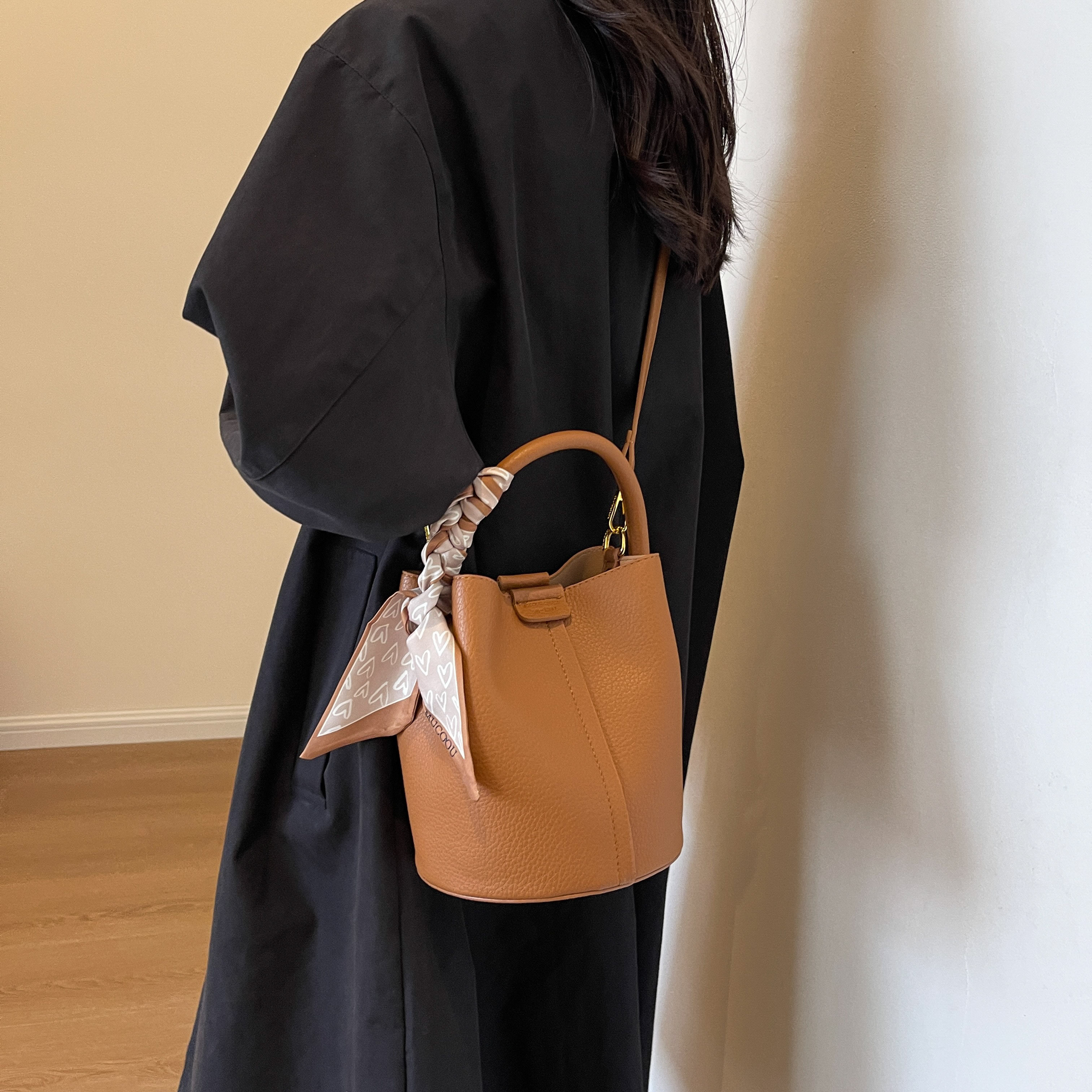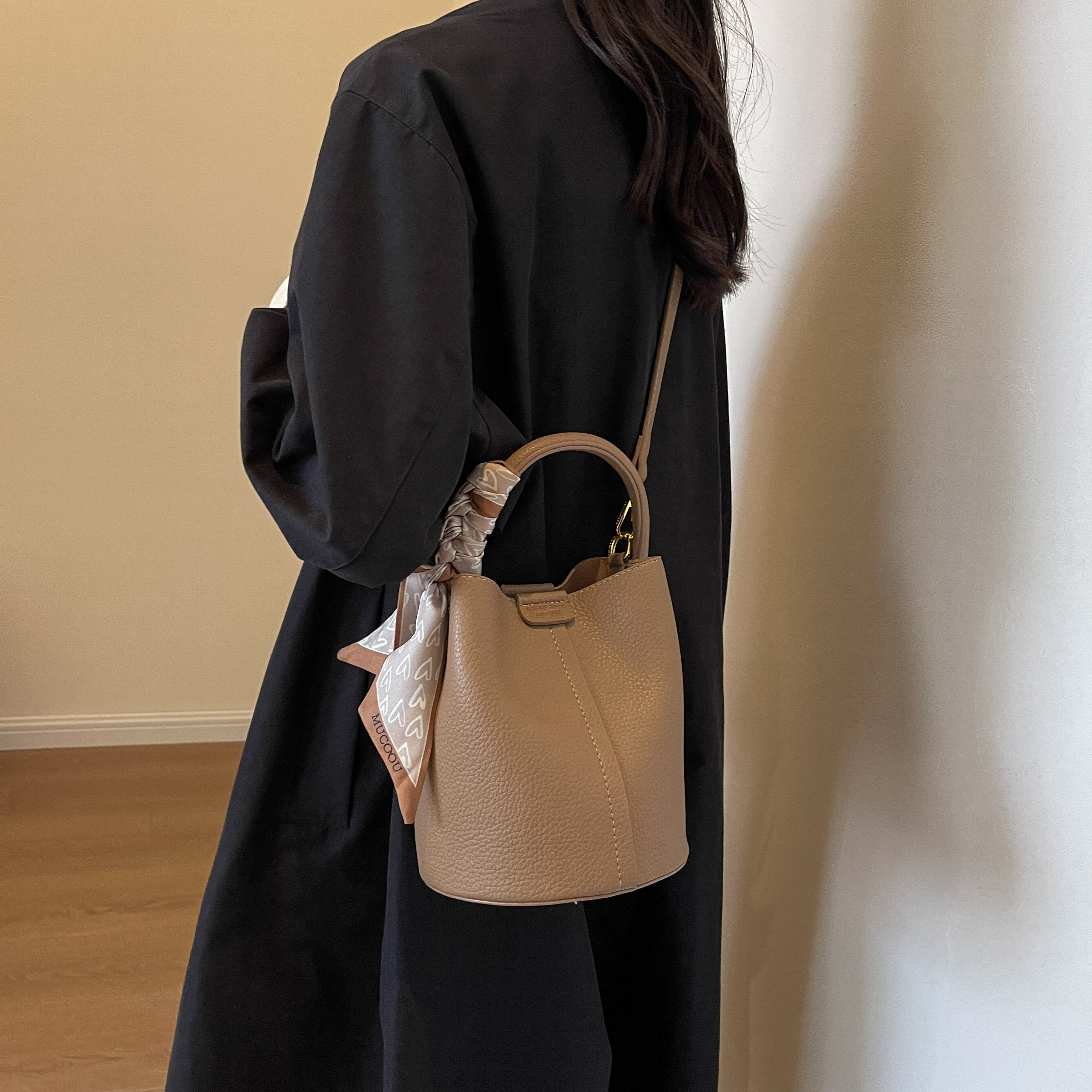 包包女2025新款休閒通勤手提包時尚百搭單肩斜後後背包小衆質感水桶包