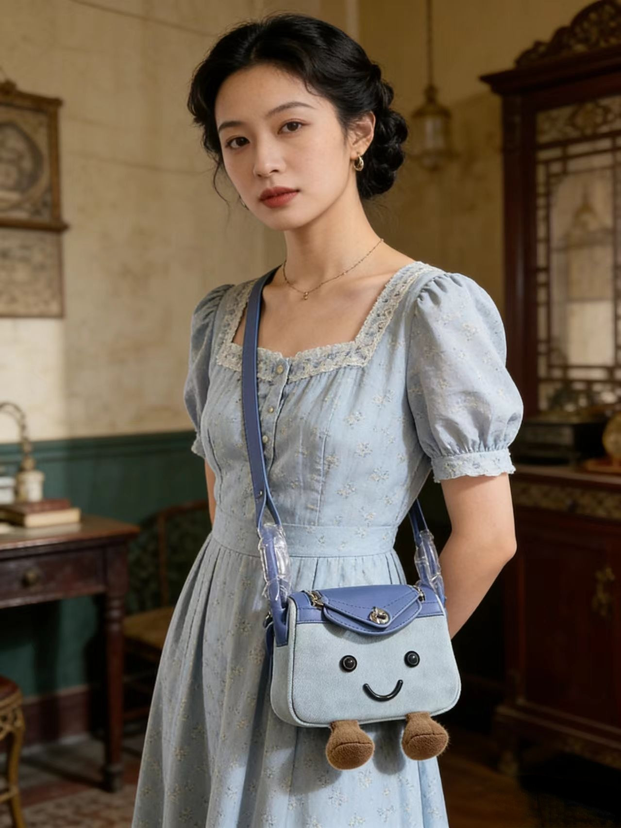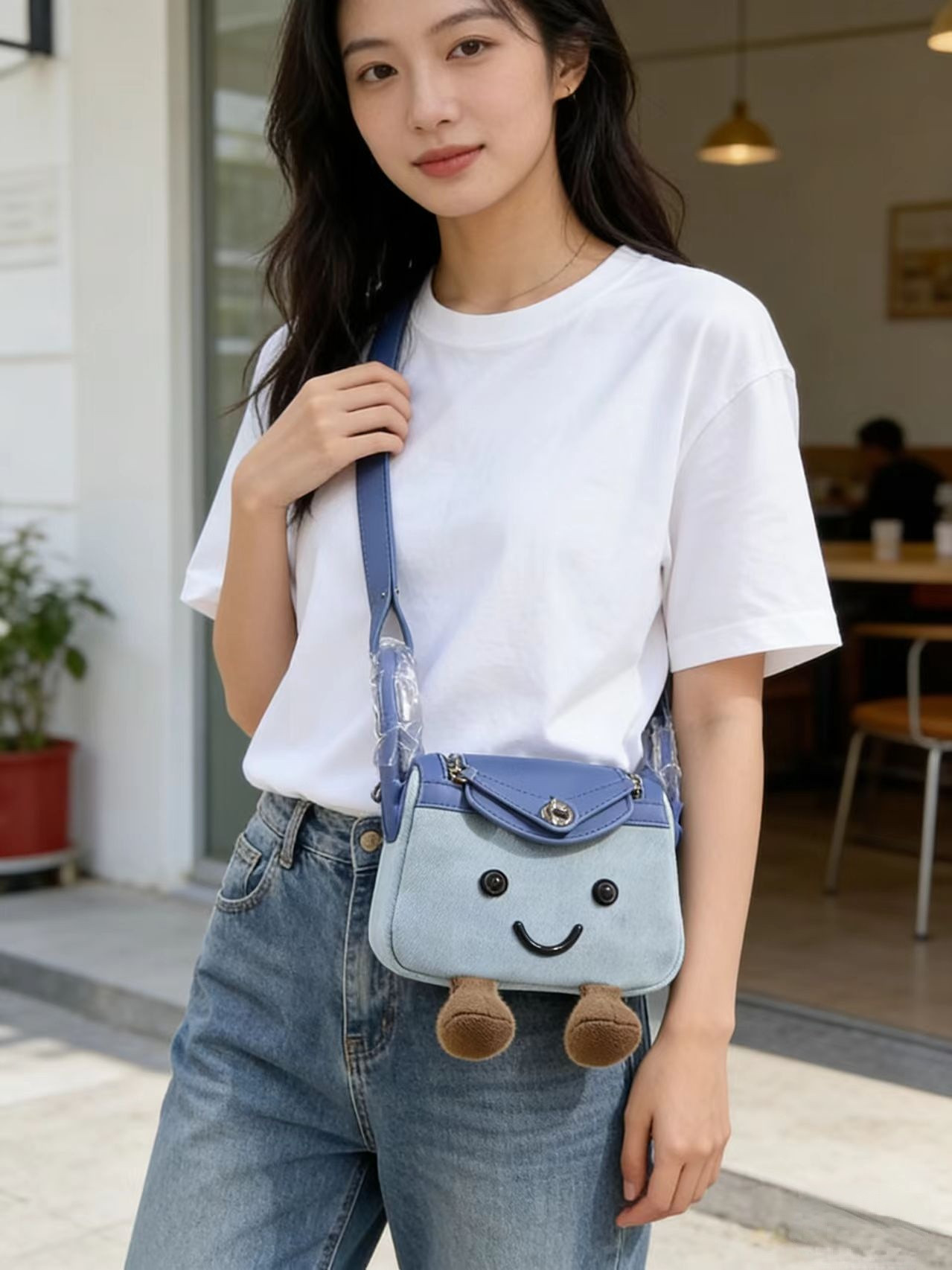 原創設計Lindy玩偶包超可愛牛仔藍時尚單品潮流可攜式單肩斜後後背包
