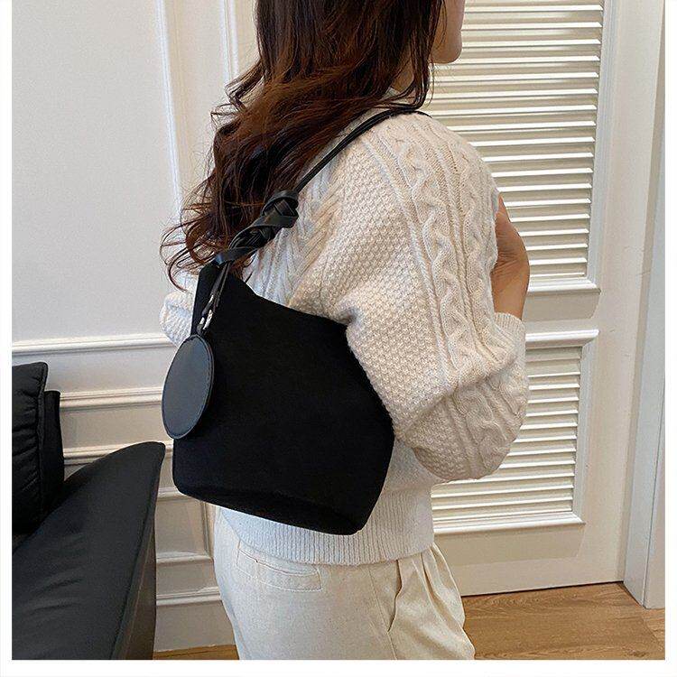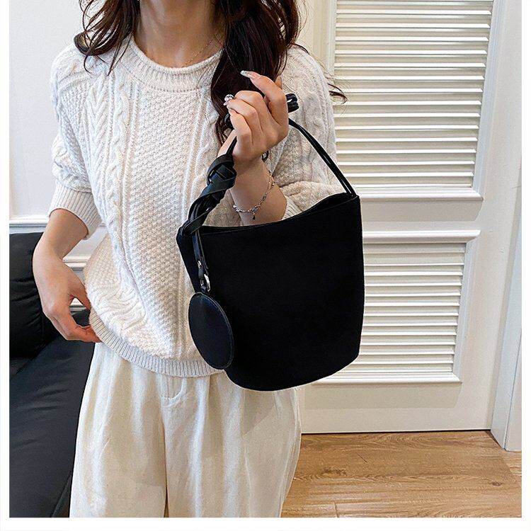 秋上新復古水桶包女質感百搭通勤單肩腋下包外出雜物伴手禮小拎包