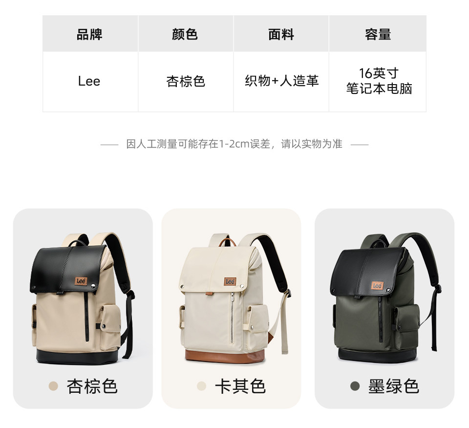 Lee潮流雙肩包男女後後背包時尚休閒大容量旅行包通勤電腦包學生書包