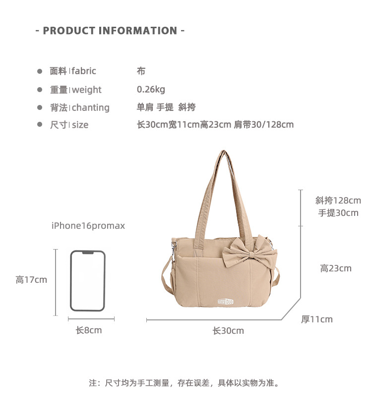 戶外尼龍斜後後背包大容量蝴蝶結托特包女士單肩包休閒旅行包