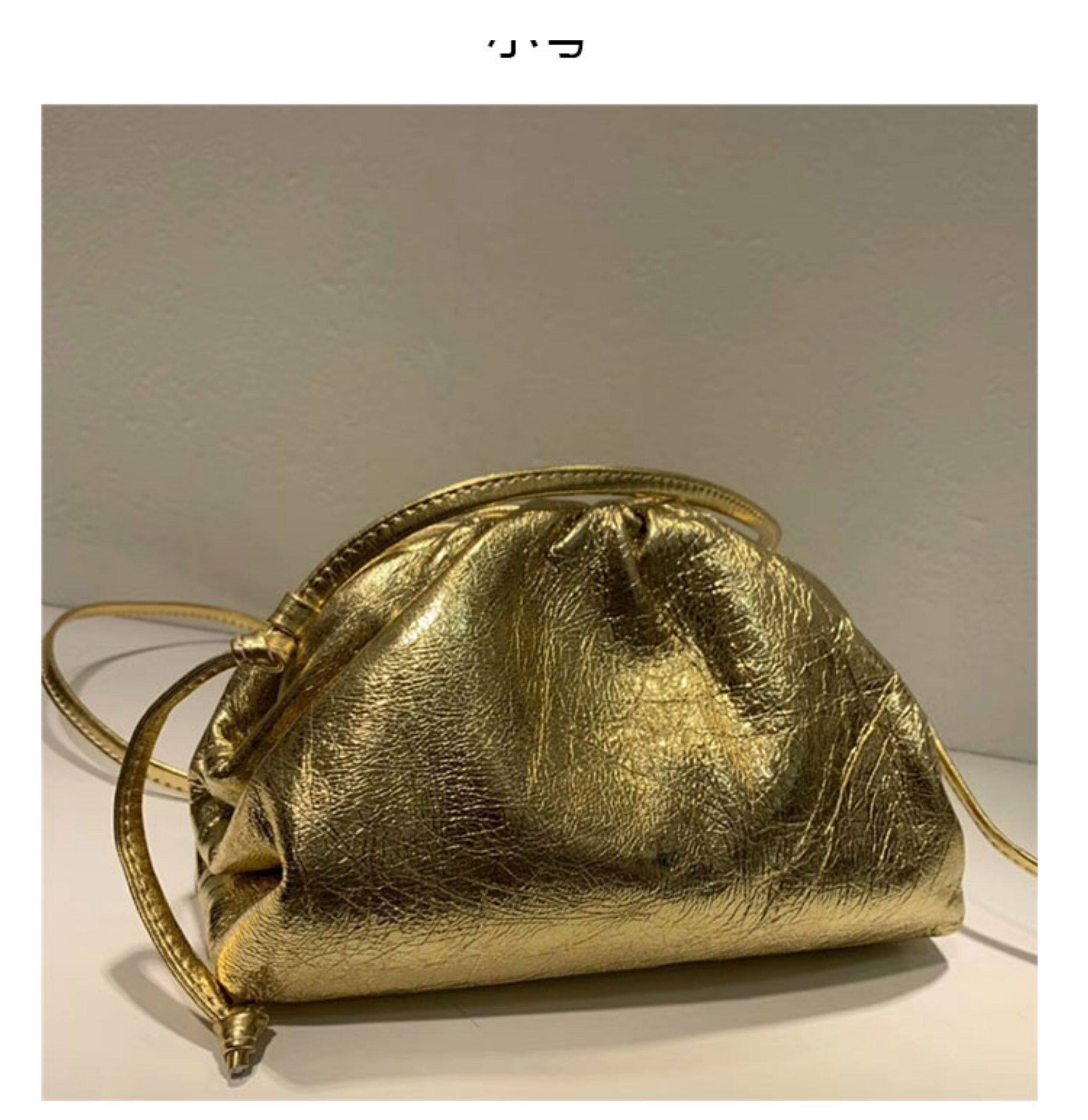包包2025新款氣質手拿包雲朵包真皮大容量餃子包單肩斜背女包金色
