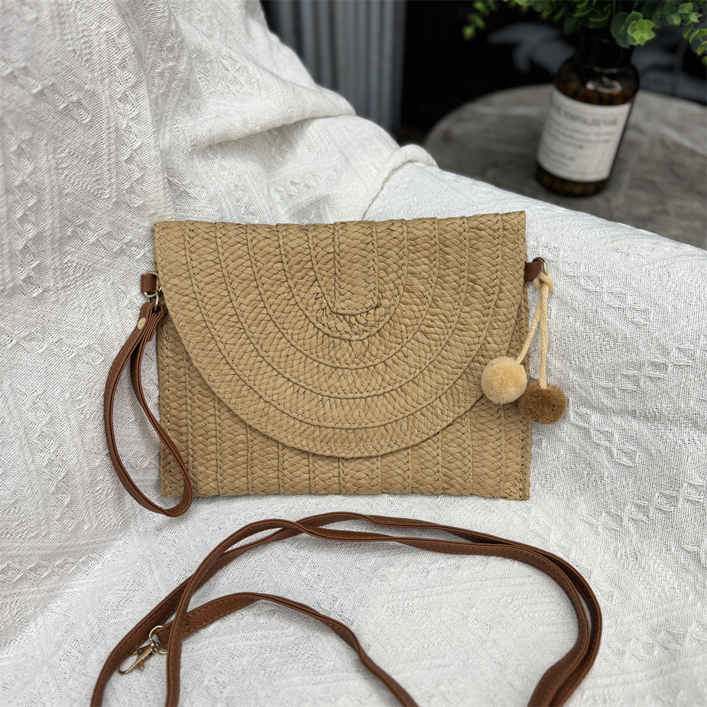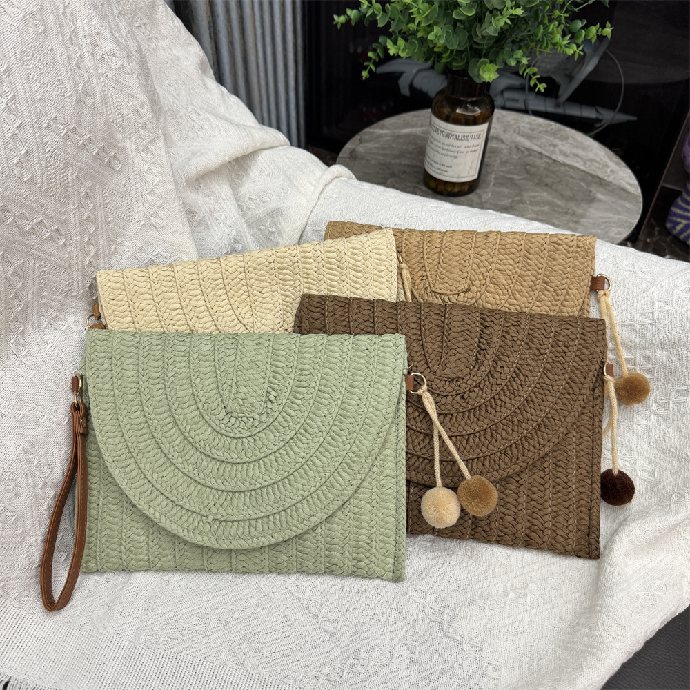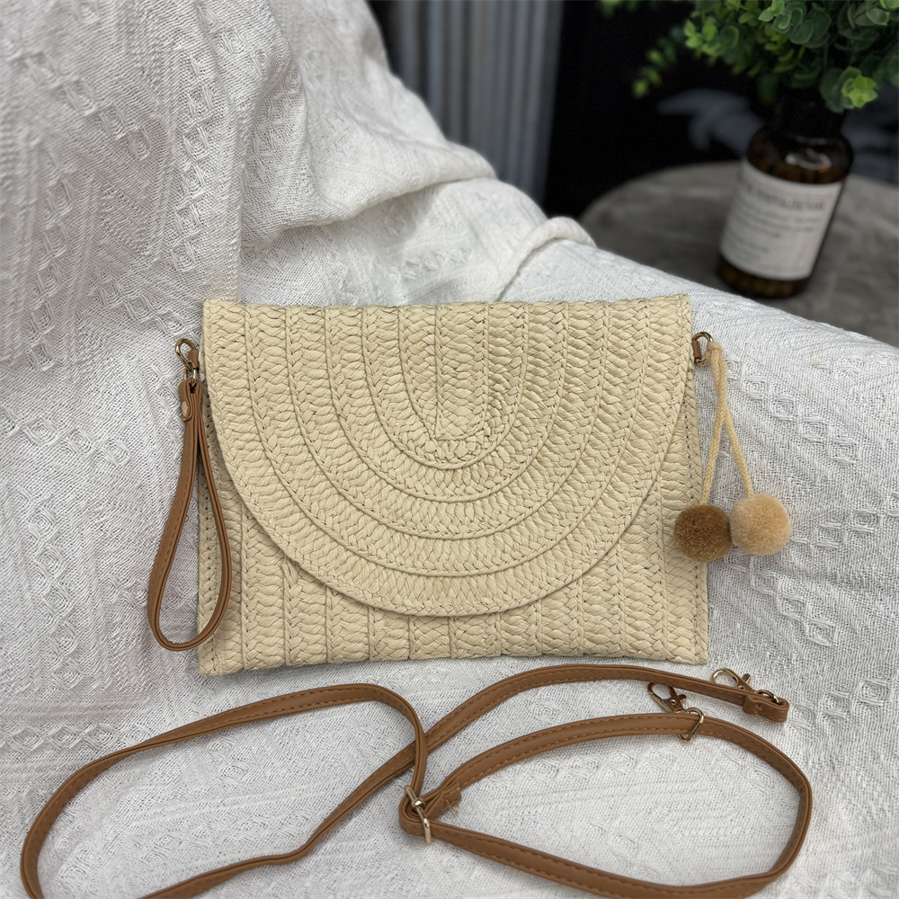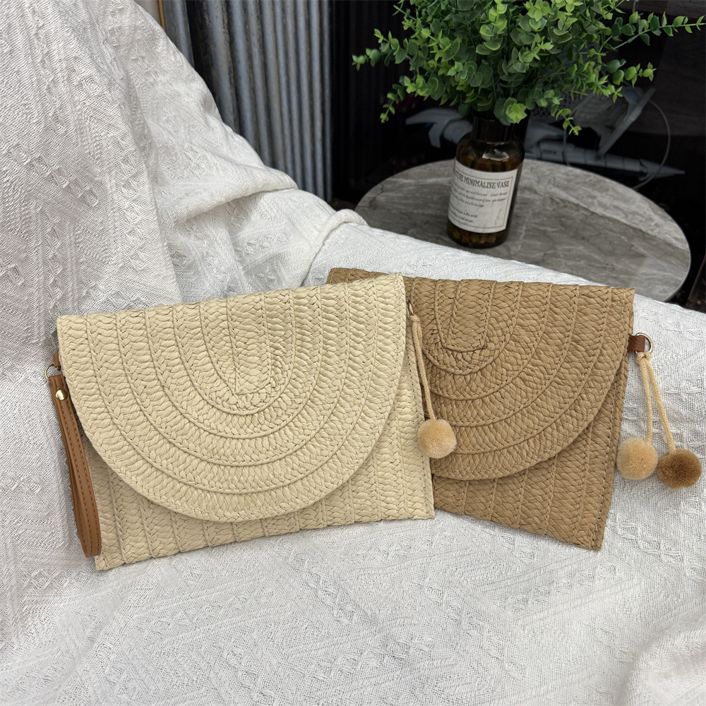夏季編織包包女手拿包新款時尚復古信封包休閒簡約度假沙灘斜後背包