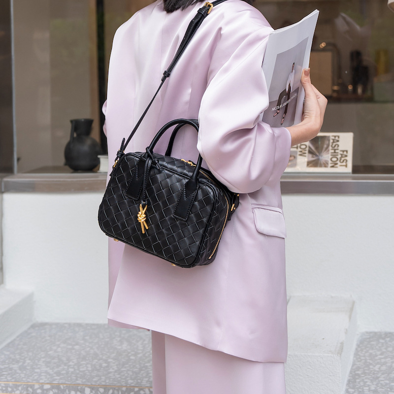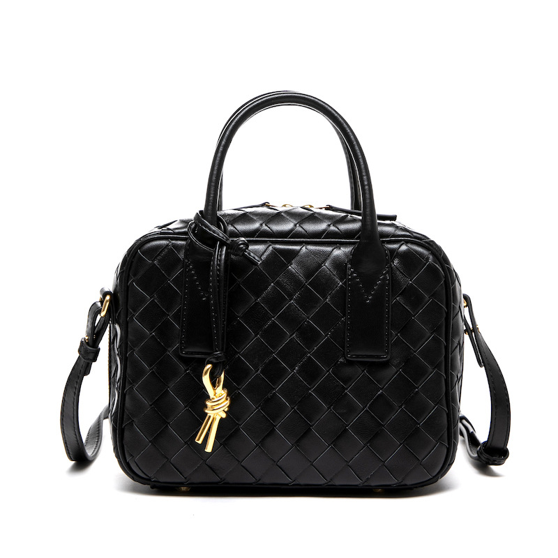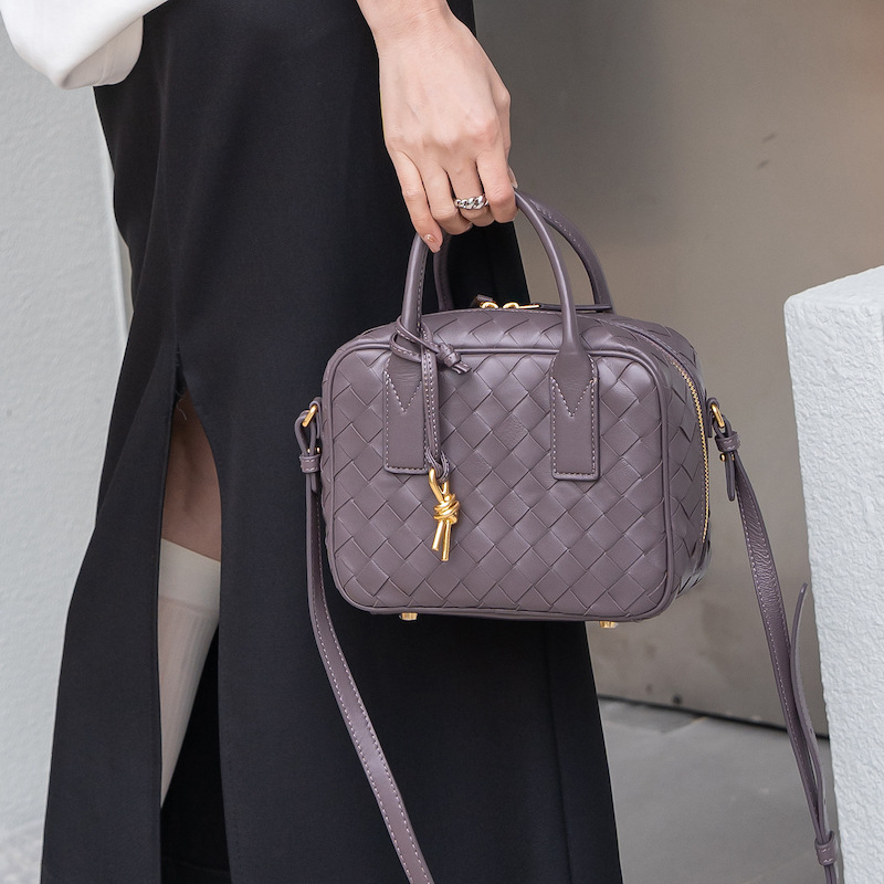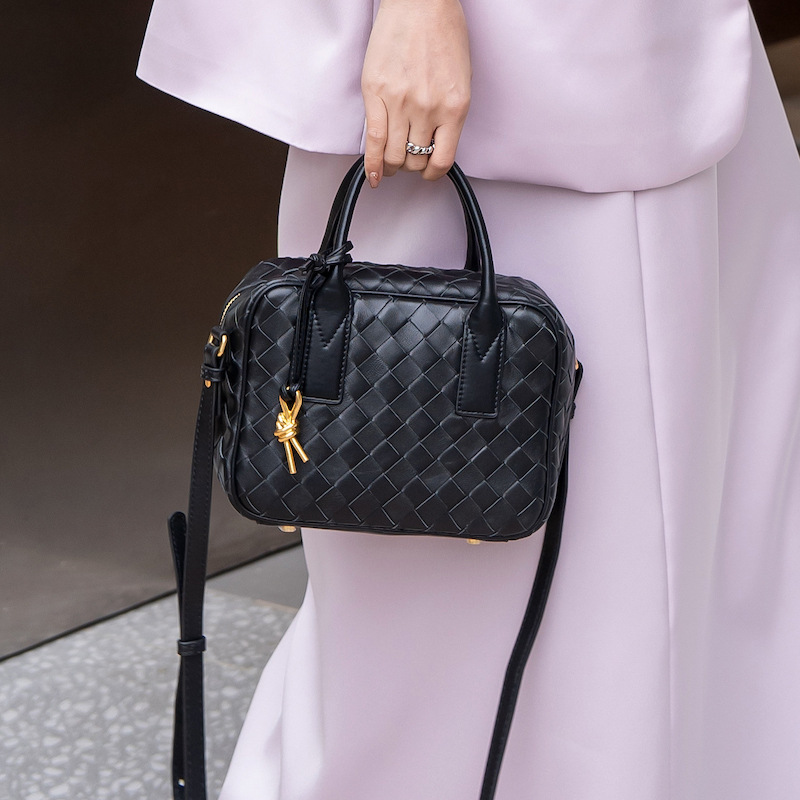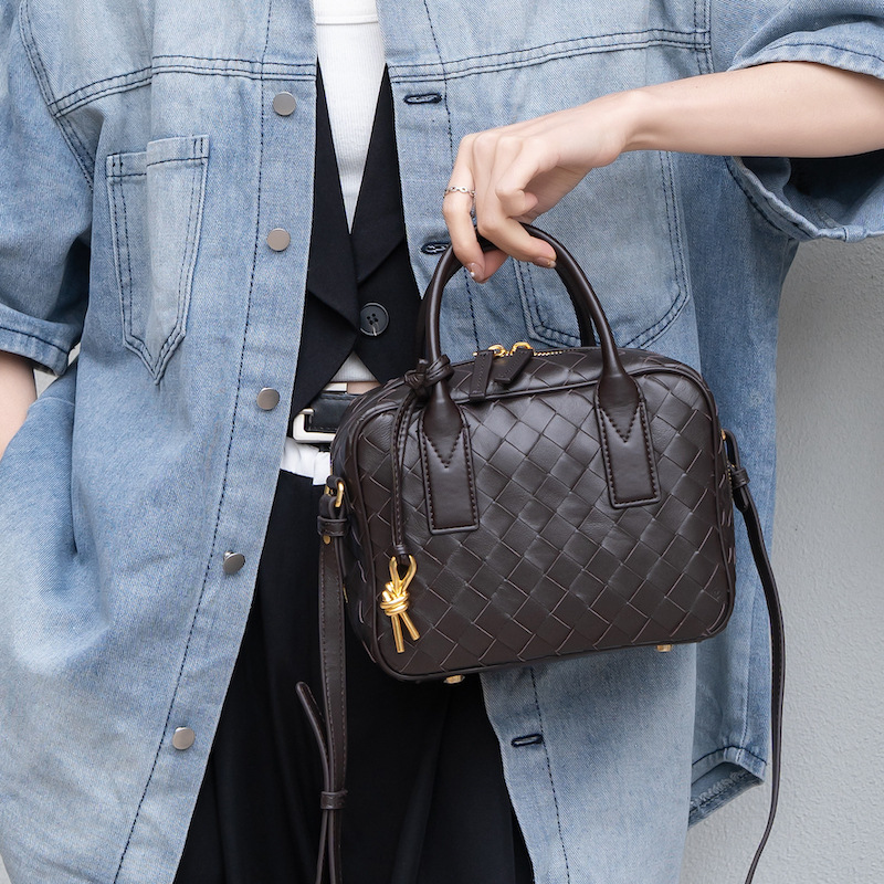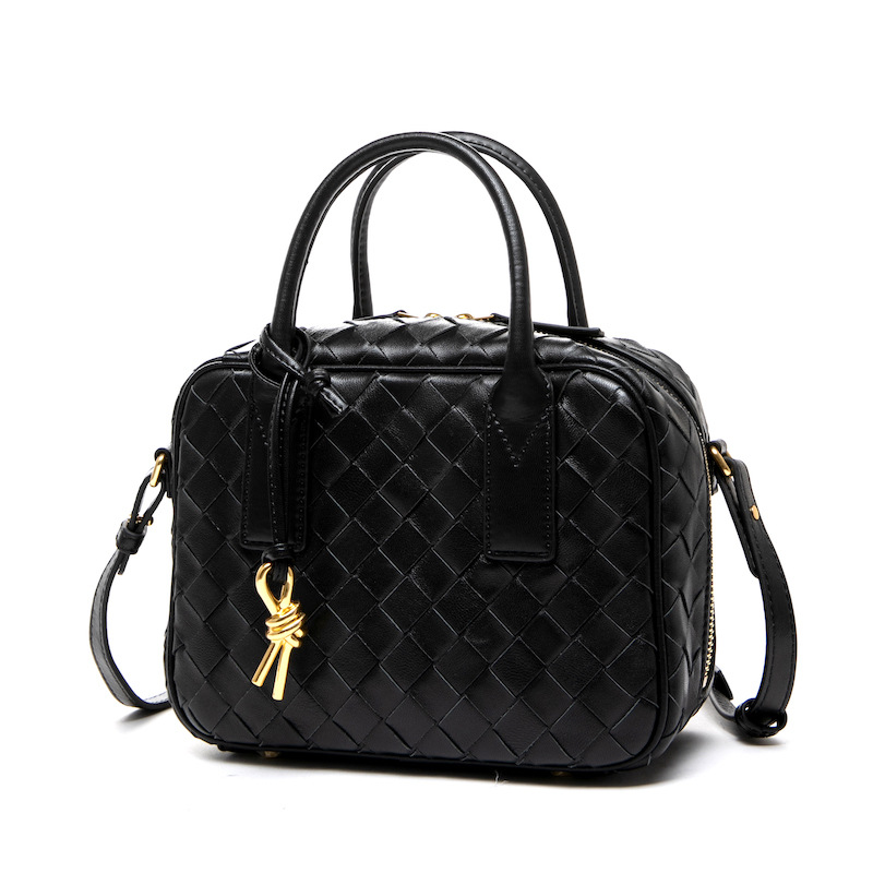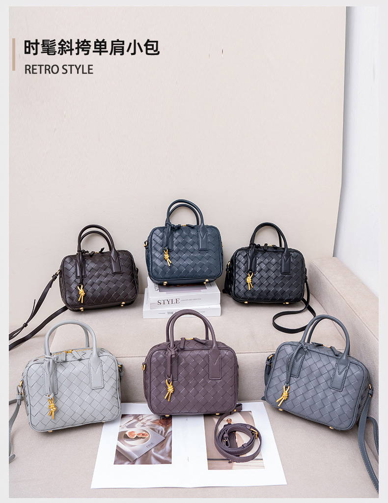 2024風潮新款女包頭層羊皮手工包手提斜背女式編織包