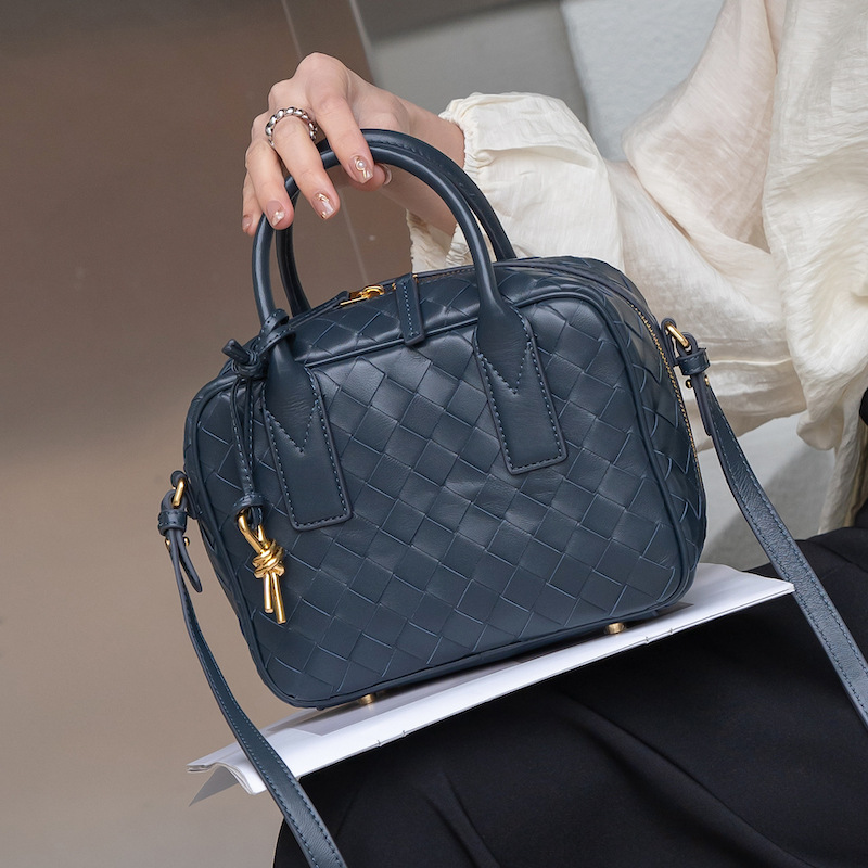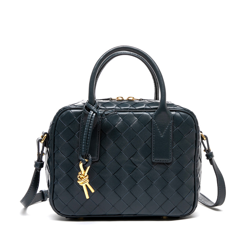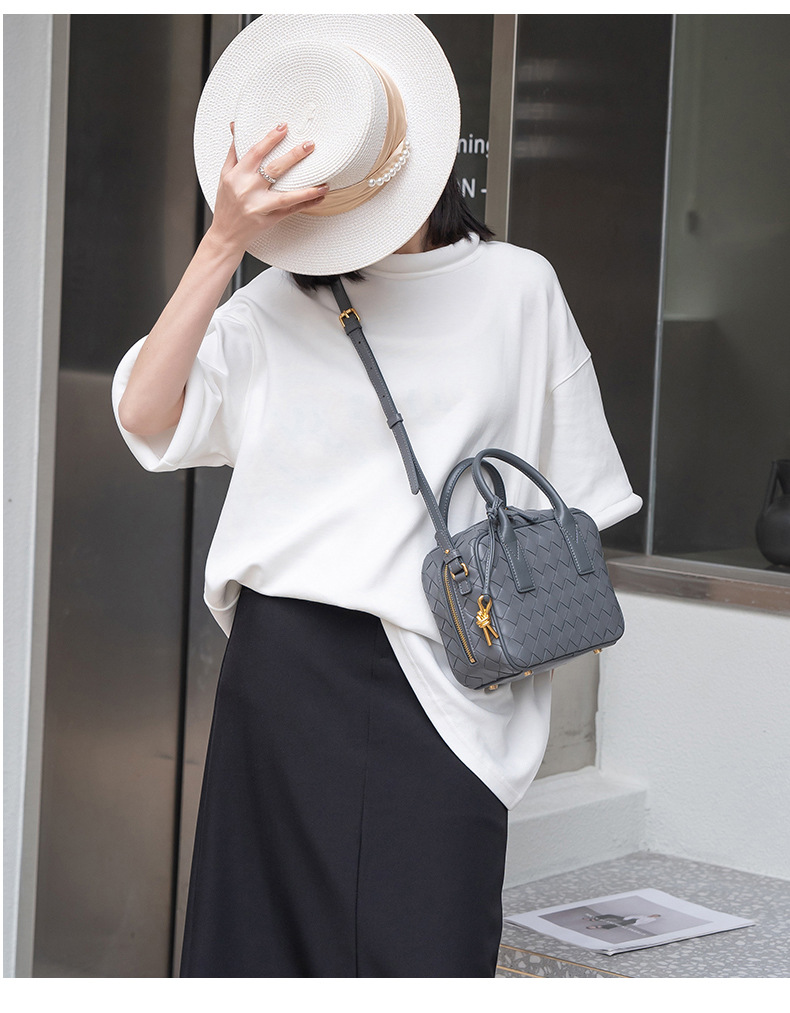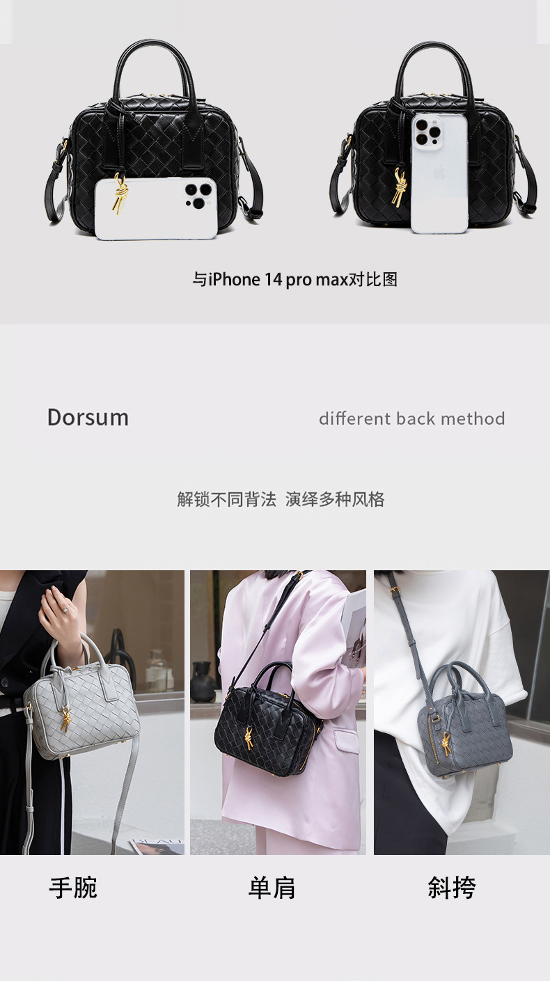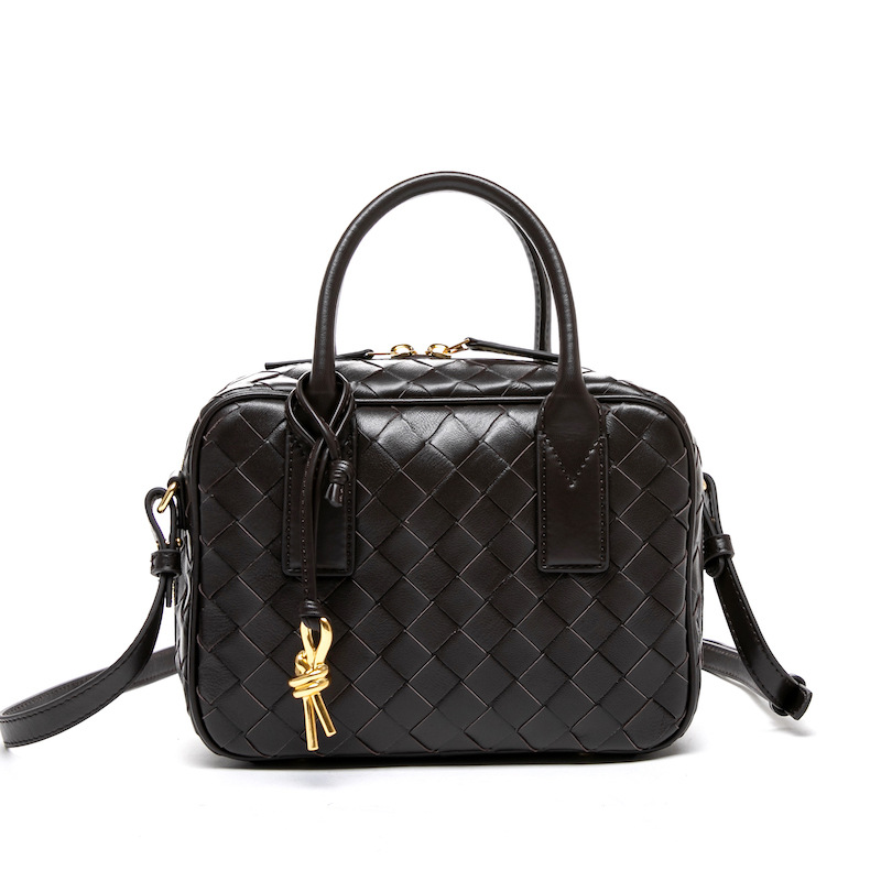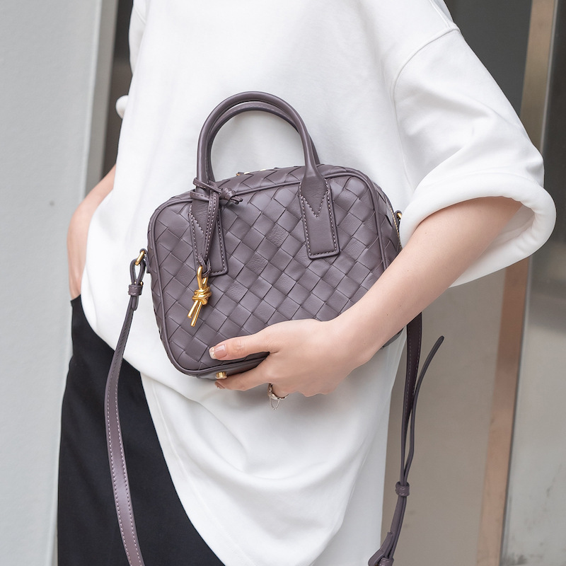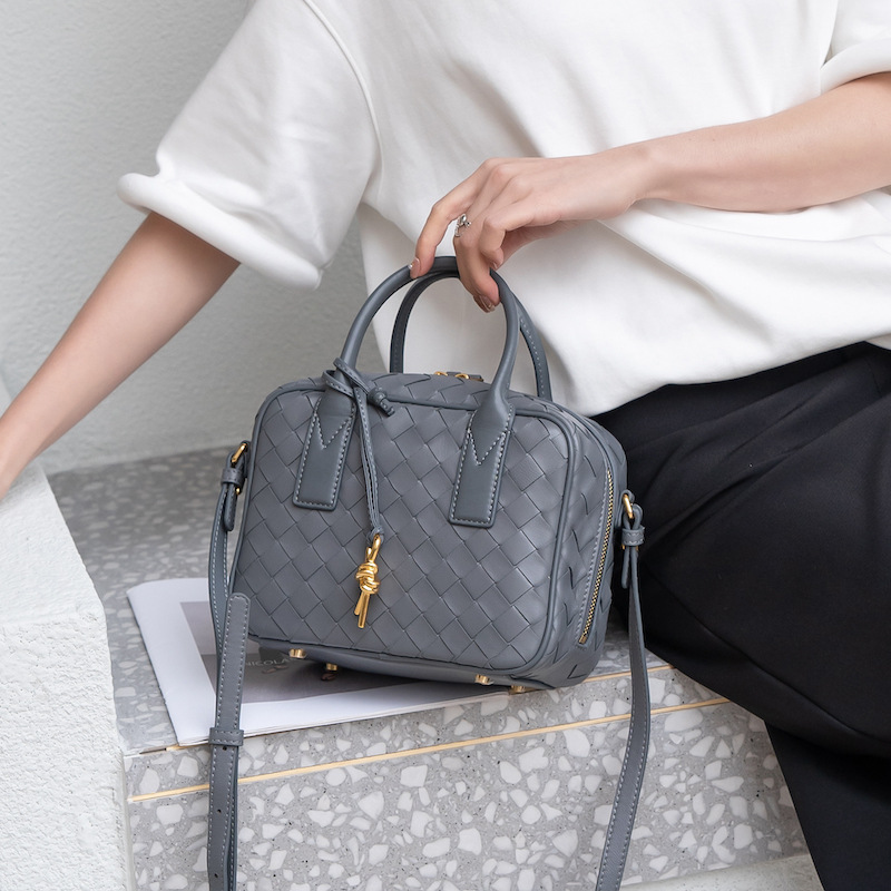 2024風潮新款女包頭層羊皮手工包手提斜背女式編織包