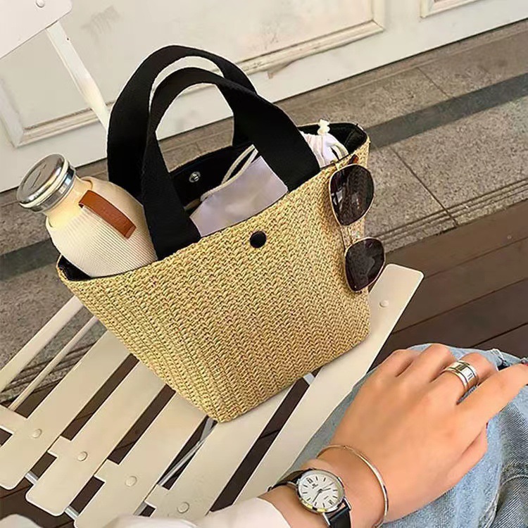 新款海邊夏季沙灘包度假休閒夏季田園風編織包復古手提草編包女包