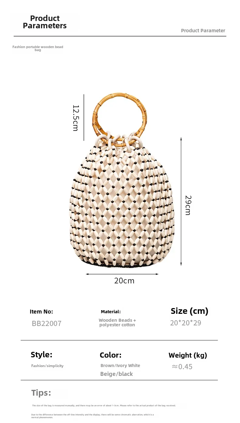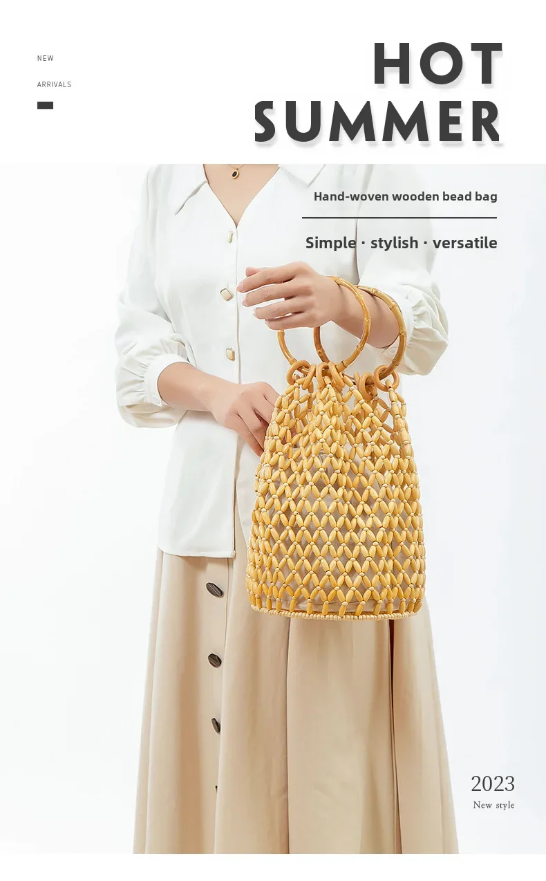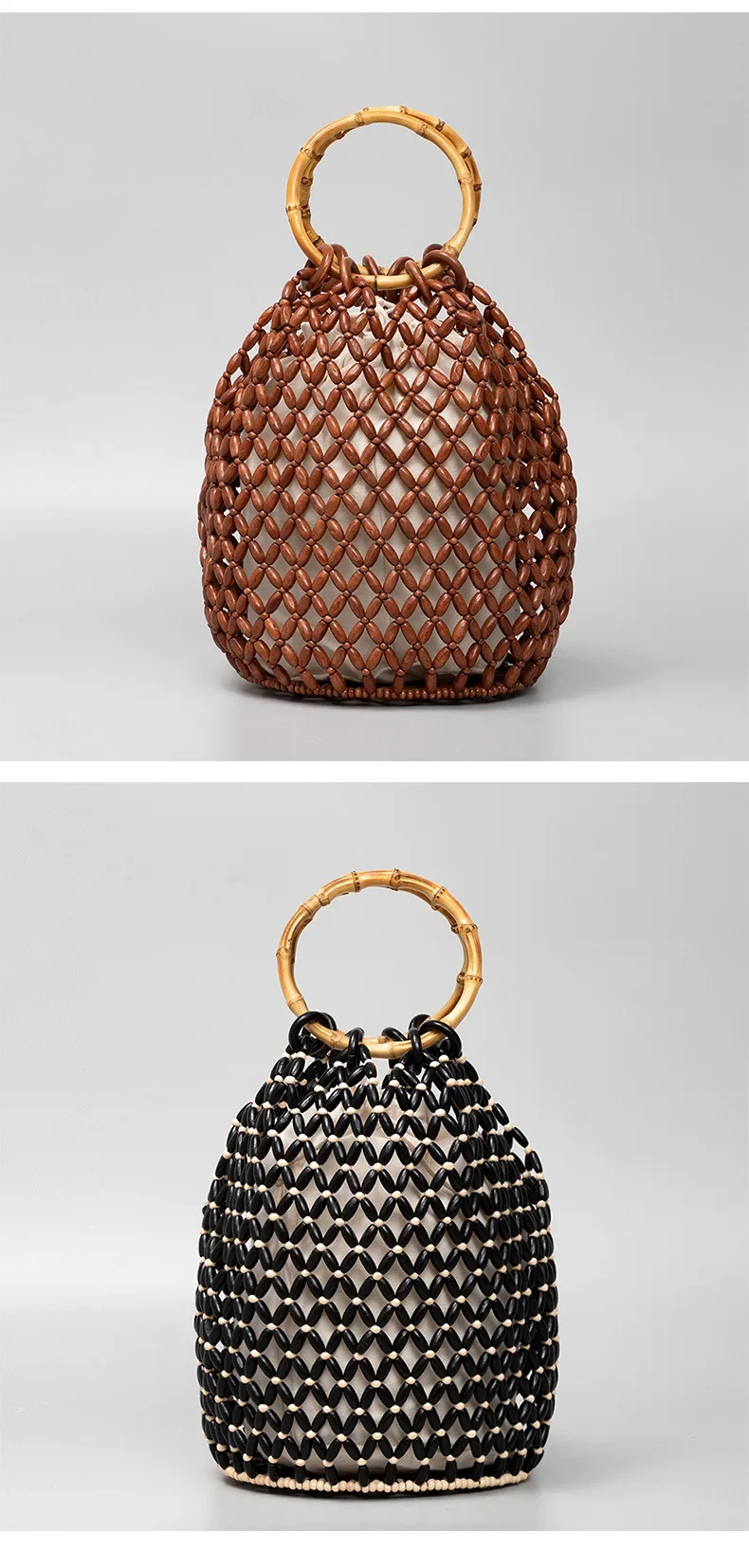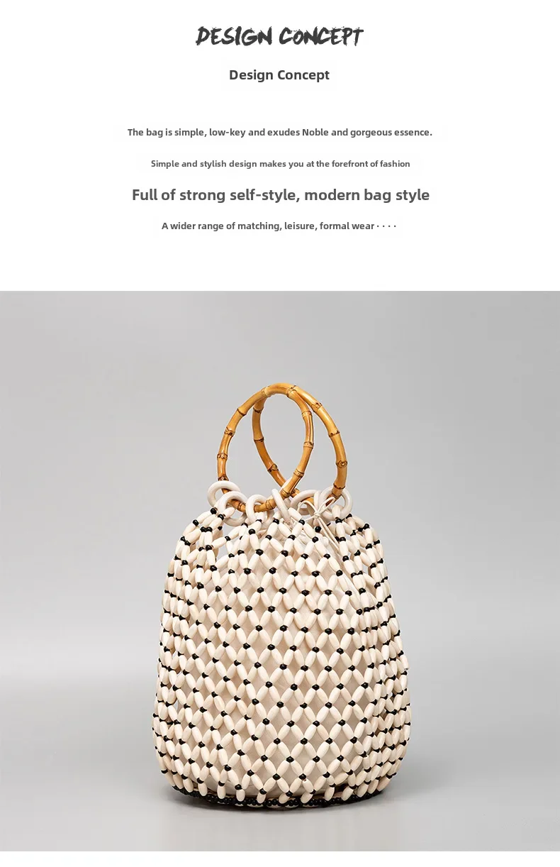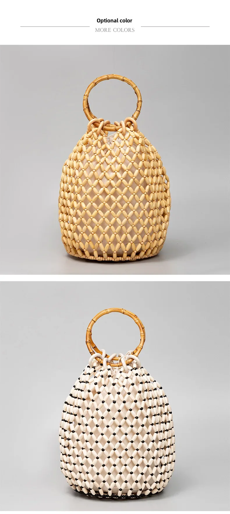 編織包大容量歐美復古手工木珠包通勤手提水桶包包女夏季