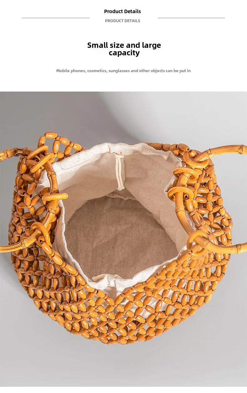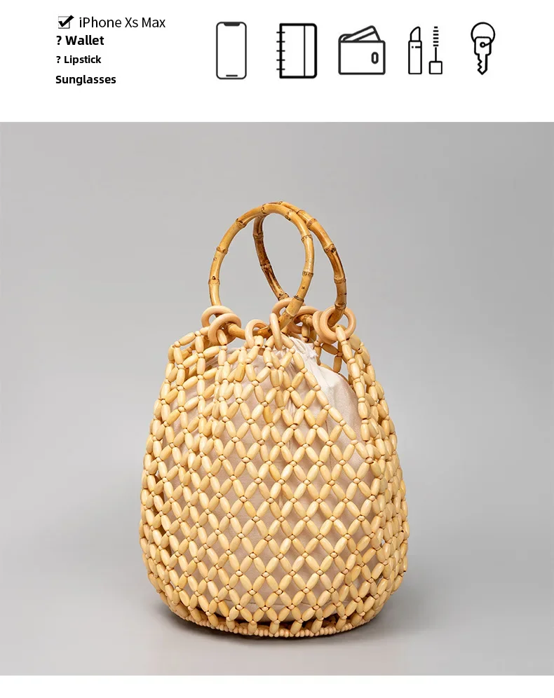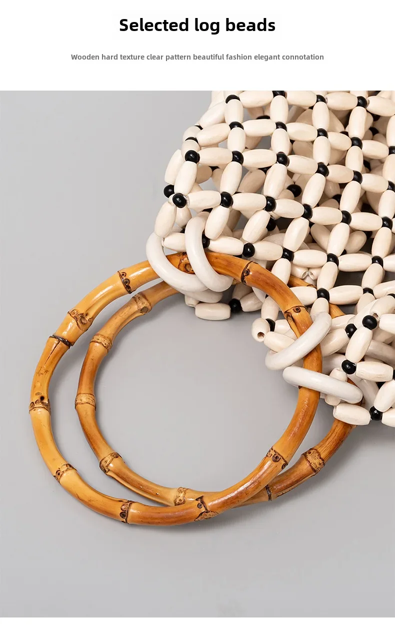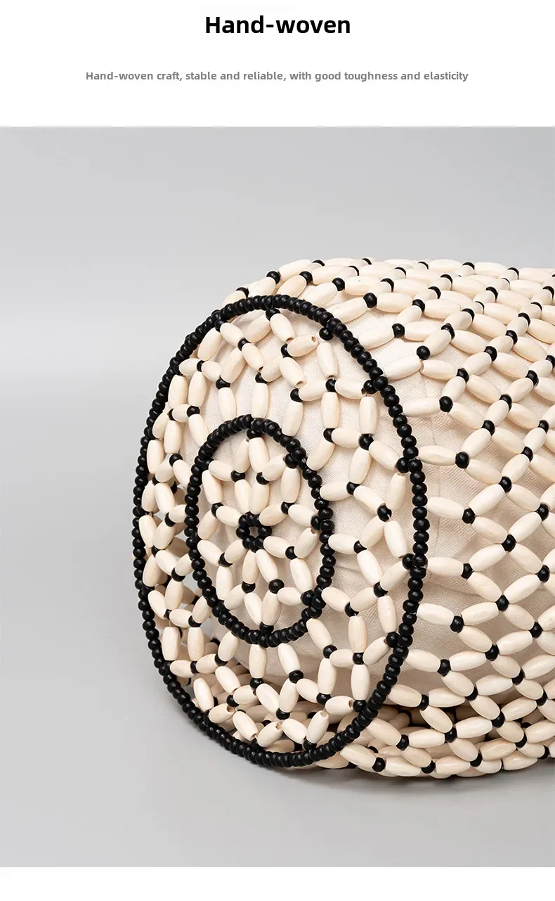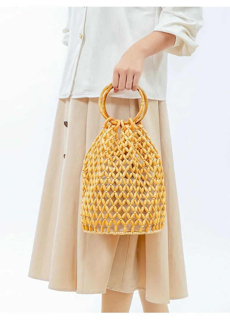 編織包大容量歐美復古手工木珠包通勤手提水桶包包女夏季