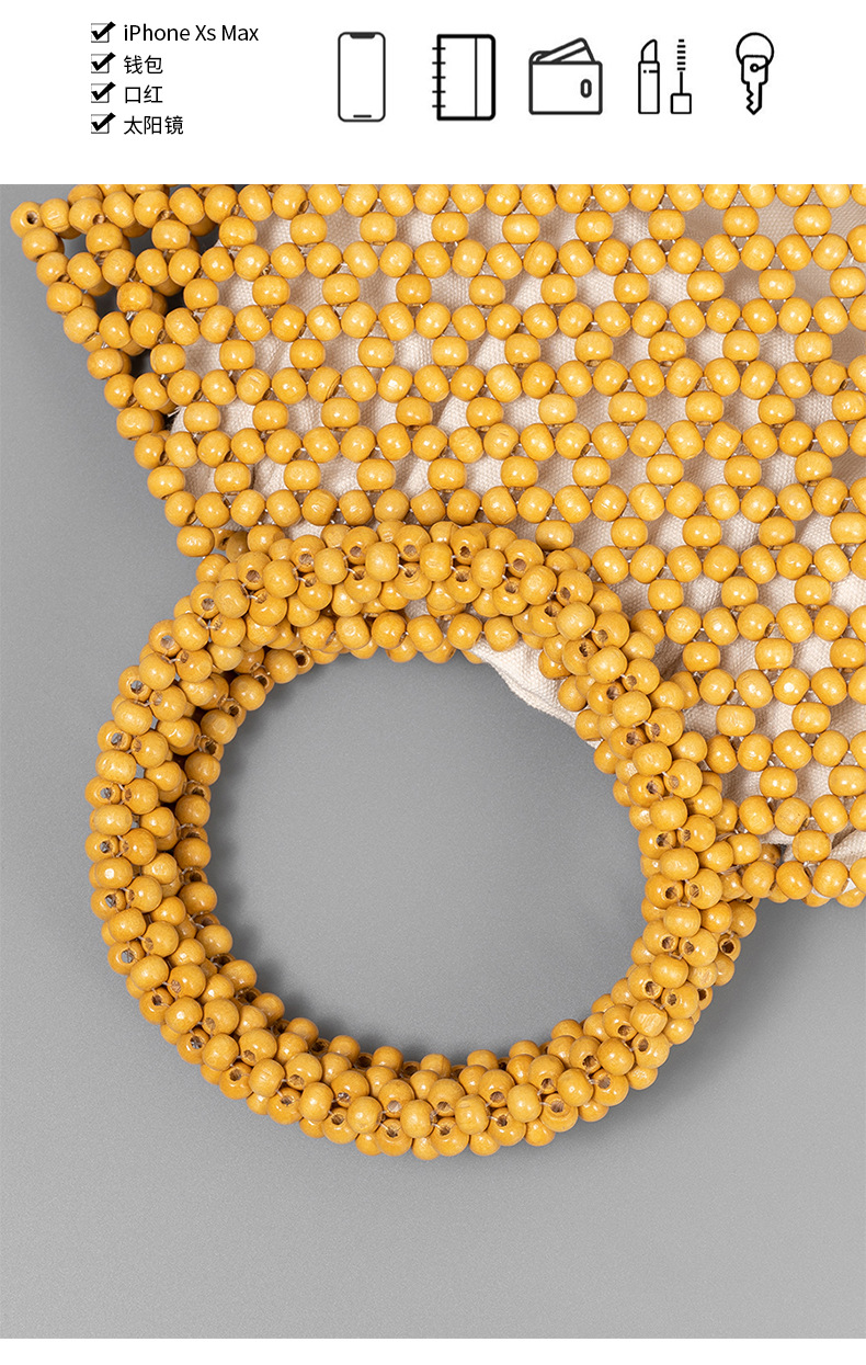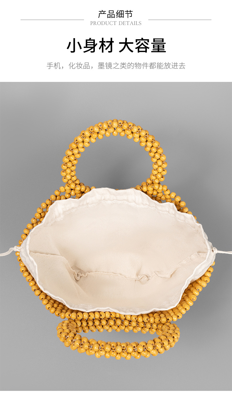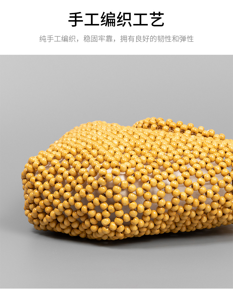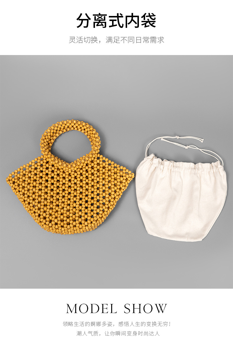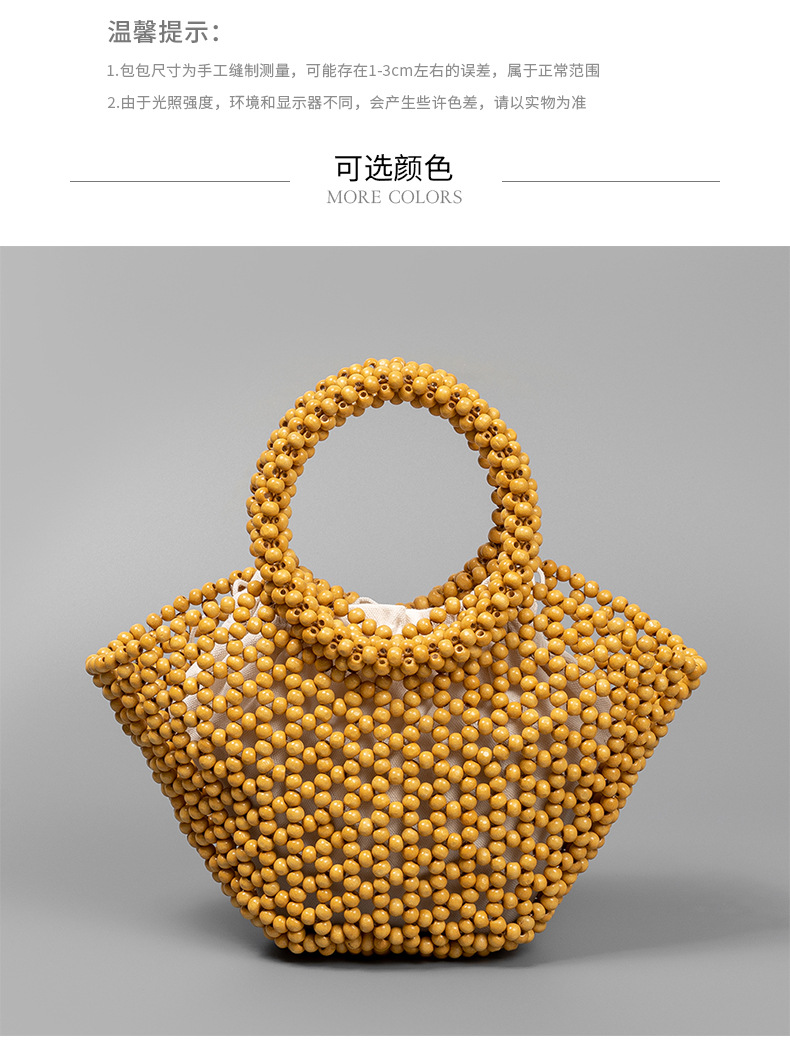 ENSPT女士手提包 歐美手工編織包包女海邊沙灘度假鏤空木珠包