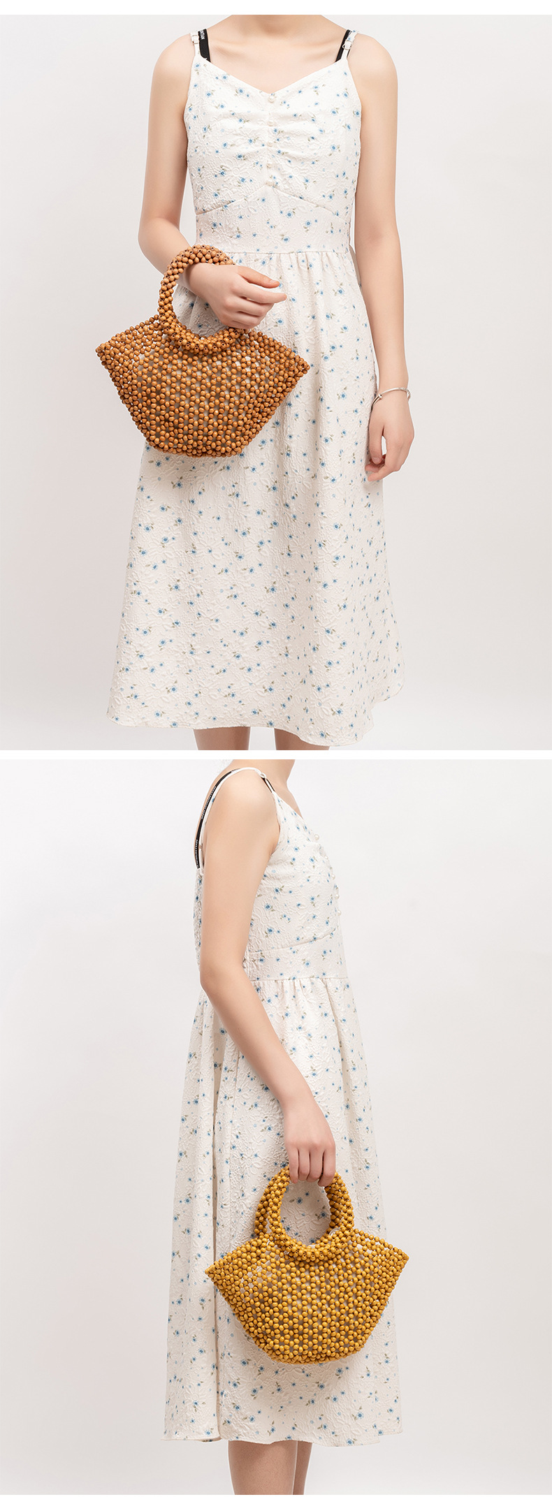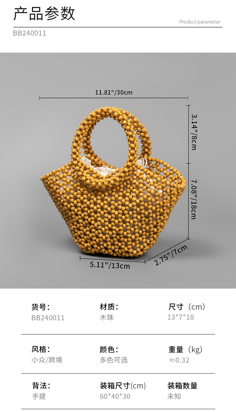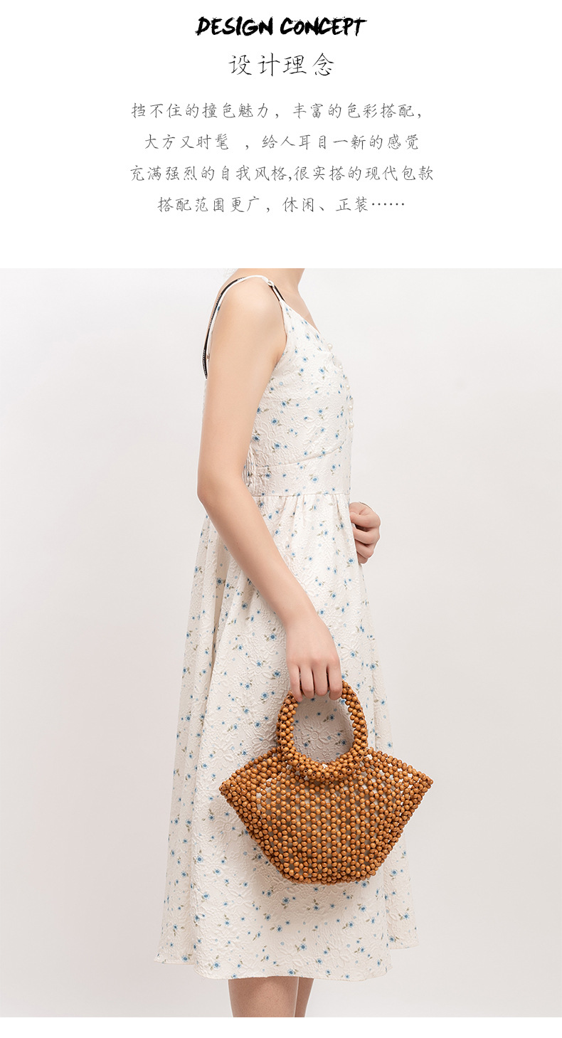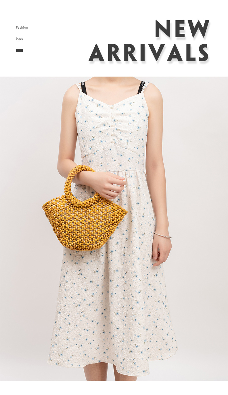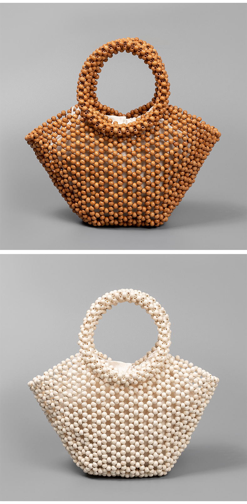 ENSPT女士手提包 歐美手工編織包包女海邊沙灘度假鏤空木珠包