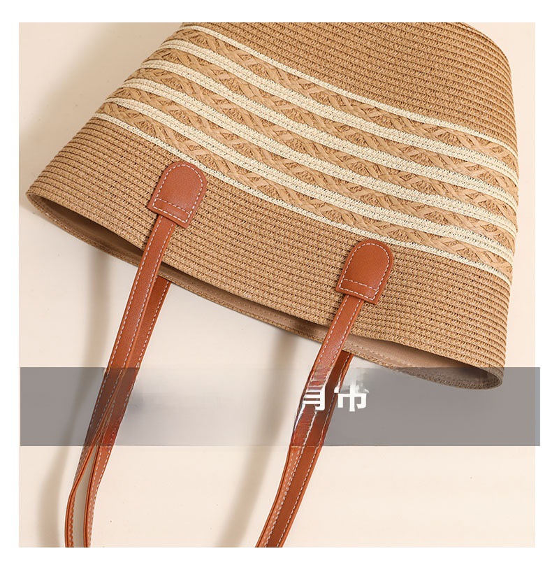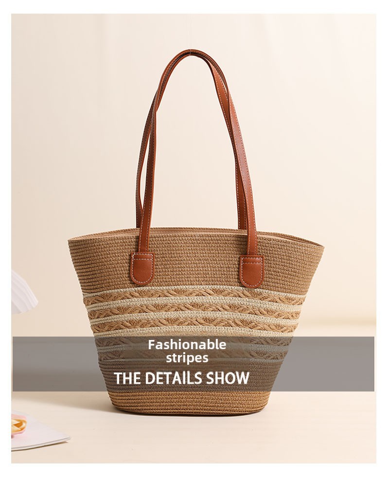 條紋單肩草編包新款大容量草包編織包度假沙灘包百搭女包
